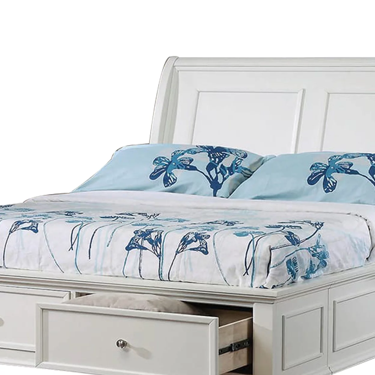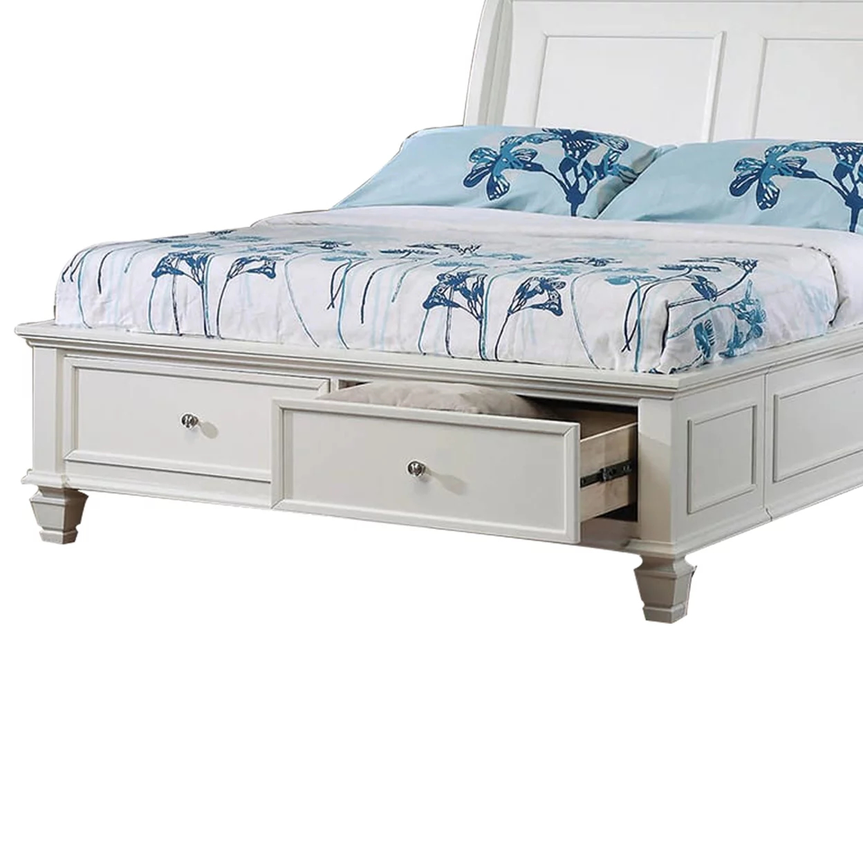 Passion Furniture Louis Philippe Storage Sleigh Bed with 2 Drawers, White - Full Size