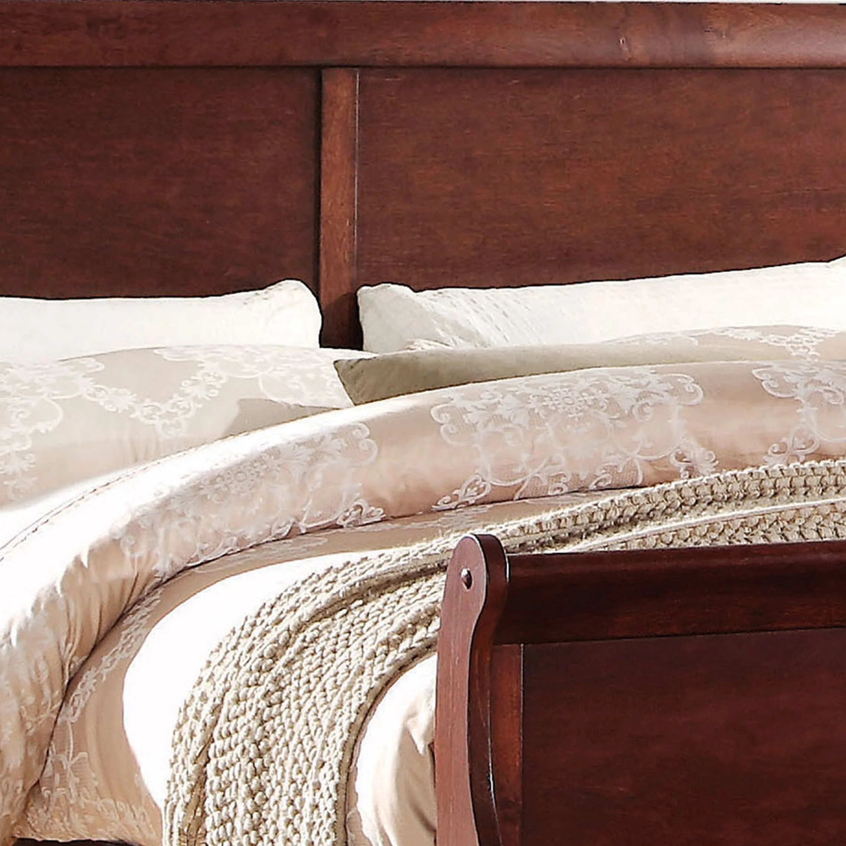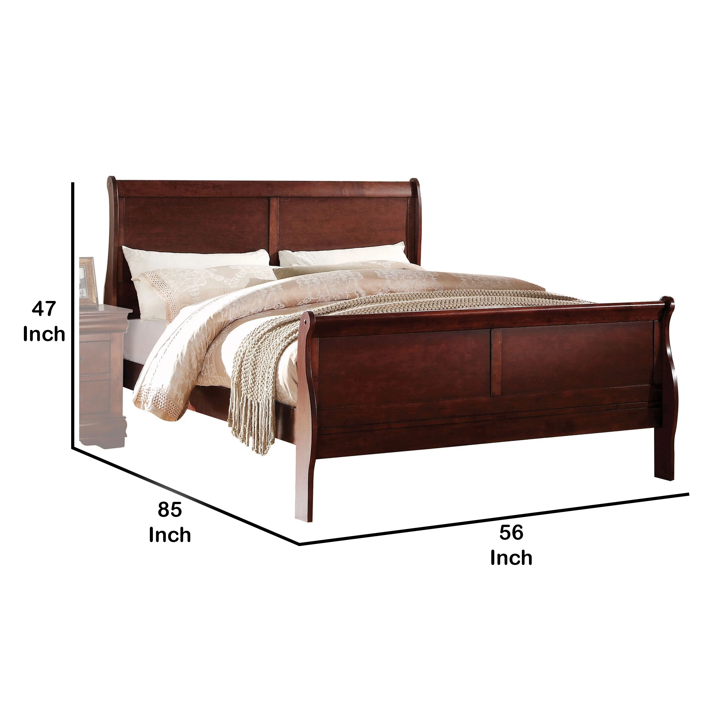 CoSoTower Classic Louis Philipe Style Full Bed Brown Cherry Finish 1Pc Traditional Design Bedroom Furniture Sleigh Bed