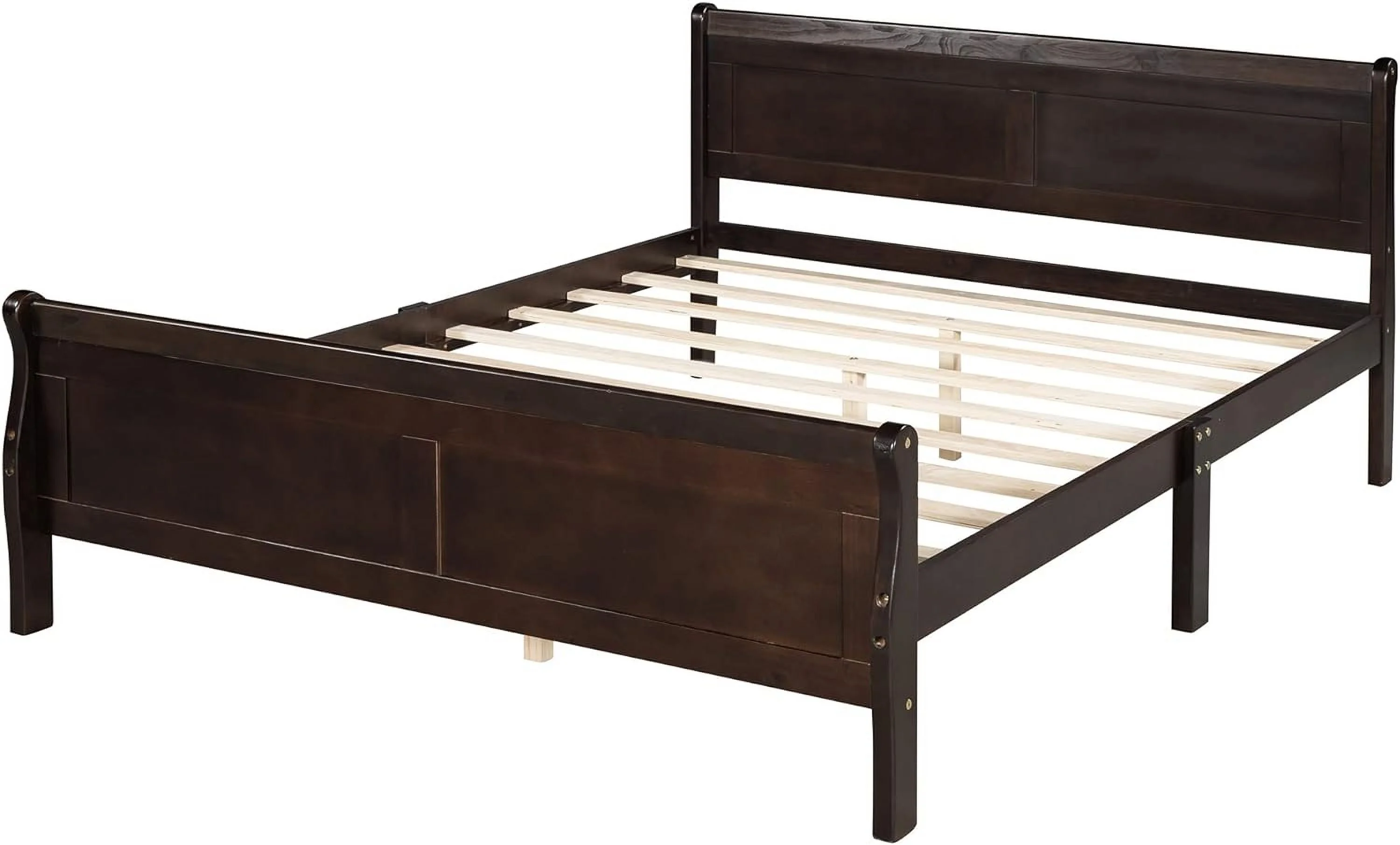 Woode Full Plaform Bed Full Bed Frame Wih Headboard Ad Fooboard, Sleigh Bed Wih Wood Sla Suppor (Full, Espresso)