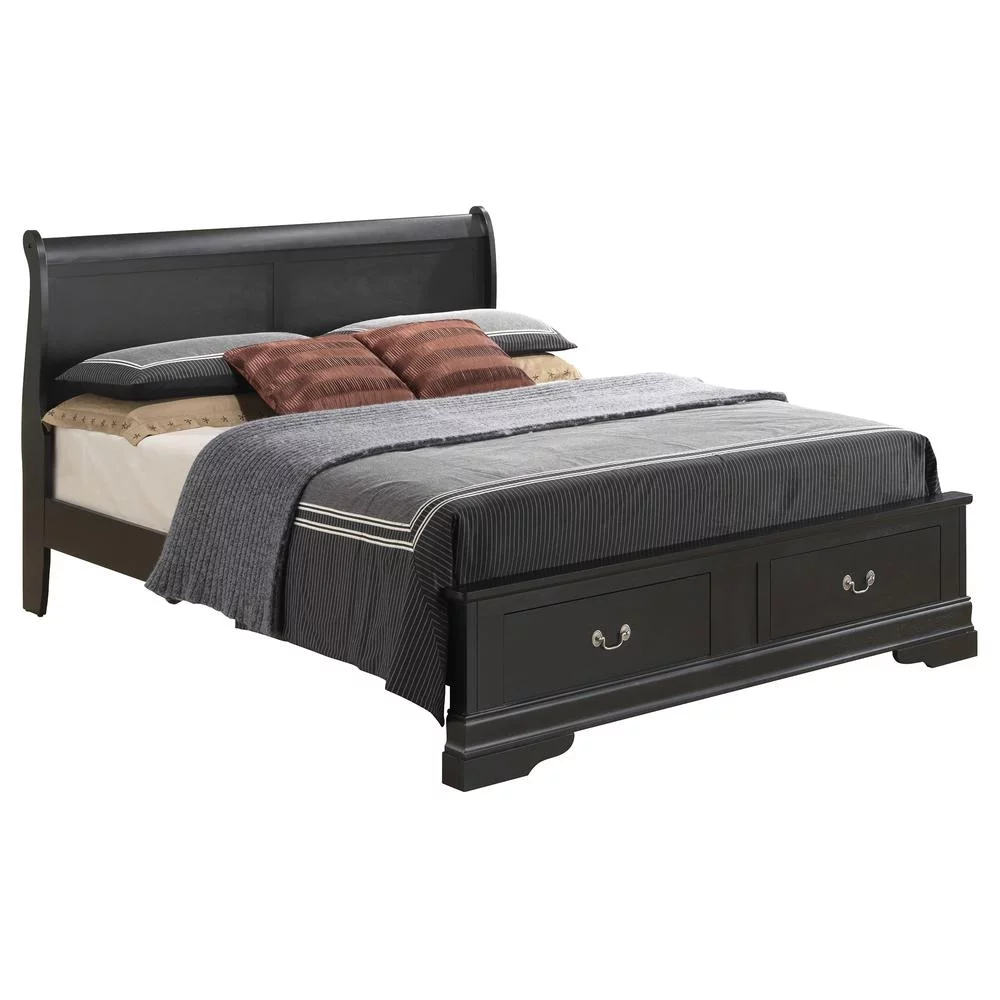 Passion Furniture Louis Philippe Black Full Storage Sleigh Bed with 2 Drawers