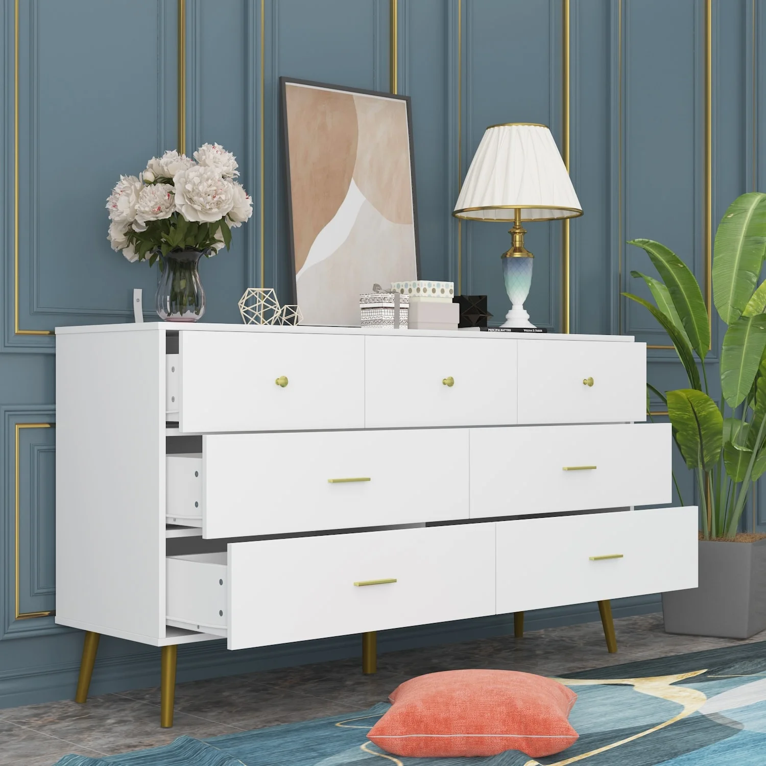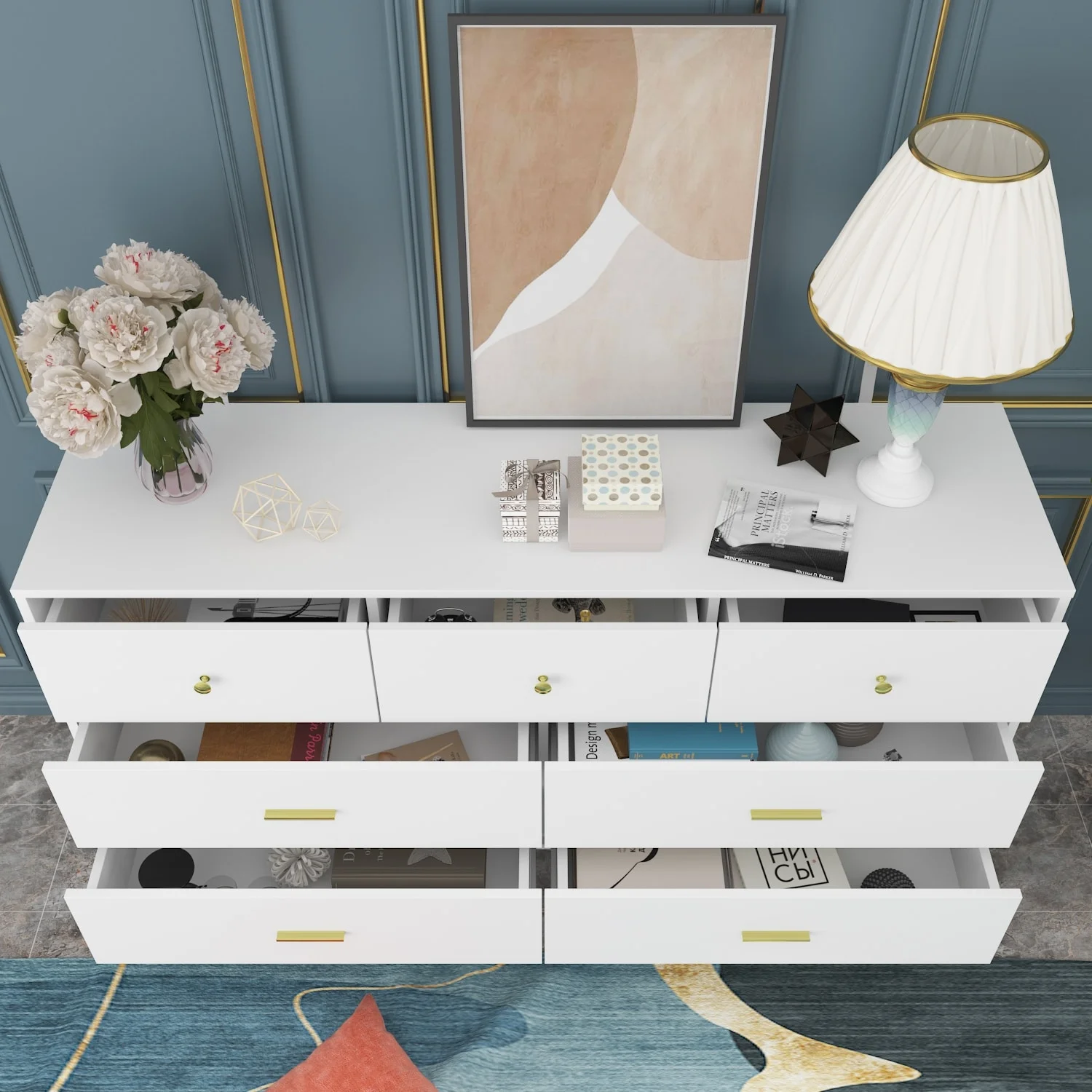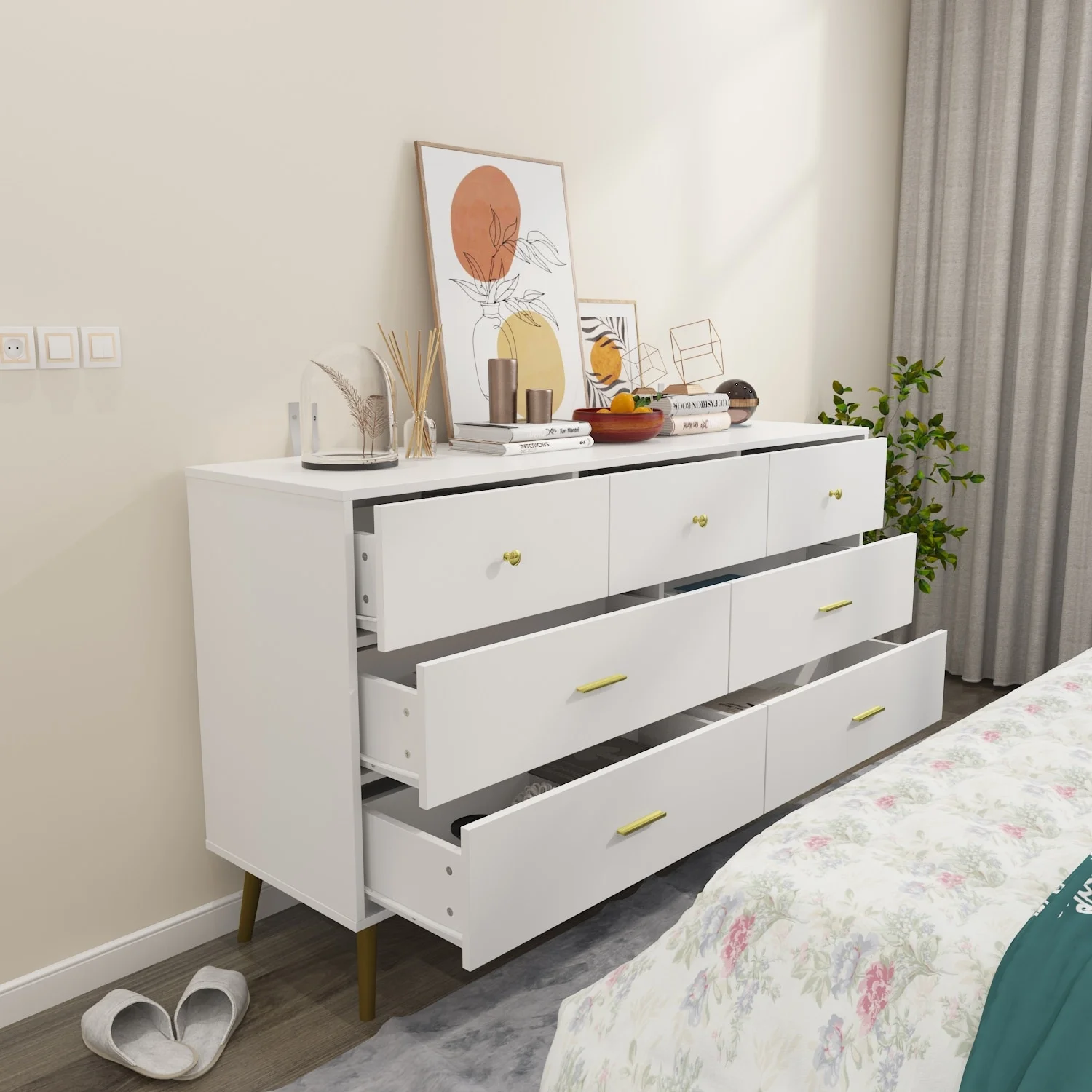 FUFU&GAGA 55.9inch Double Dresser Chest of Drawer Storage Organizer Unit Closet White