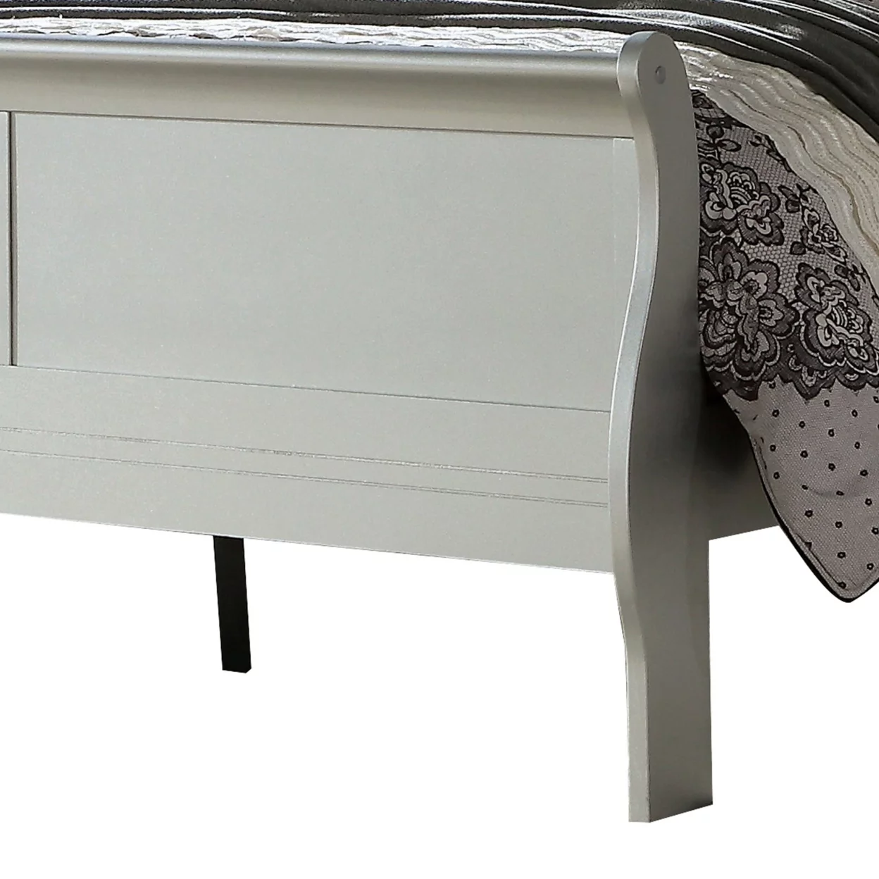 Sleigh Design Full Size Bed with Rectangular Thin Legs, Silver- Saltoro Sherpi