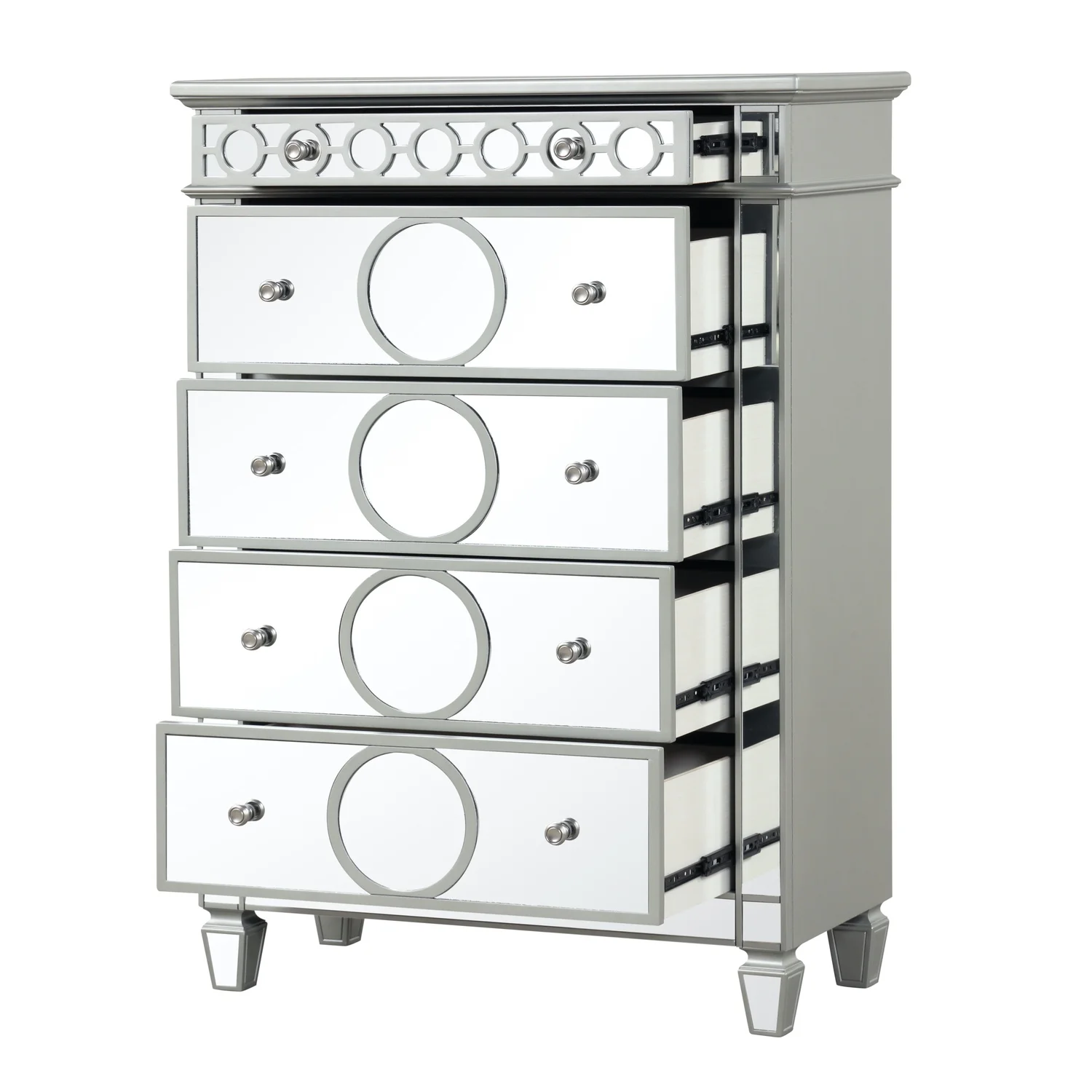 Traditional Bedroom Set 5pc King Platform Bed Dresser Nightstand Chest Mirror Brown Cherry Finish Storage Bed Classic Style