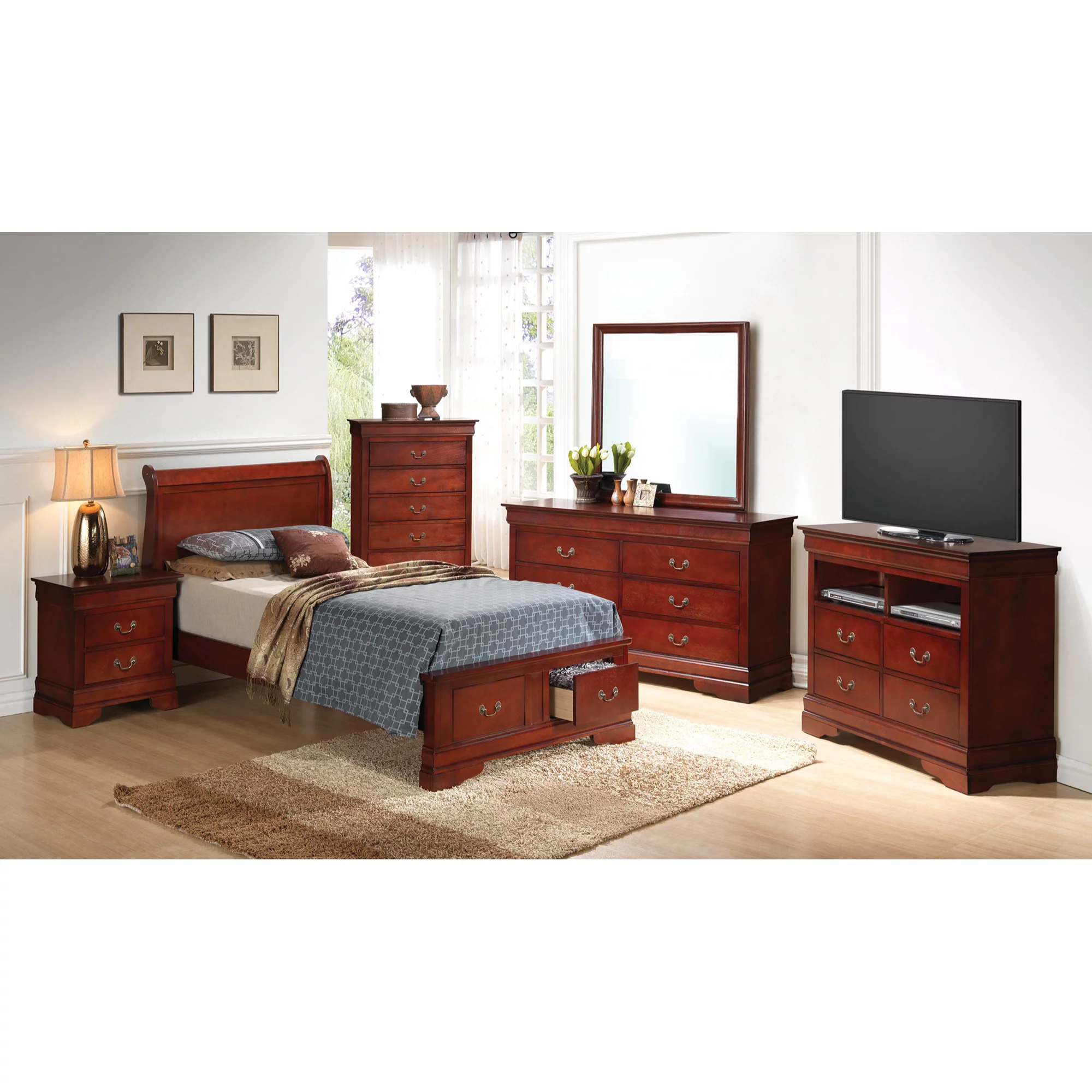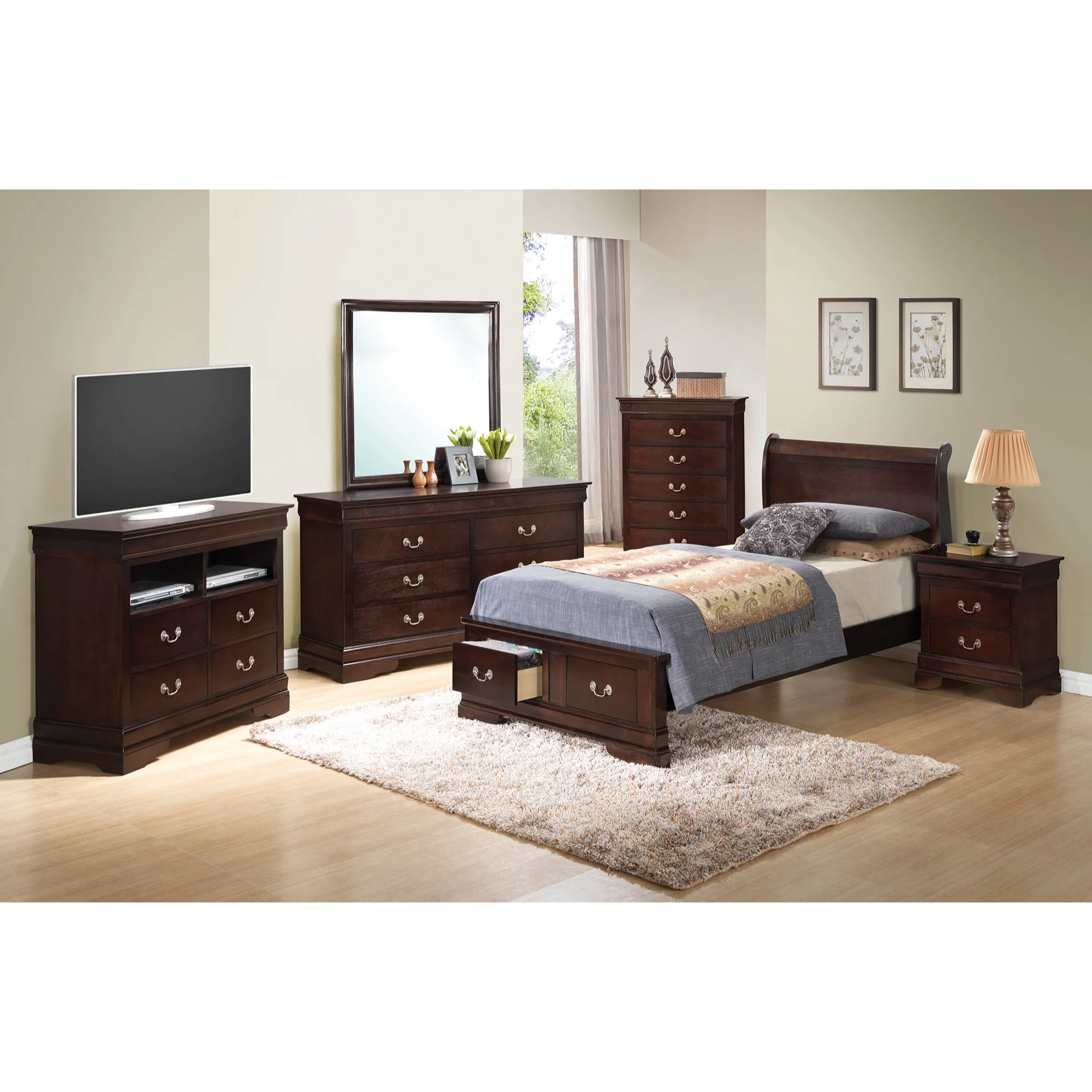 Passion Furniture 41 x 84 x 44 in. Louis Philippe Storage Sleigh Bed, Cherry - Twin Size