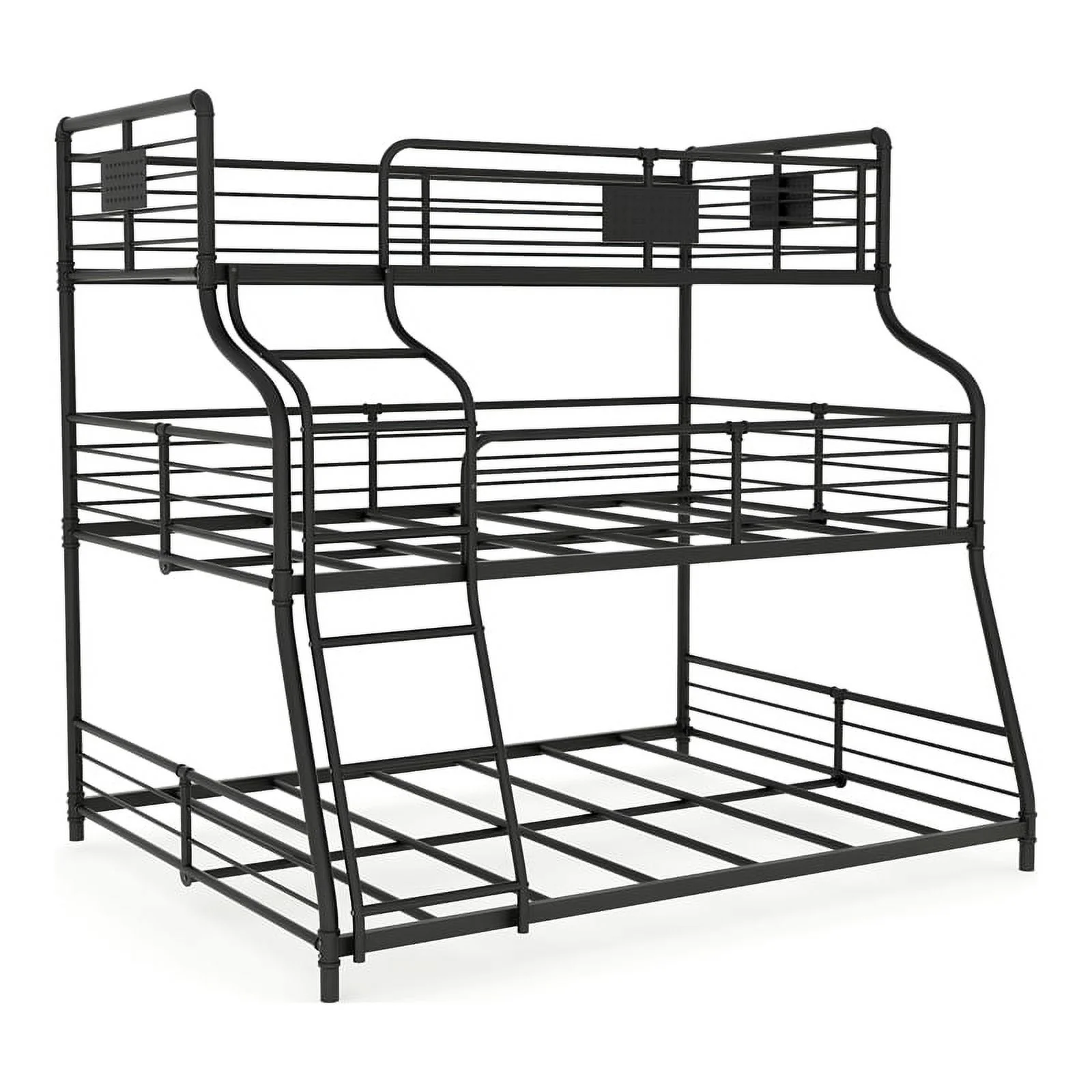 Pemberly Row Modern Metal Twin/Full/Queen Triple Bunk Bed in Black