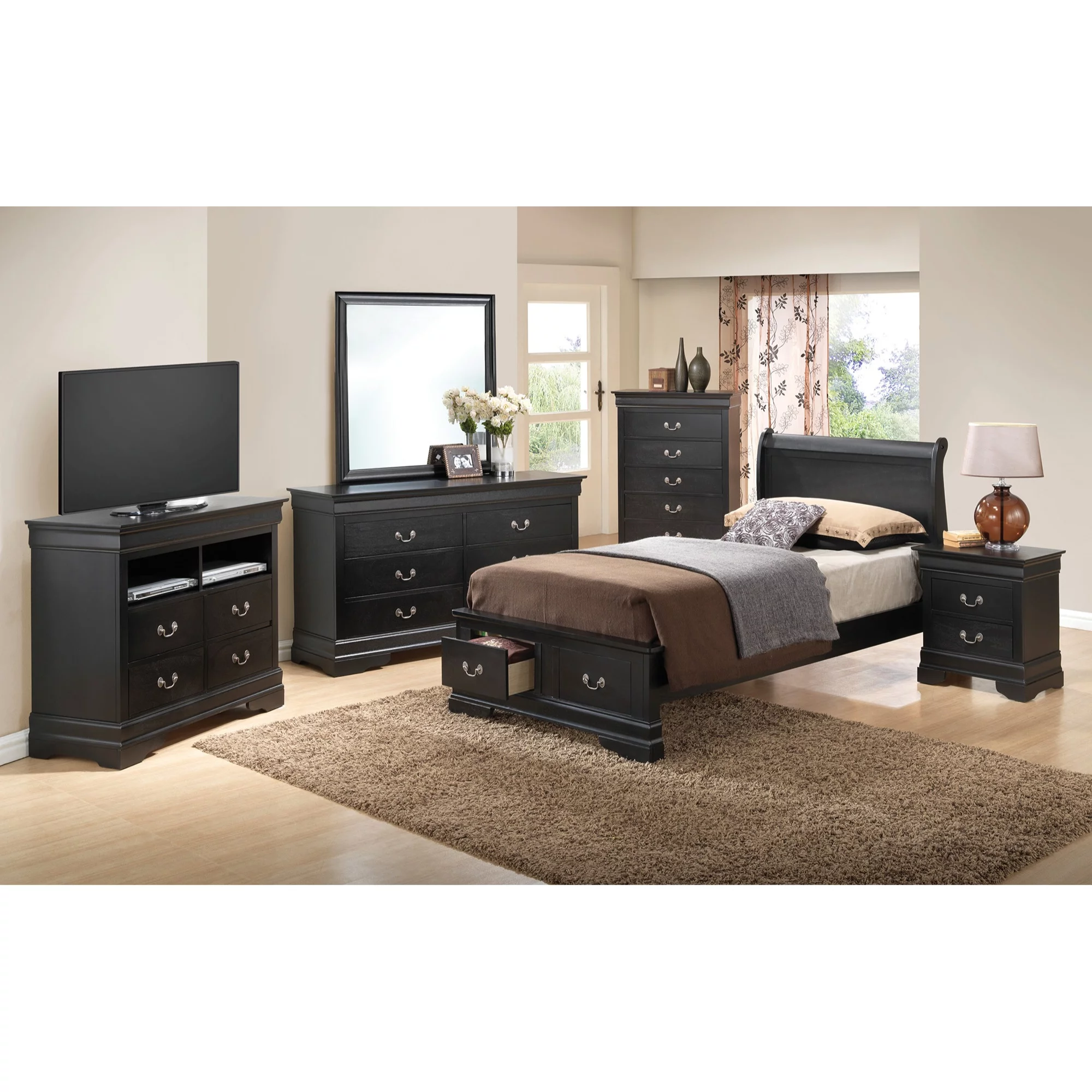 Passion Furniture 44 x 84 x 41 in. Louis Philippe Storage Sleigh Bed, Black - Twin Size