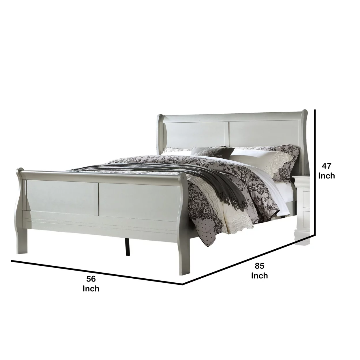 46 x 58 x 80.38 in. Wooden Full Size Bed with Sleigh Design Plank Panel Headboard, White