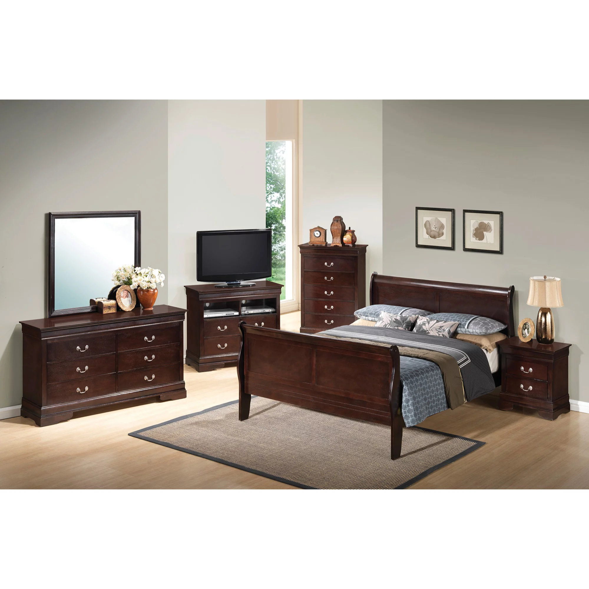 Passion Furniture PF-G3100D-QSB2 Louis Philippe Storage Sleigh Wood Bed, Cherry - Queen Size