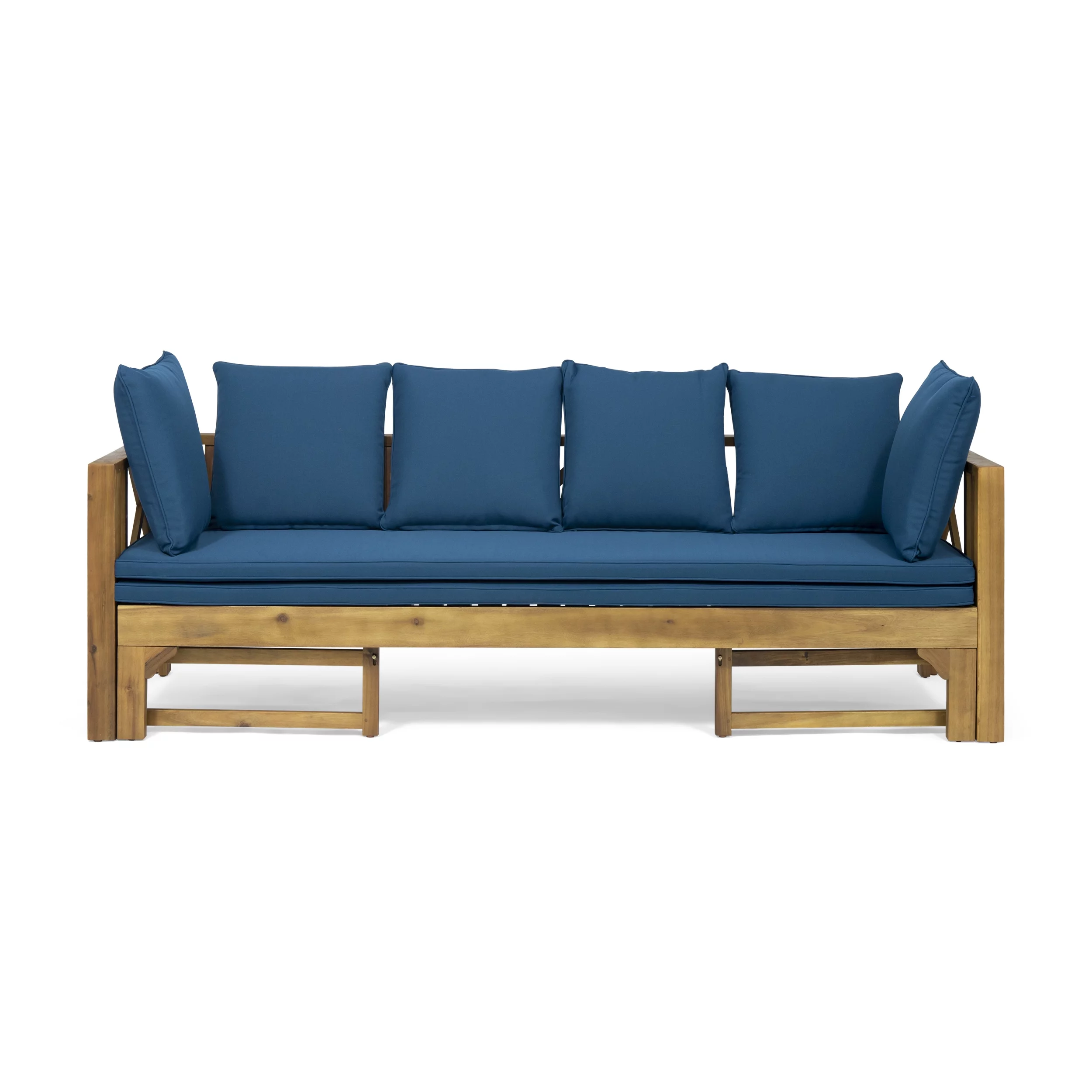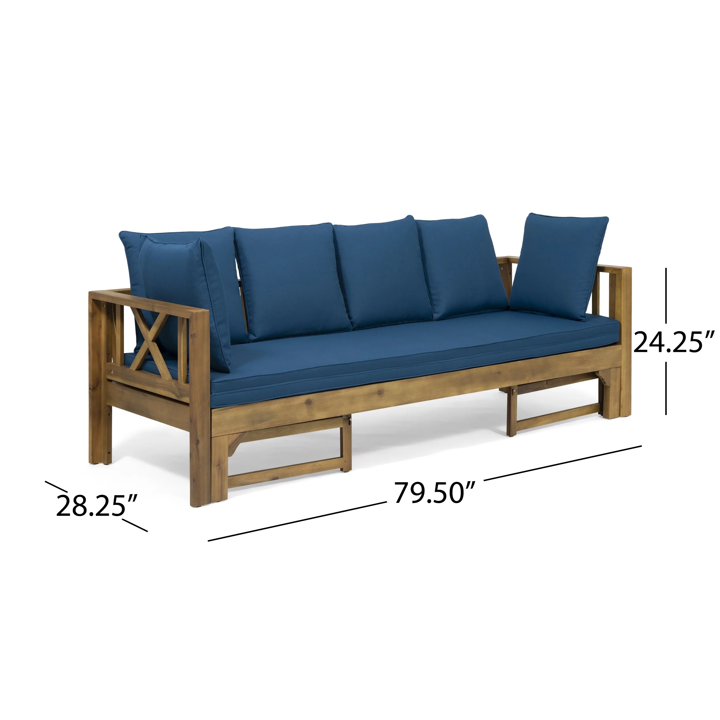 Noble House Reyes Outdoor Acacia Wood Extendable Daybed Sofa, Teak and Dark Teal