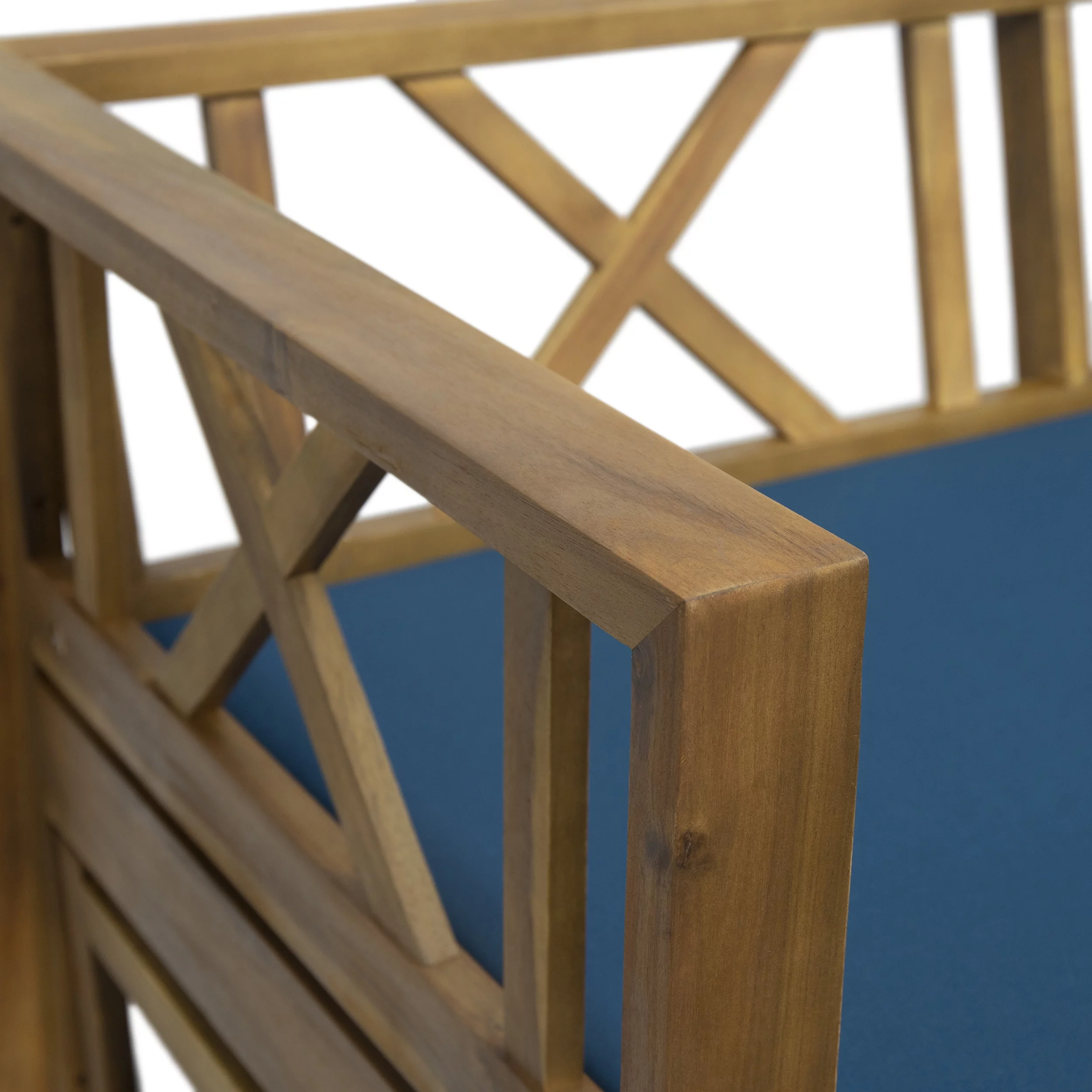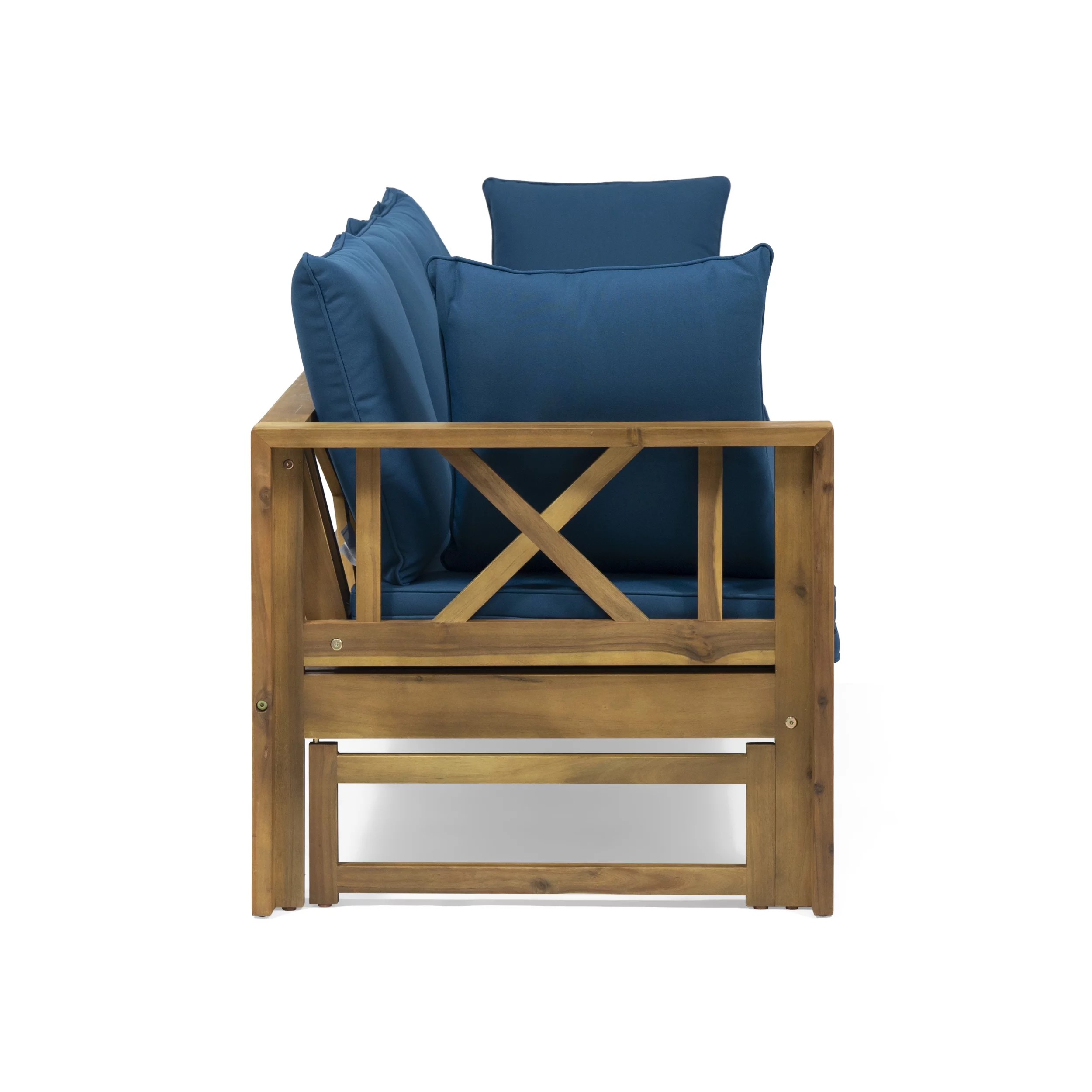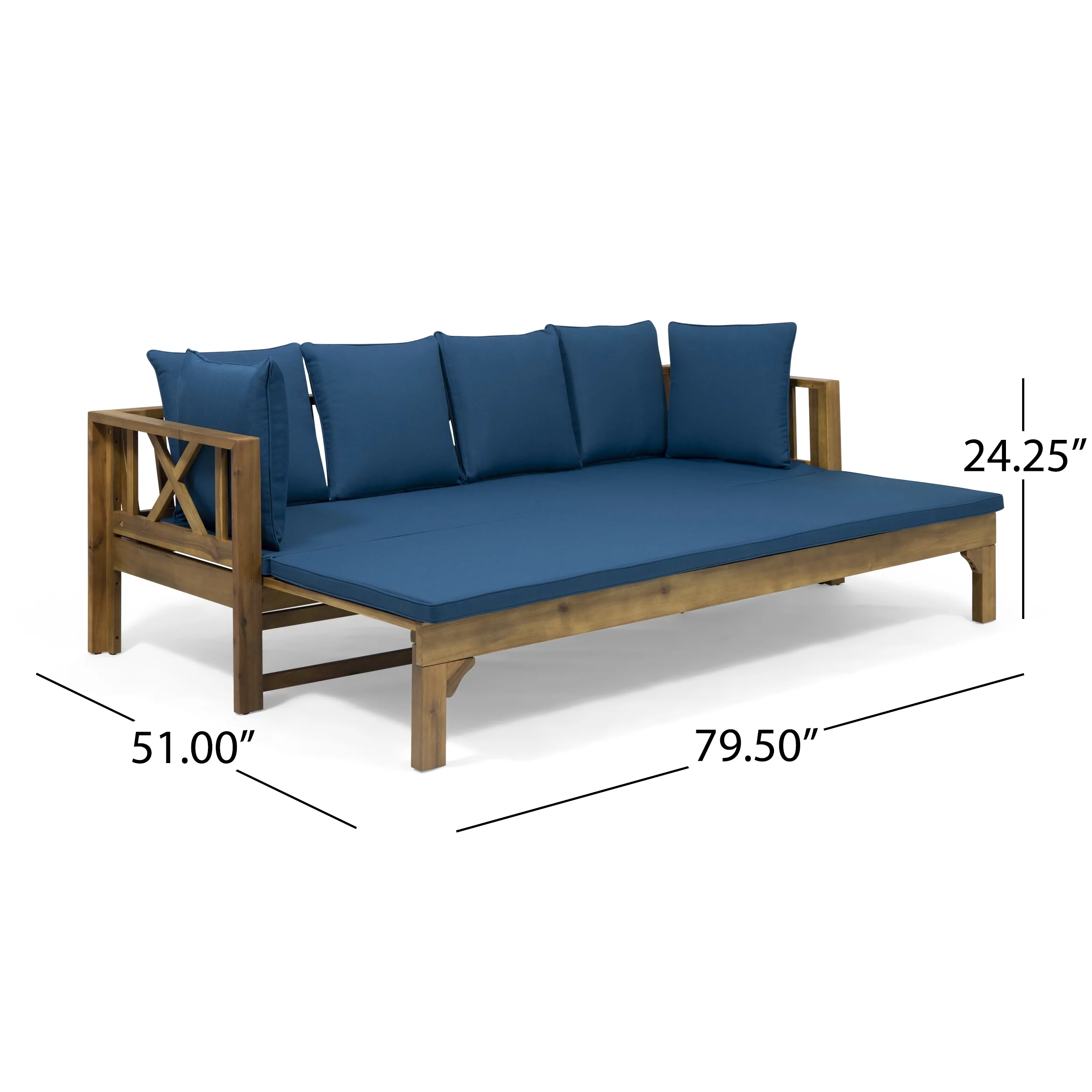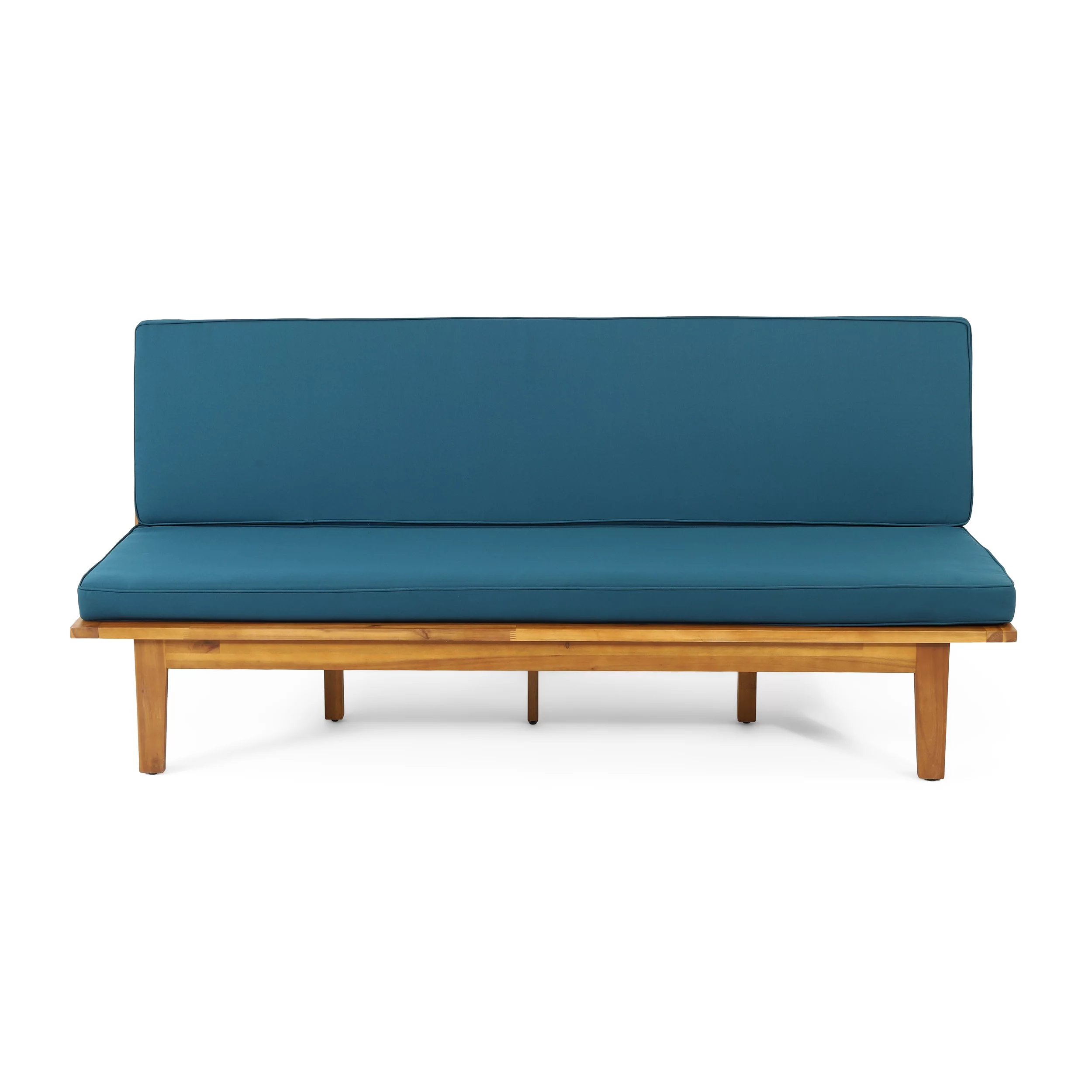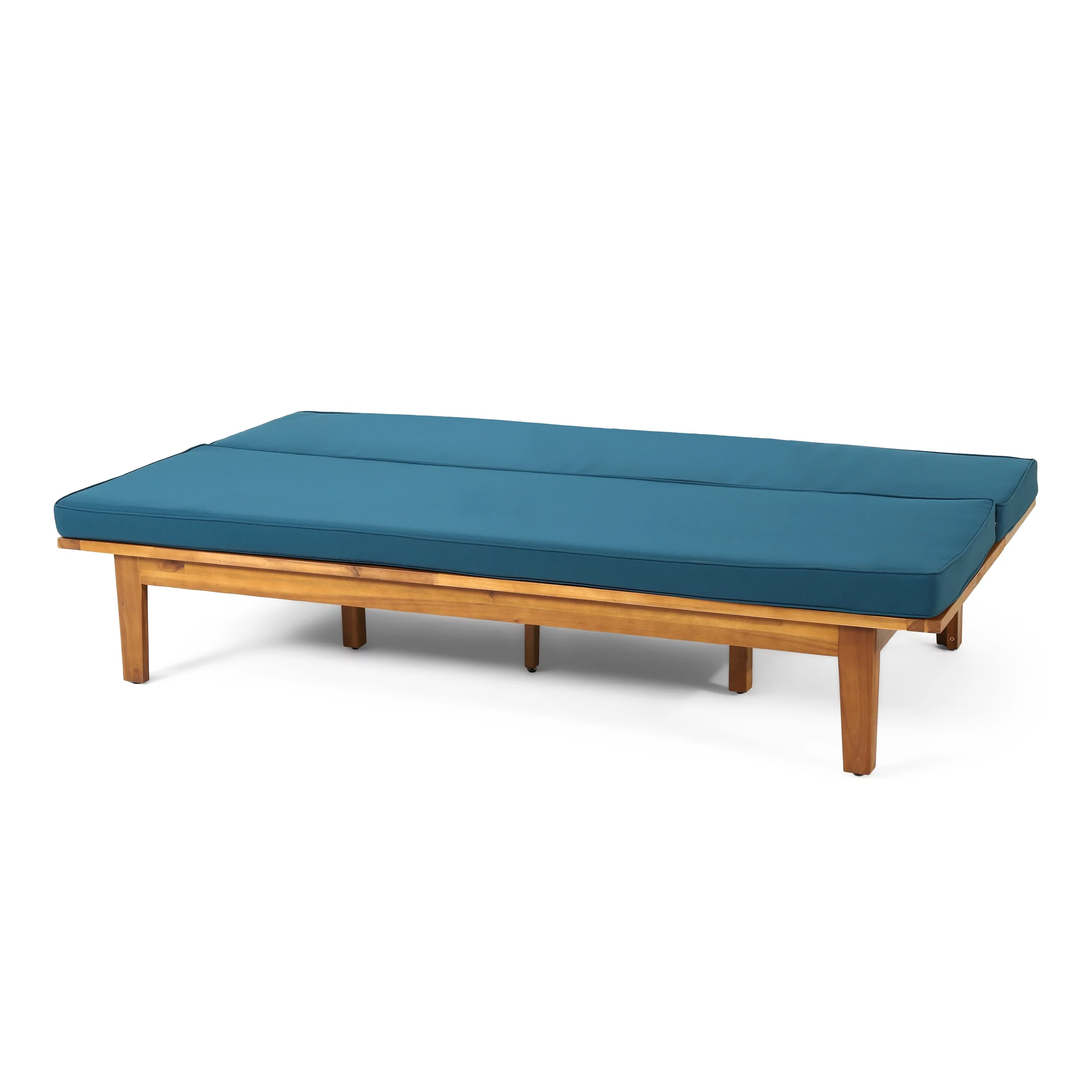 Cavanaugh Acacia Wood Outdoor Convertible Daybed with Cushion, Teak and Dark Teal