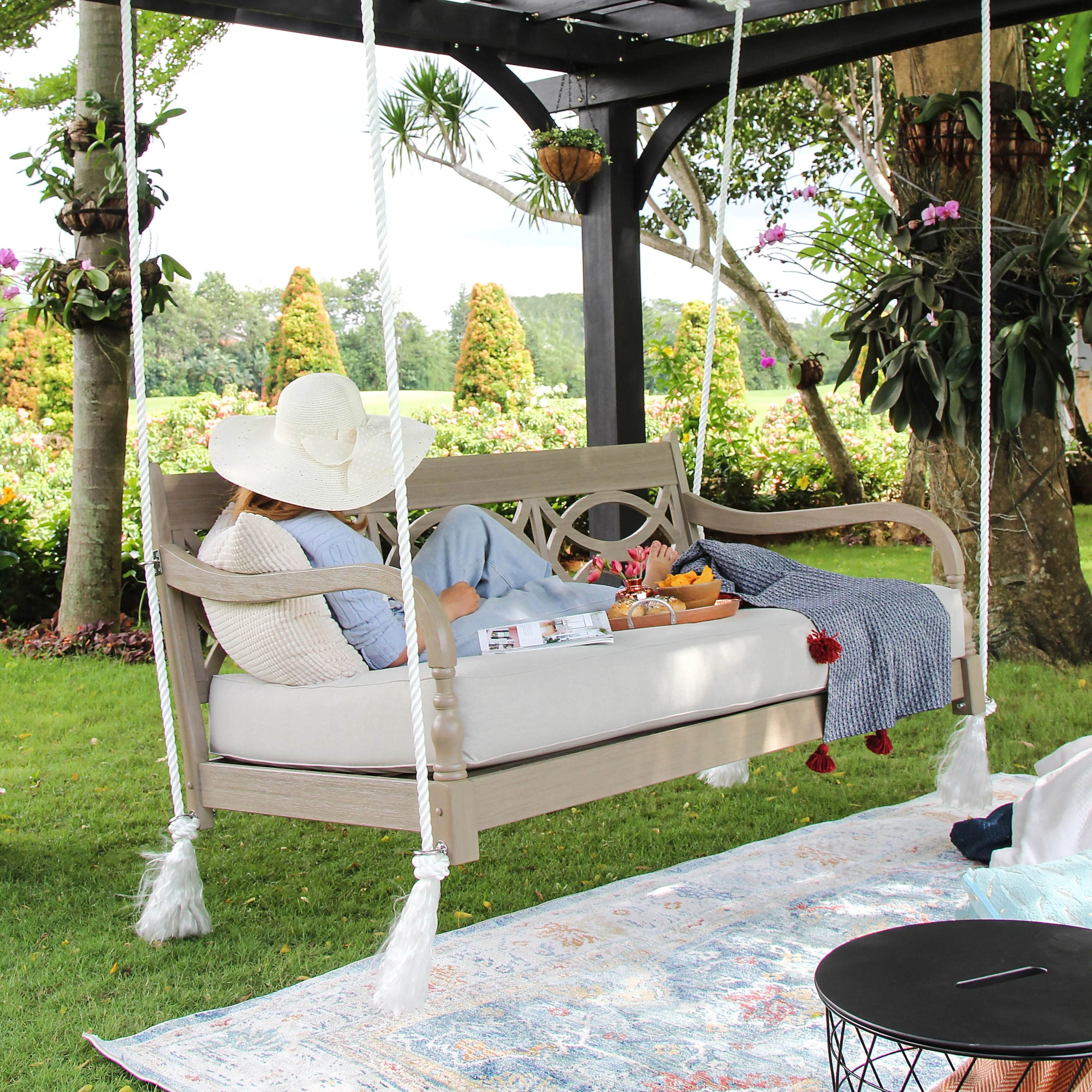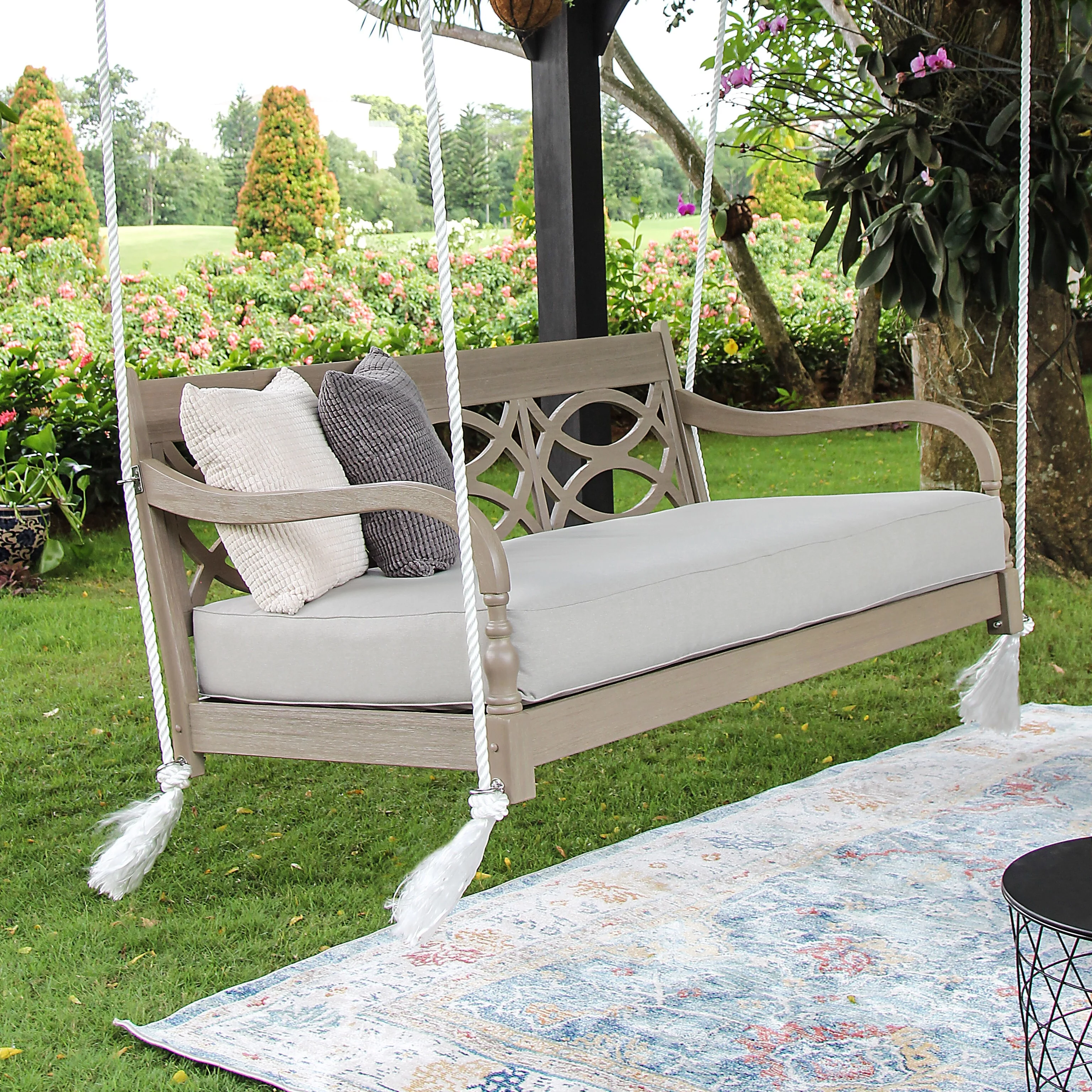 Cambridge Casual Renley Wood Outdoor Swing Daybed with Cushion Lime Wash/Oyster Cushion