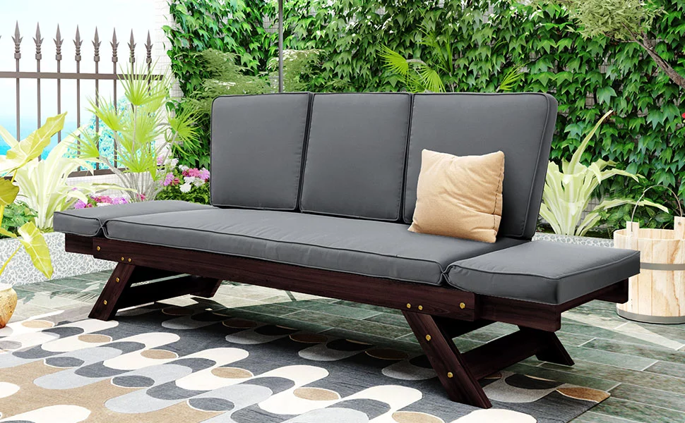 Christopher Knight Home Jill Outdoor Acacia Wood Outdoor Convertible Daybed with Cushion by Teak + Beige