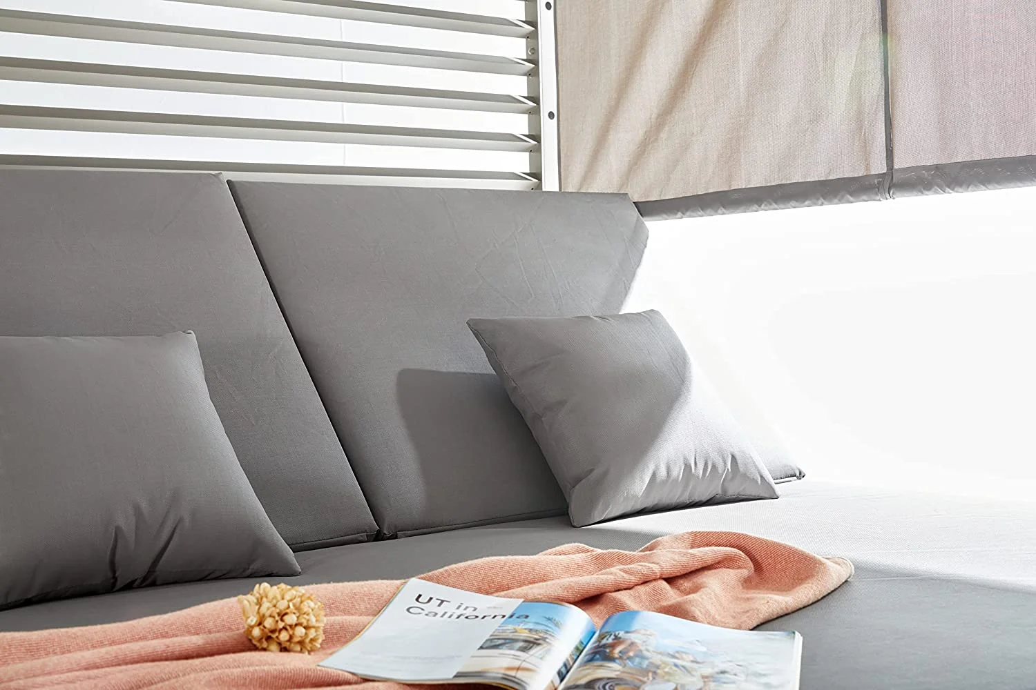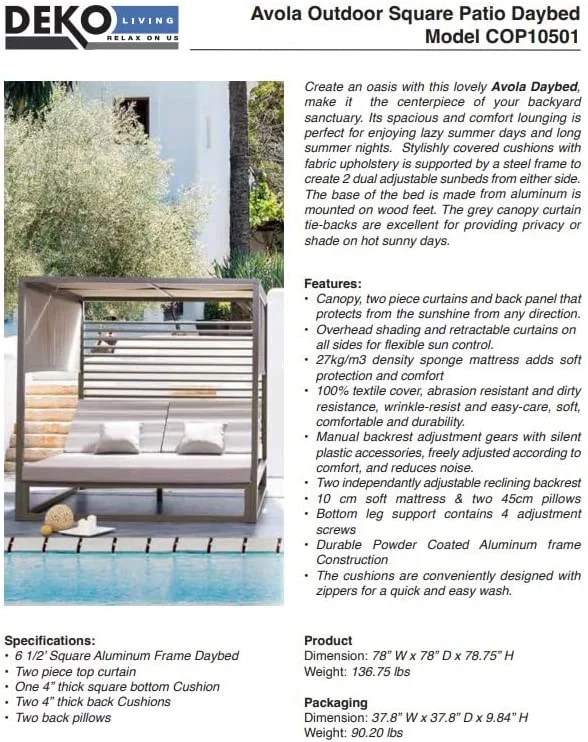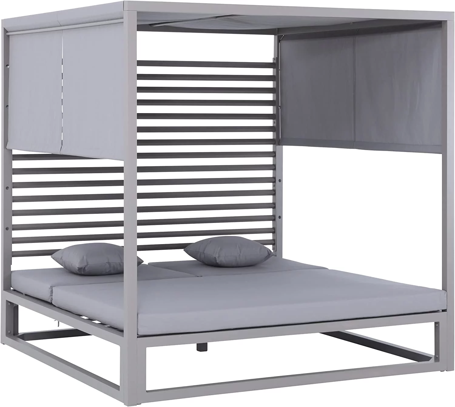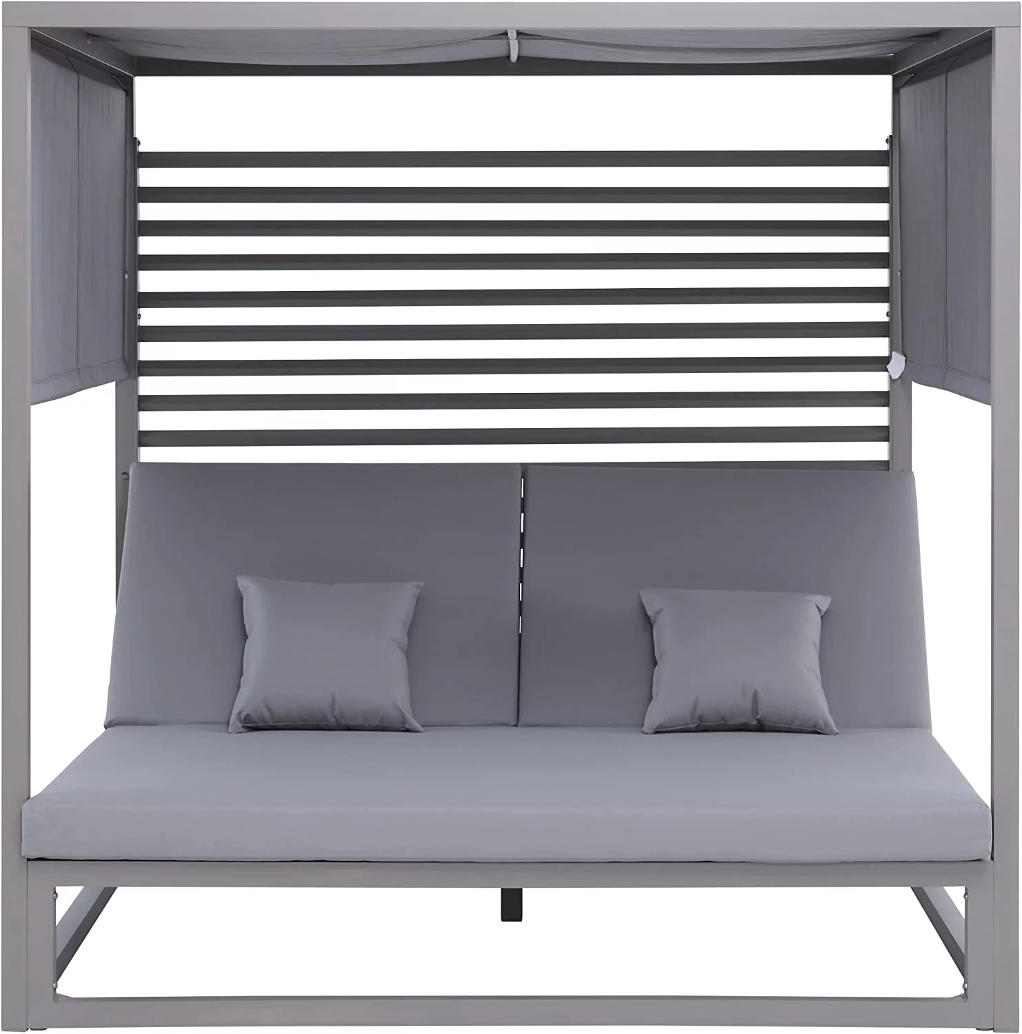 GDF Studio Bordeaux Outdoor Acacia Wood 3 Seater Daybed with Cushions, Teak and Light Gray