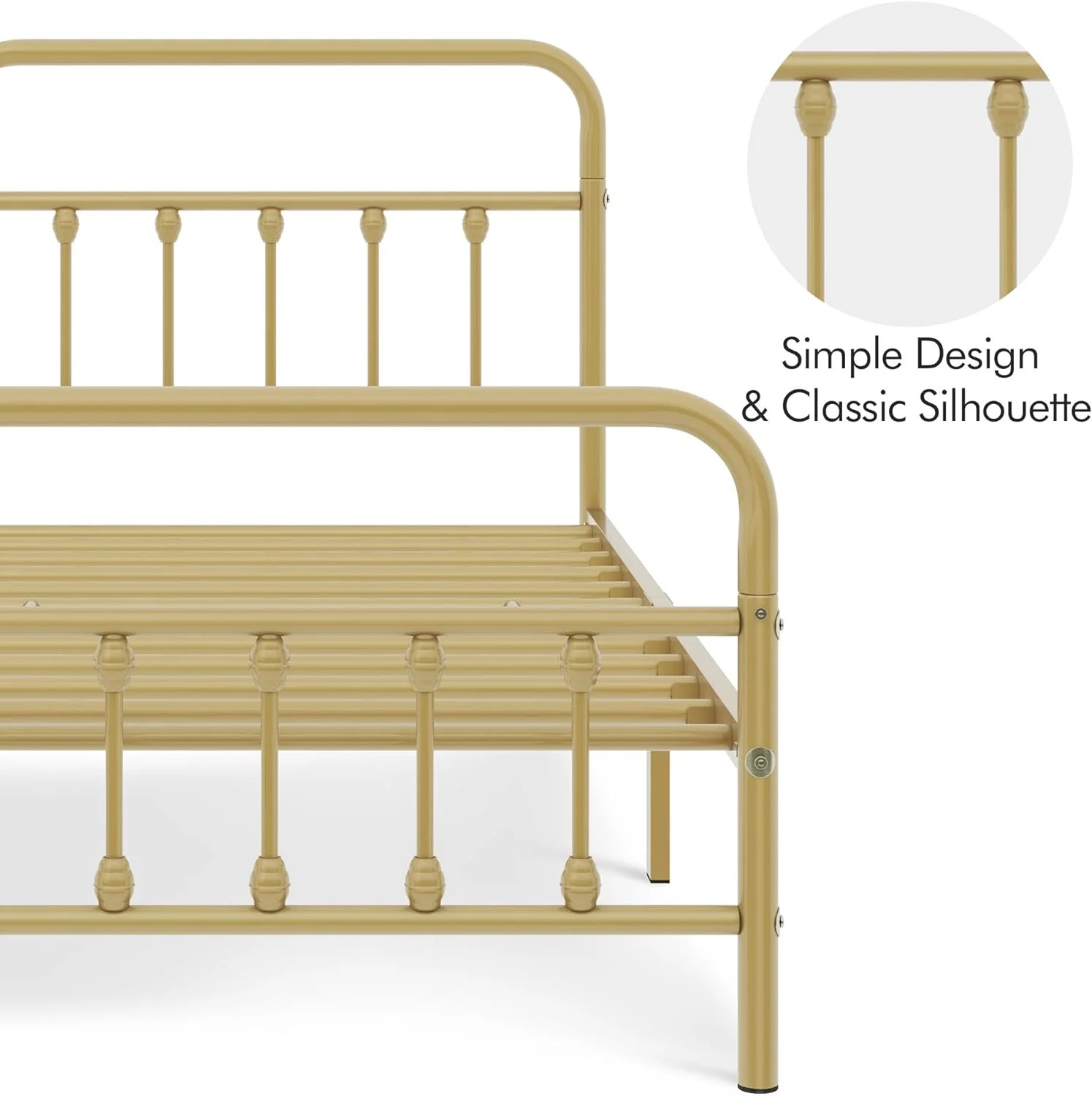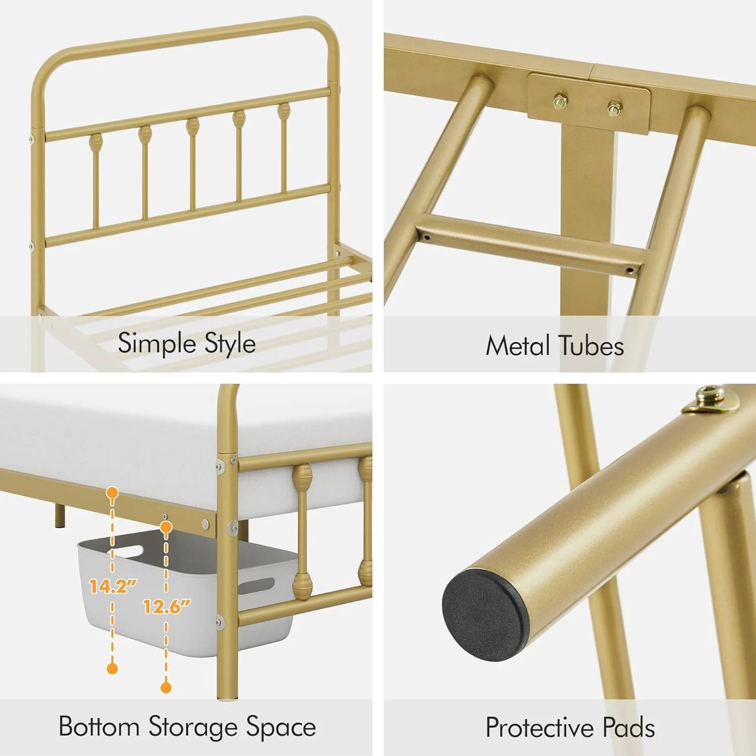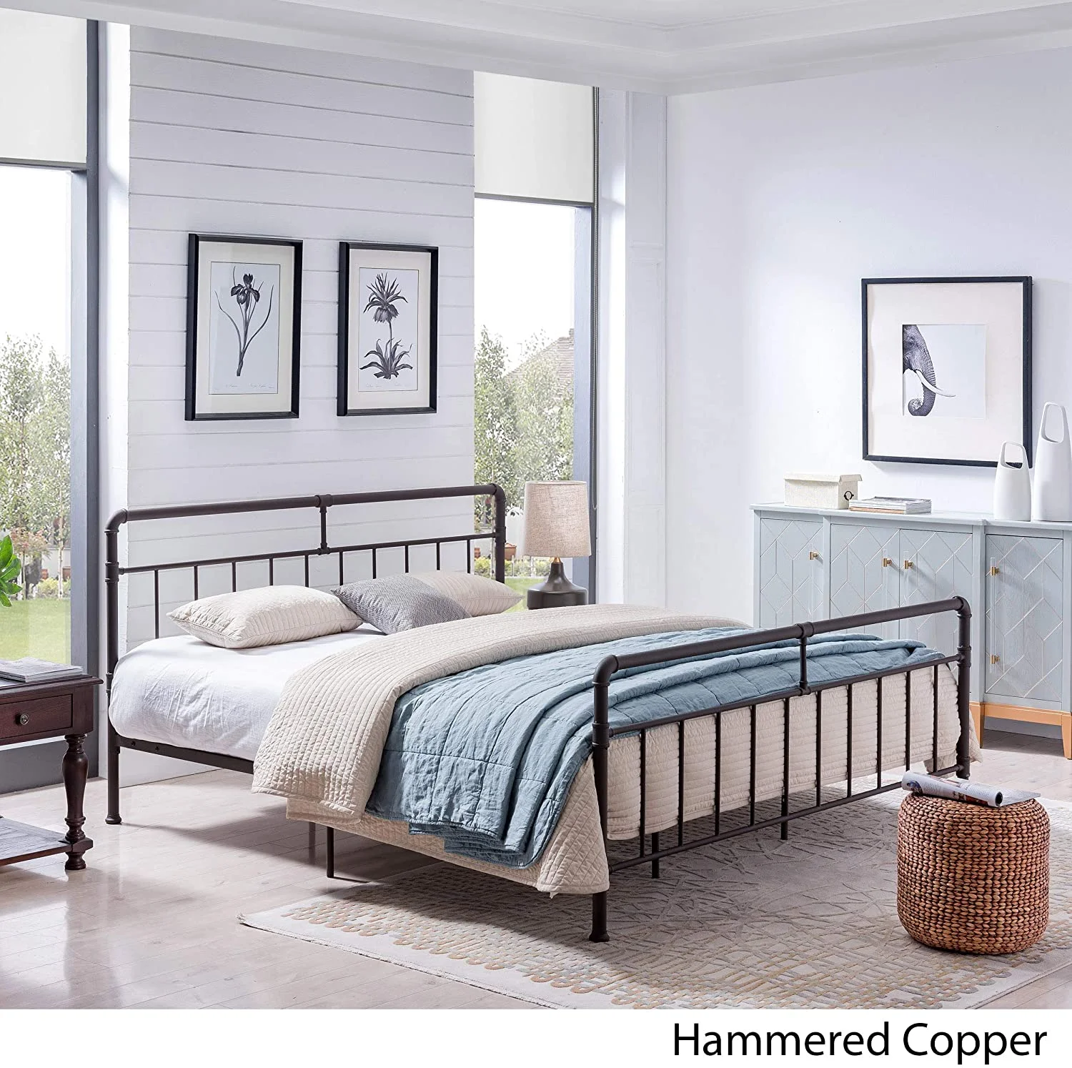 YGDU Sally Queen-Size Iron Bed Frame, Minimal, Industrial, Hammered Copper