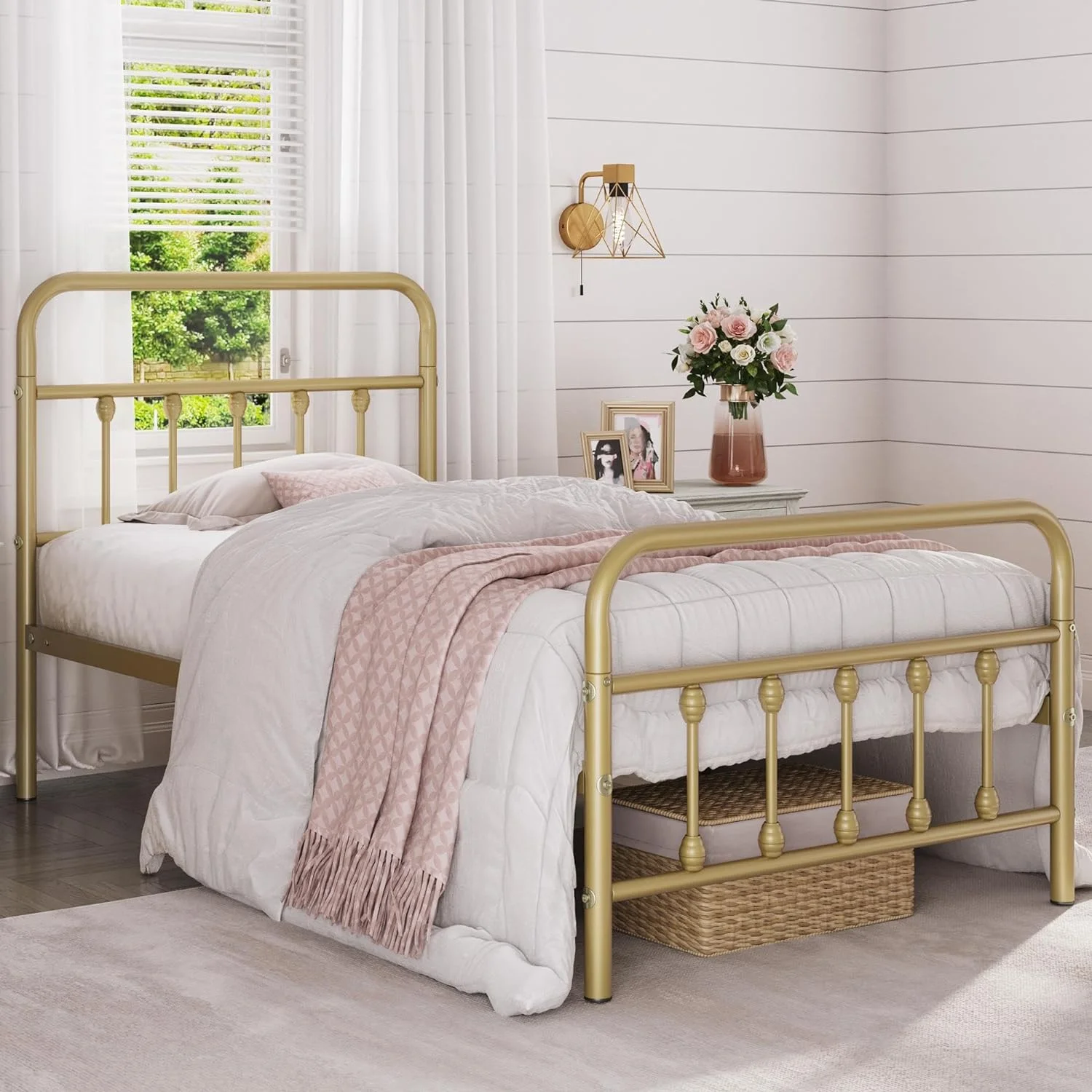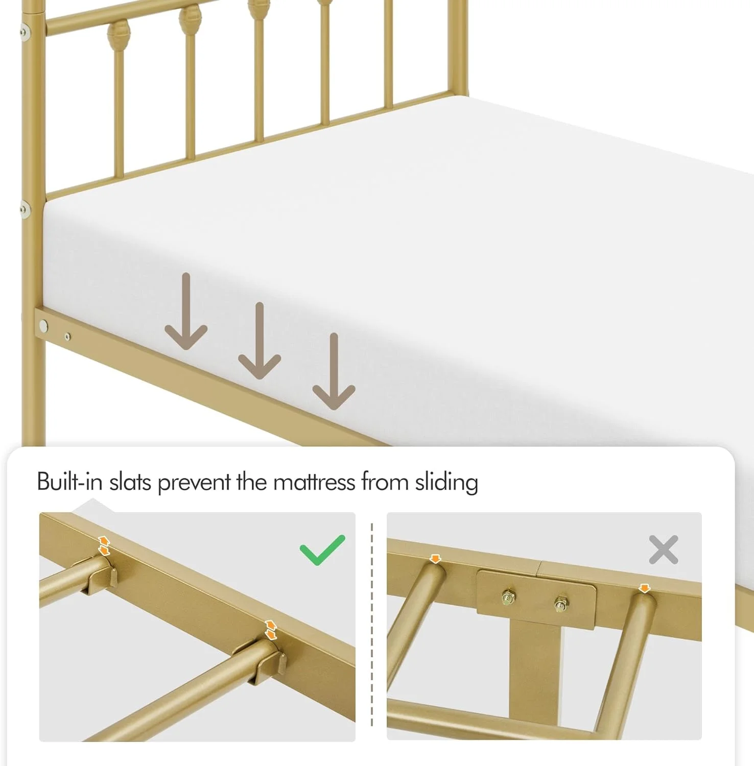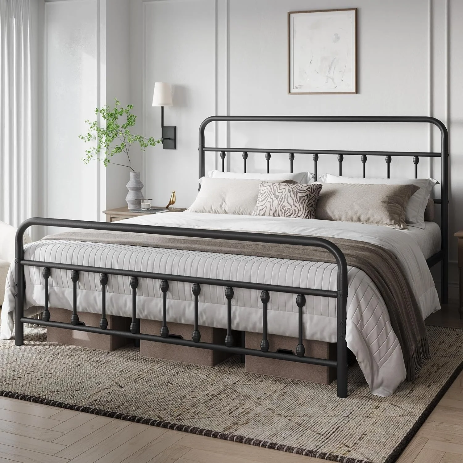 YGDU Sally Queen-Size Iron Bed Frame, Minimal, Industrial, Hammered Copper