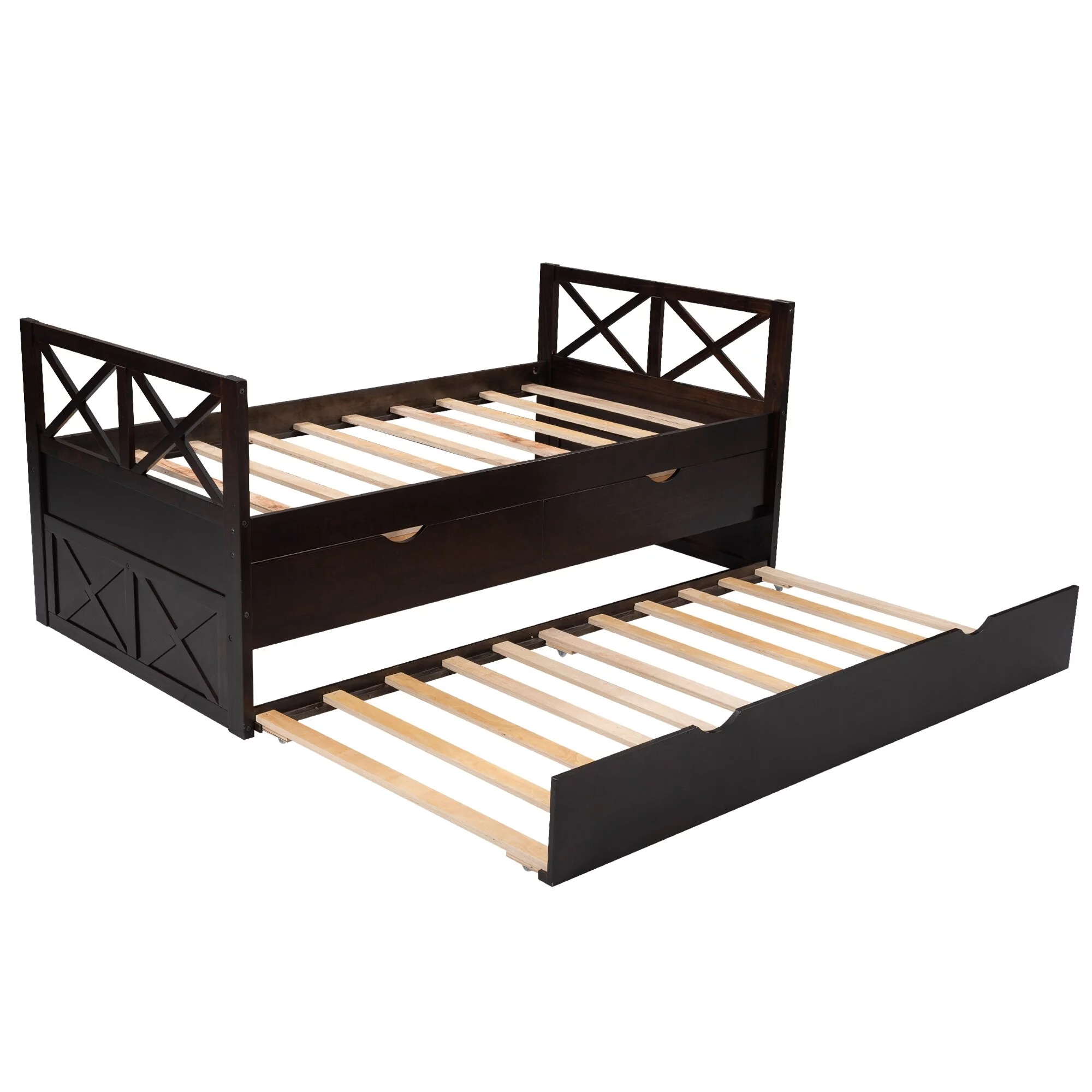 Espresso Rustic Style Multi-Functional Solid Pine Wood Daybed with Two Large Drawers and Extra Trundle, Assembly Required