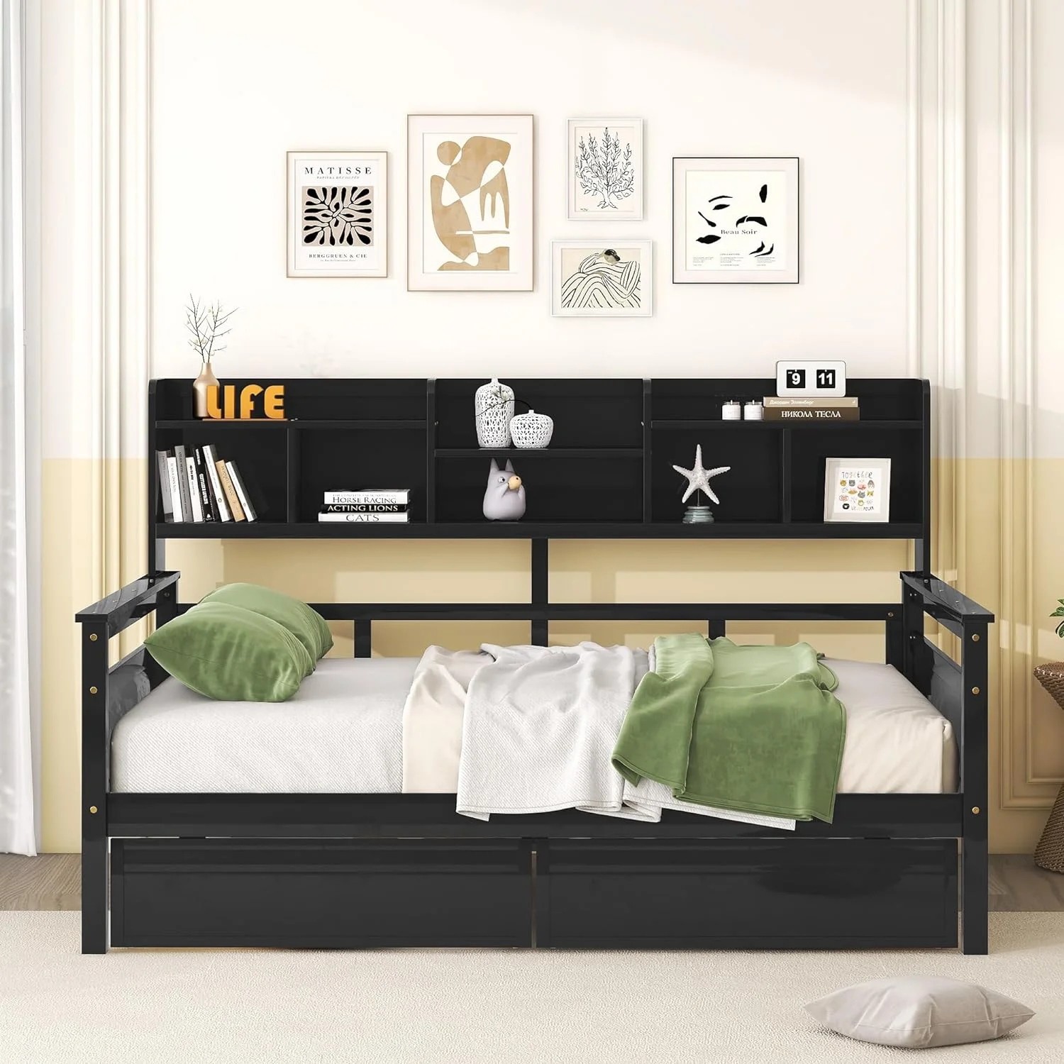 Full Size Wood Daybed,Day Beds Frames For Kids Adults Full Daybed Platform Bed Sofa Bed For Bedroom Living Room,White