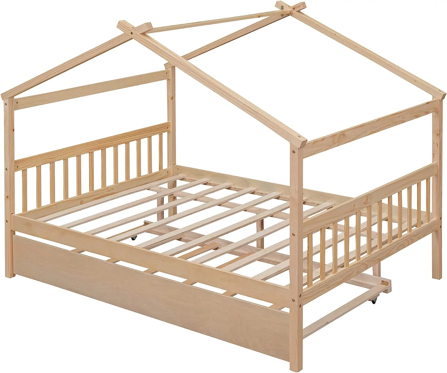 Twin Size Wood House Bed with Storage Space, Natural(OLD SKU: LP000001AAM)