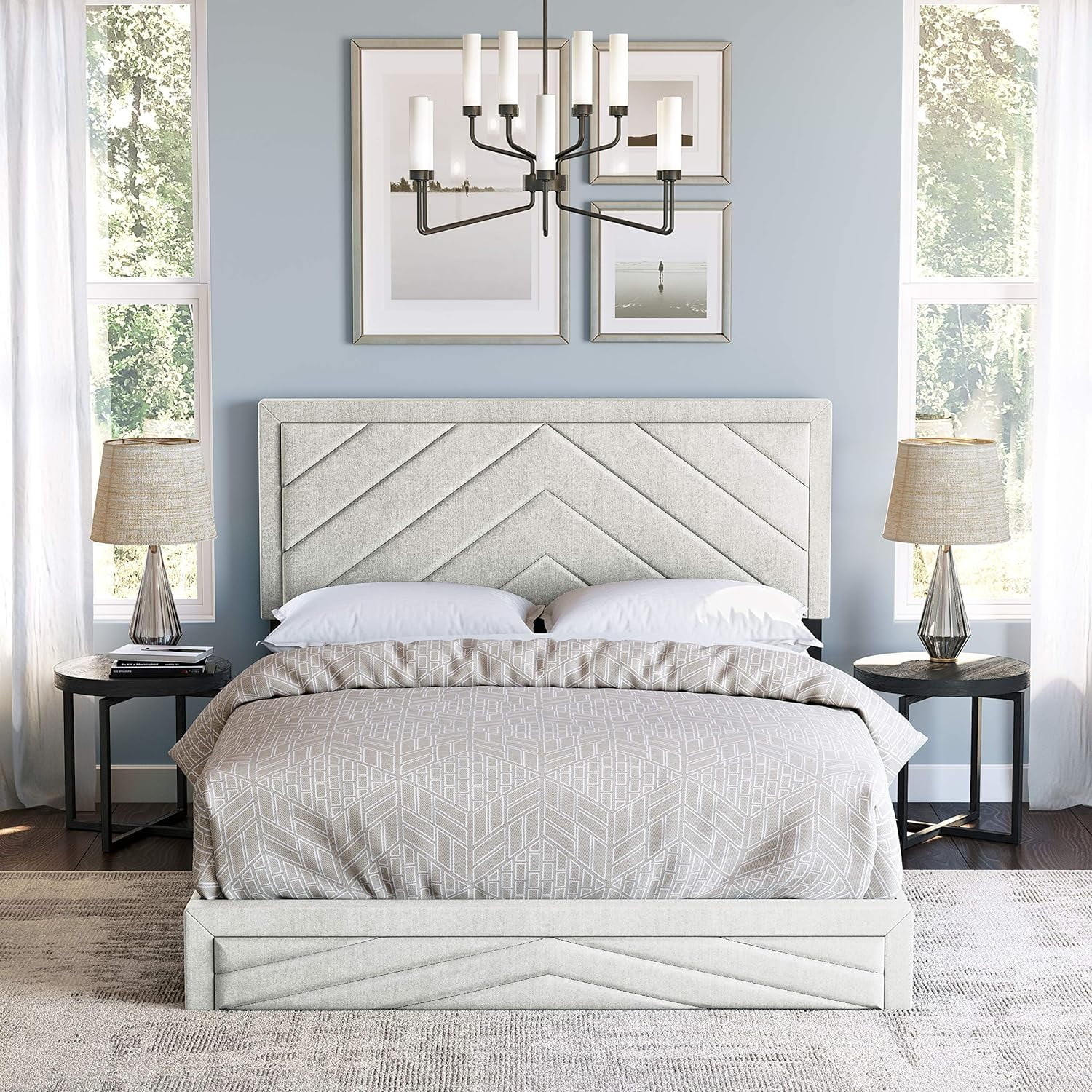 Meridian Furniture Pablo Gray Velvet King Bed with Chrome Metal Legs