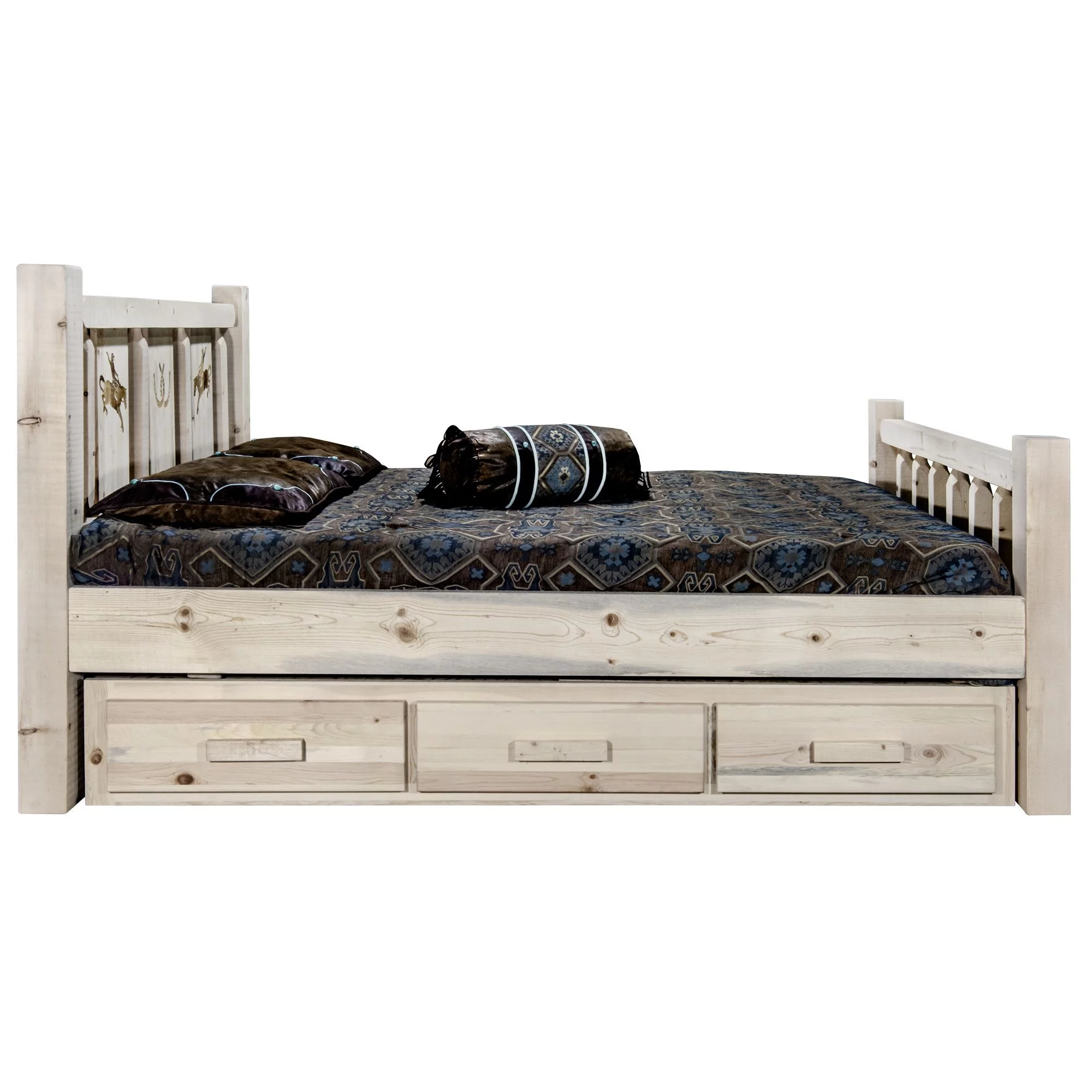 Montana Woodworks Wood Twin Storage Bed with Engraved Wolf Design in Natural