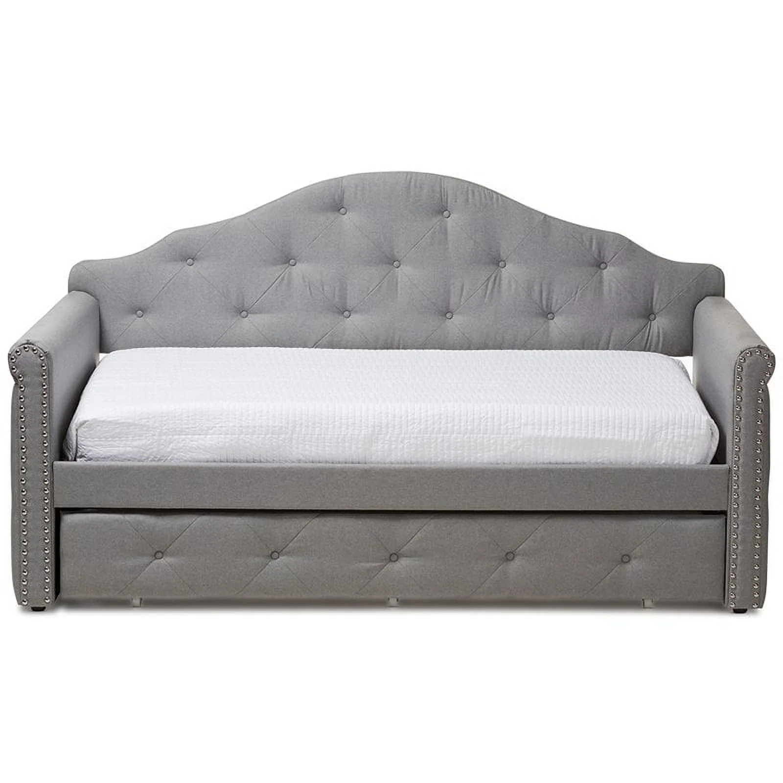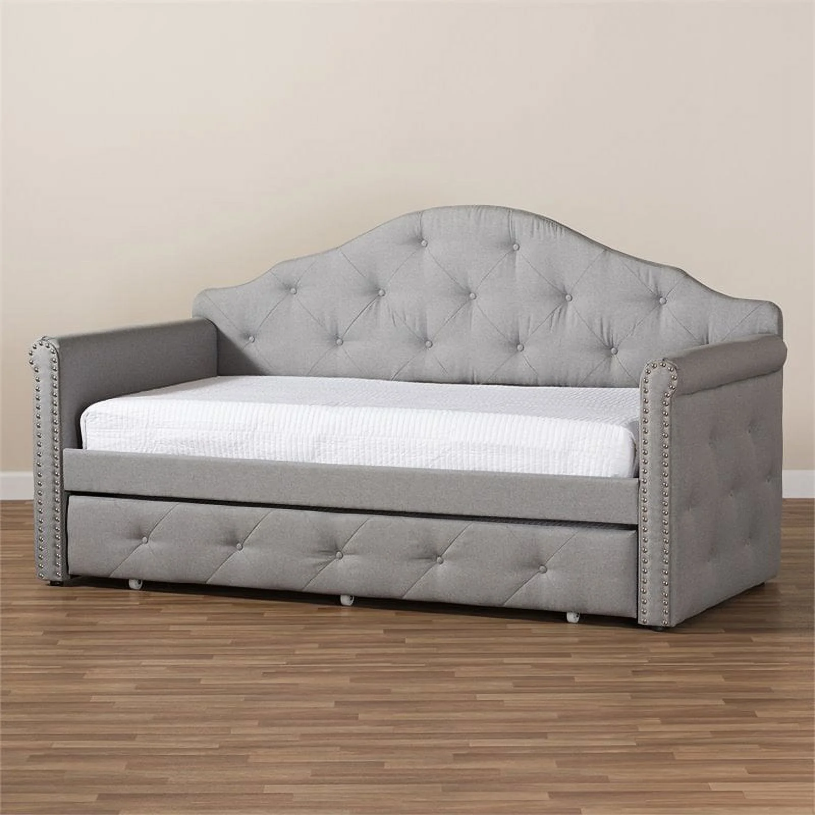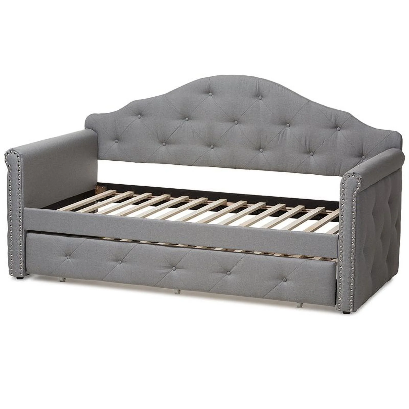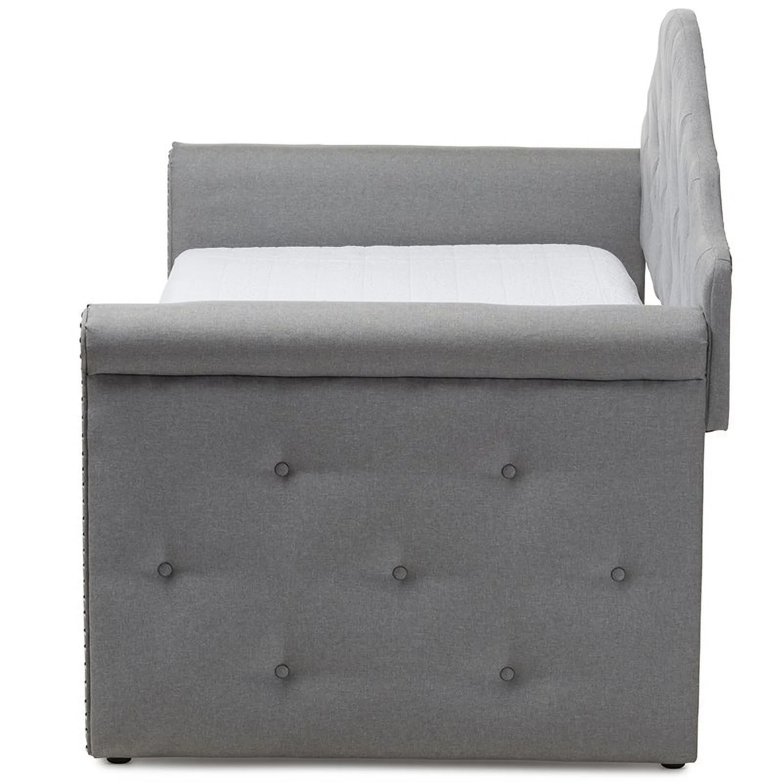 Fabric Twin Size Daybed with Channel Tufting & Nailhead Trim, Gray