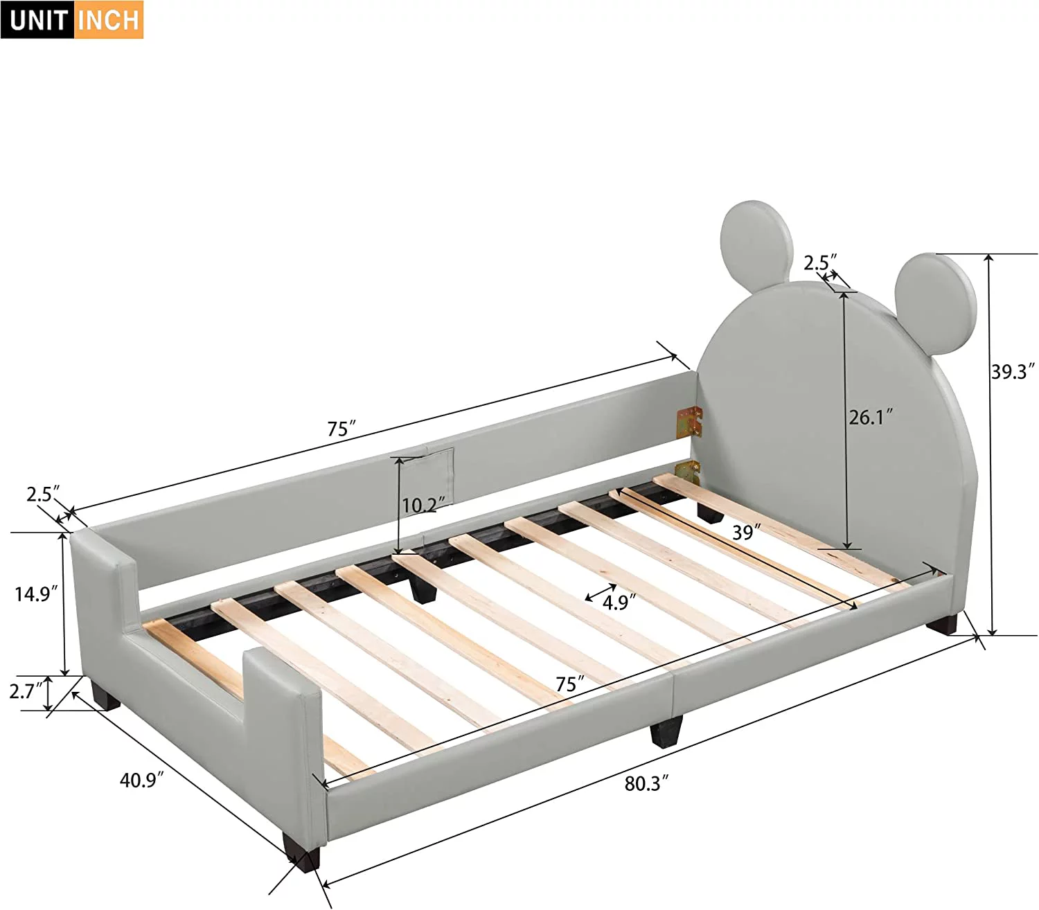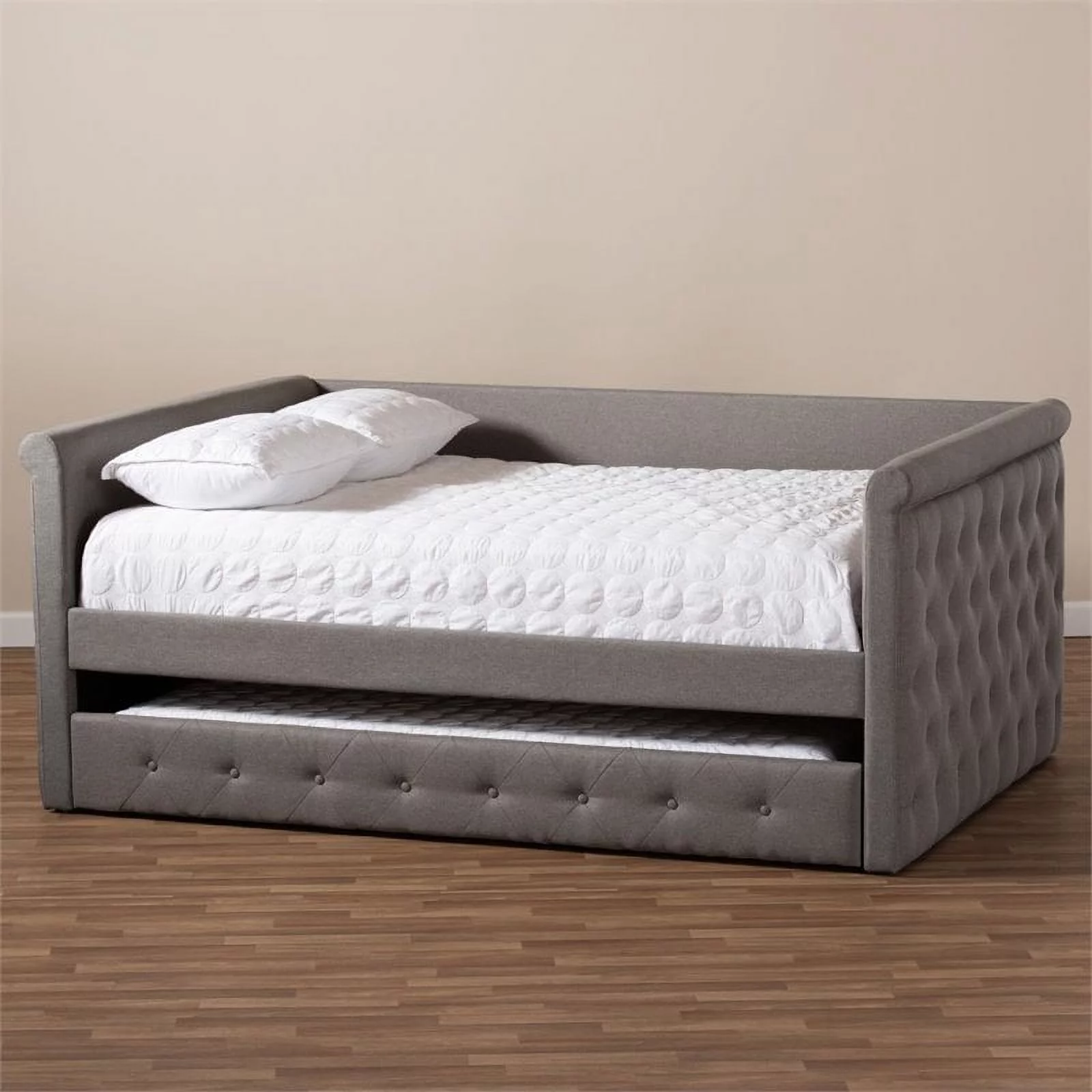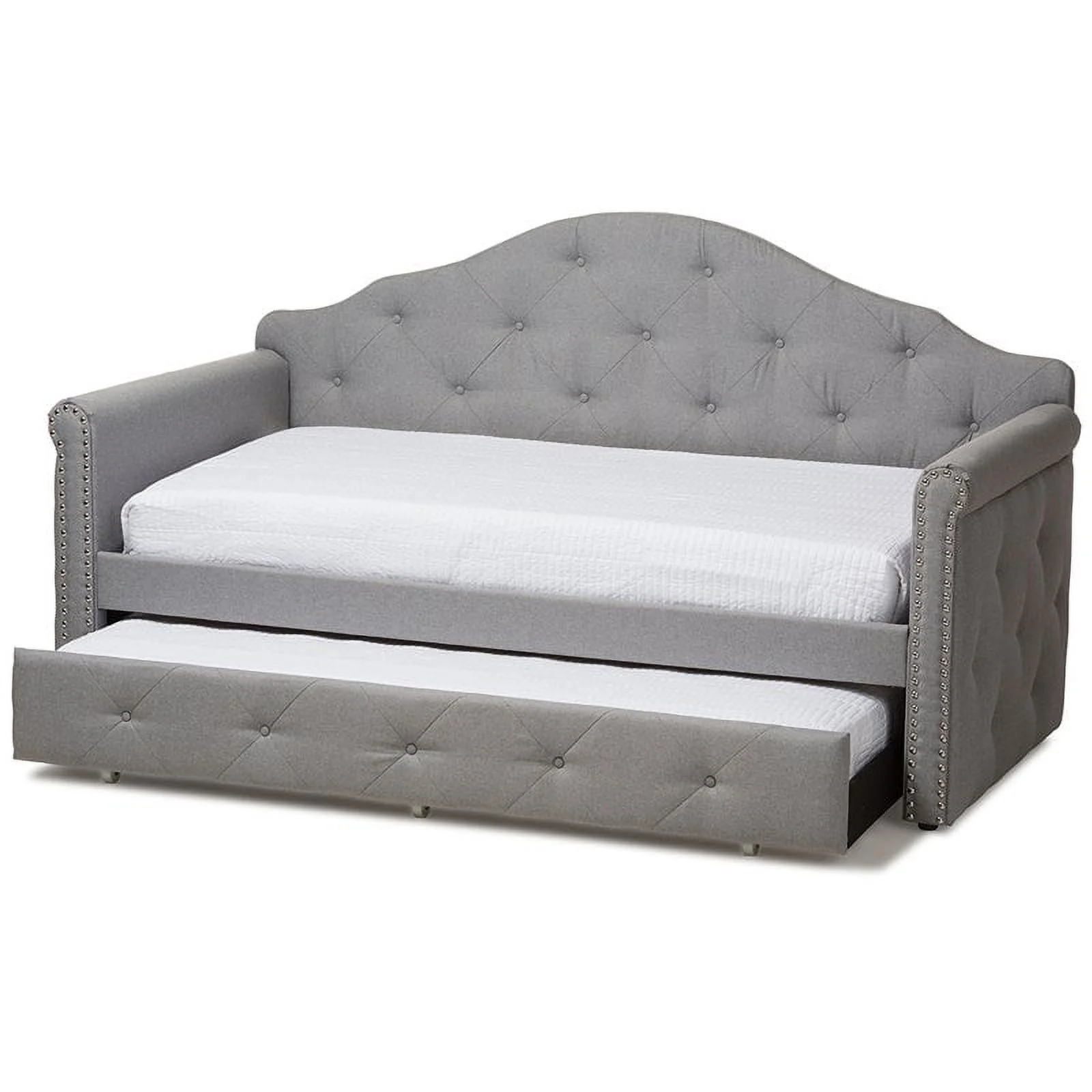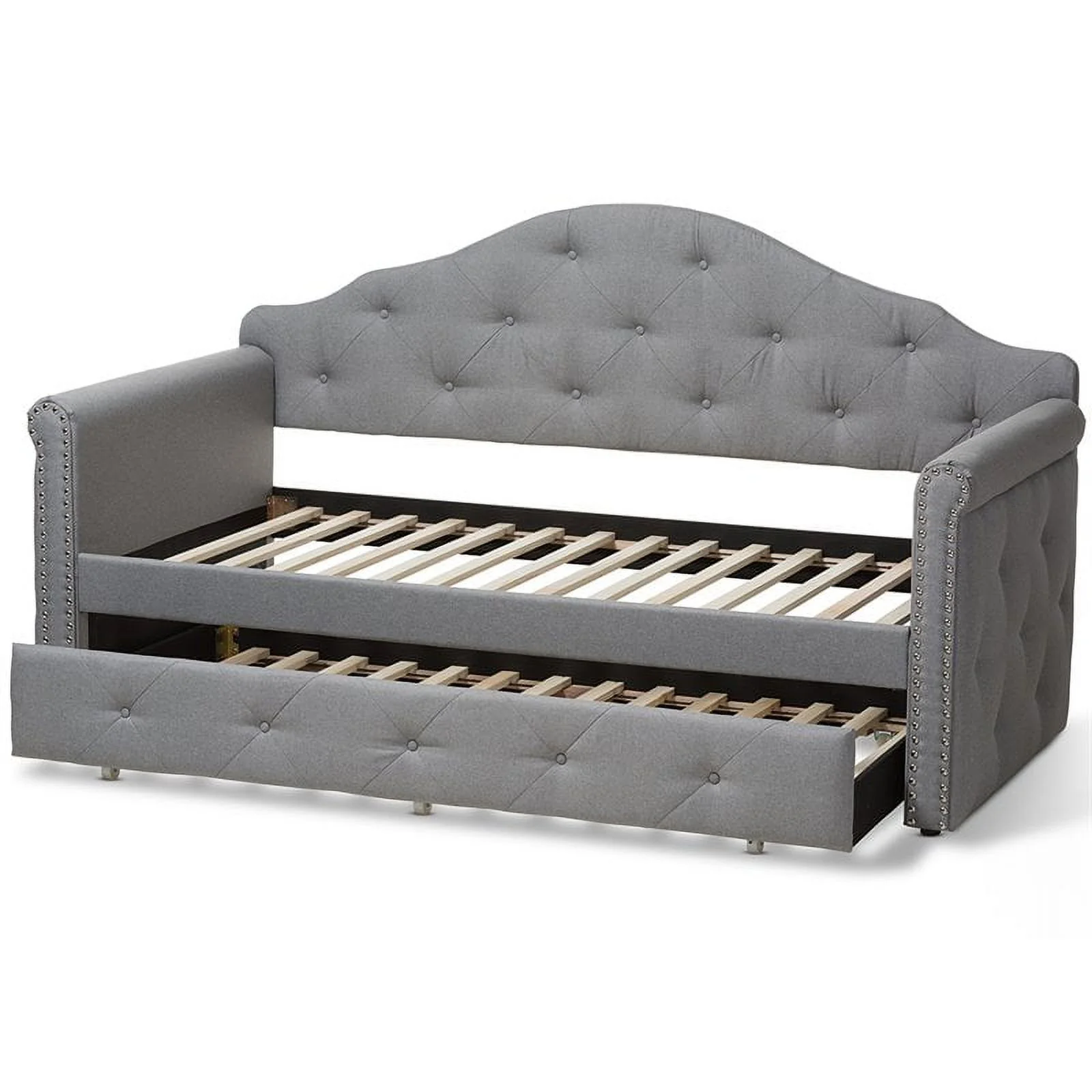 Fabric Twin Size Daybed with Channel Tufting & Nailhead Trim, Gray