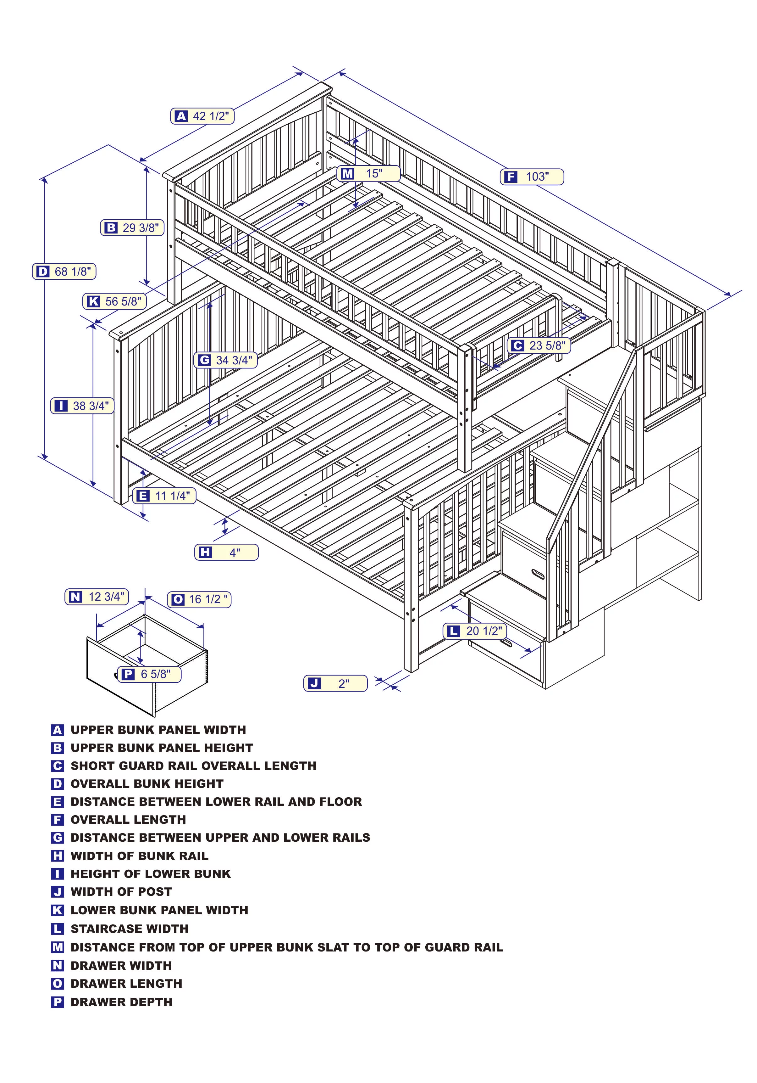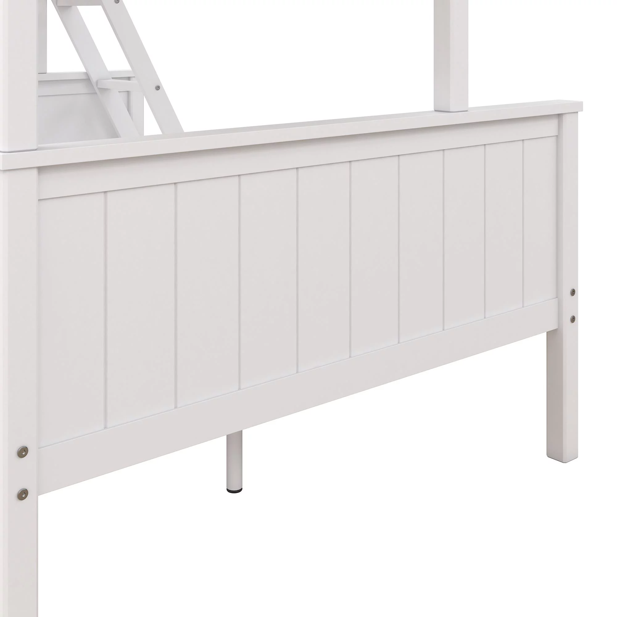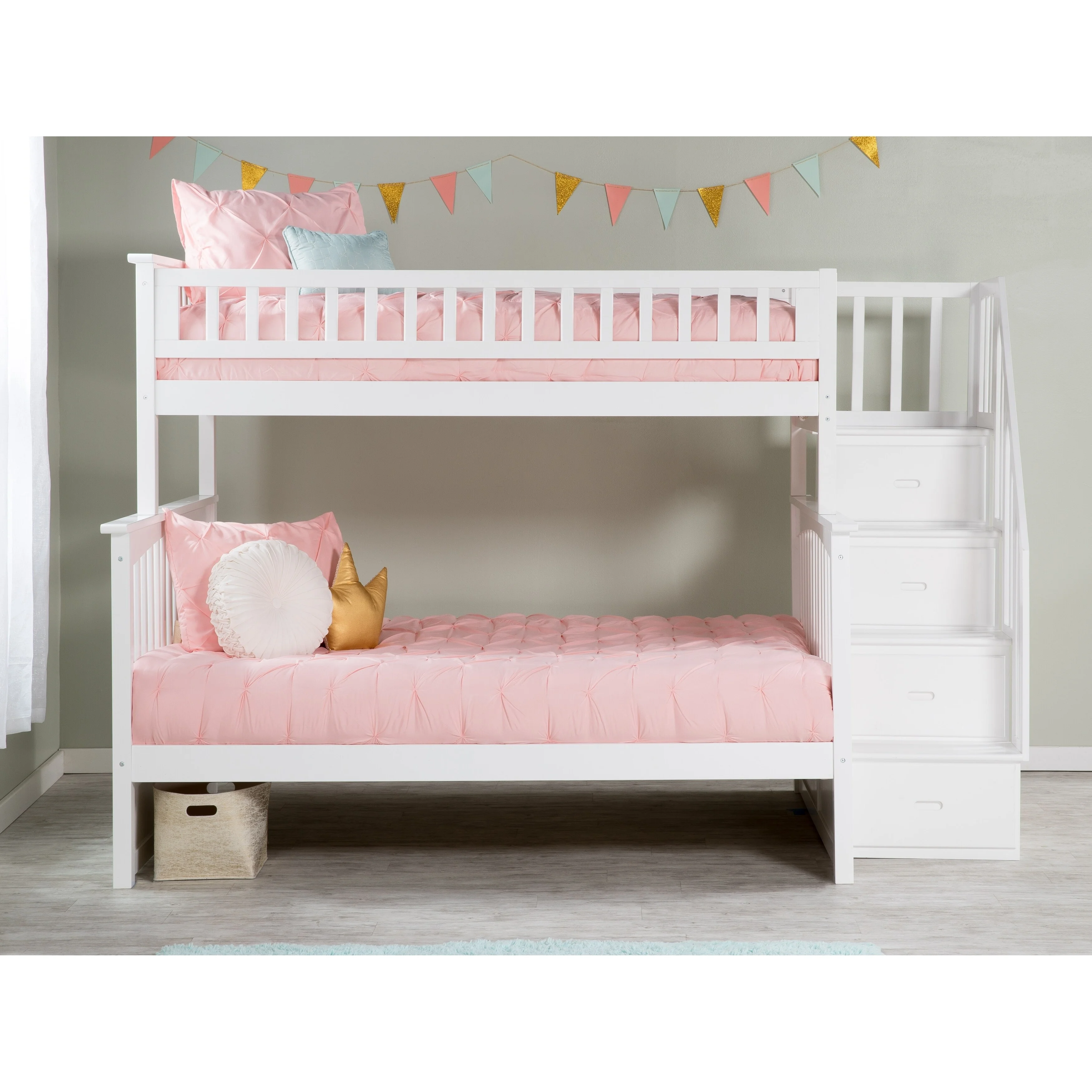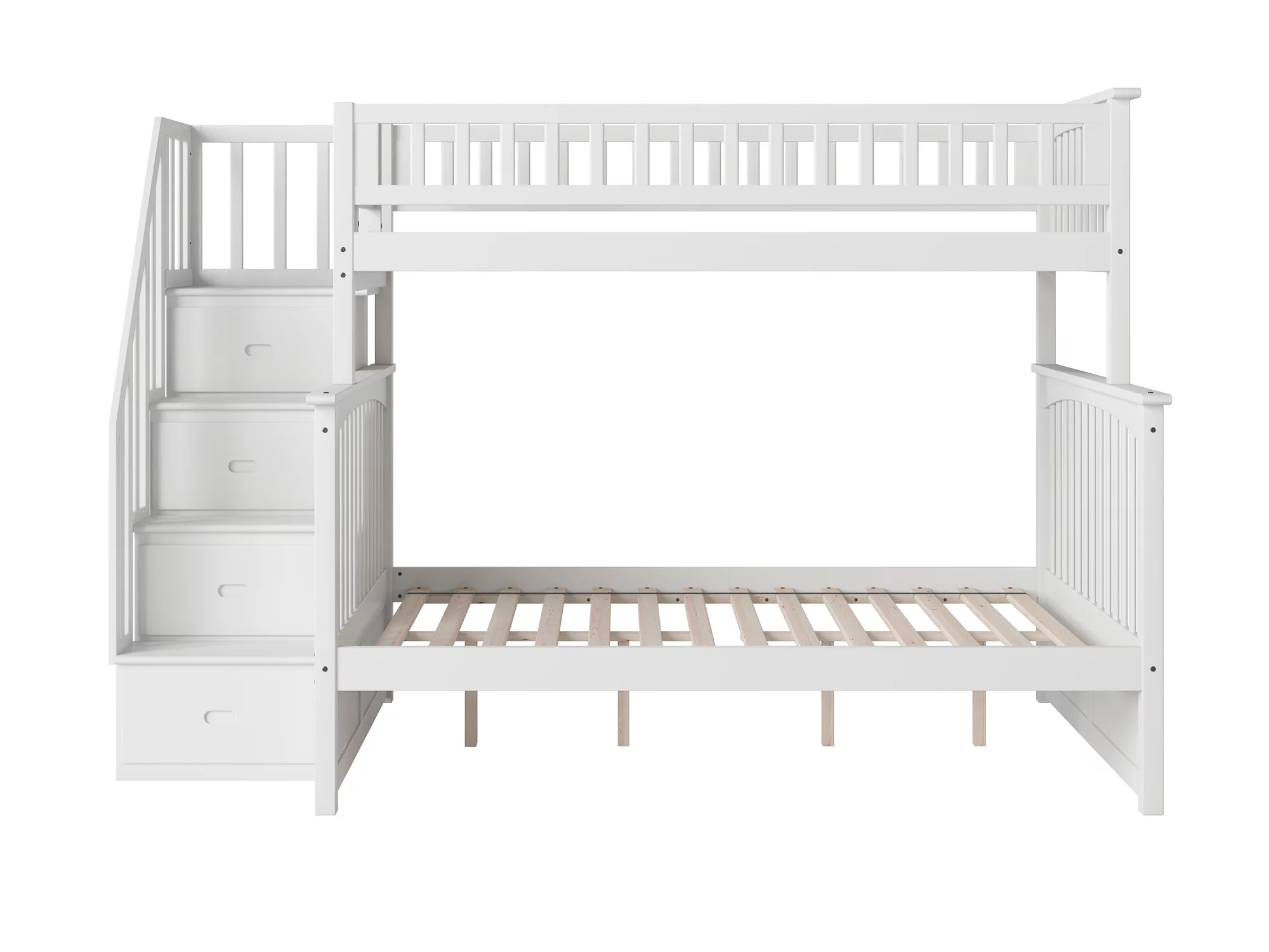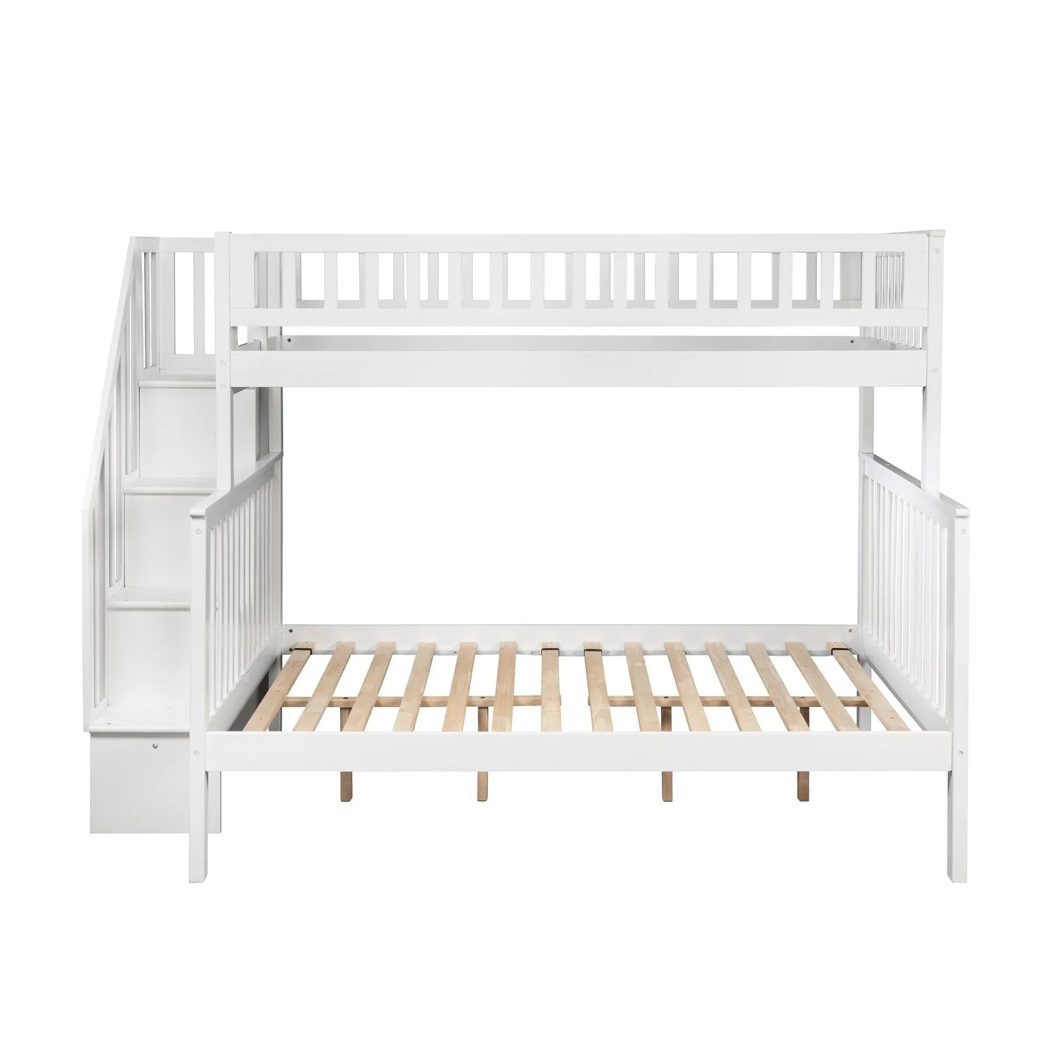 White Stairway Twin-Over-Full Bunk Bed with Storage and Guard Rail for Bedroom