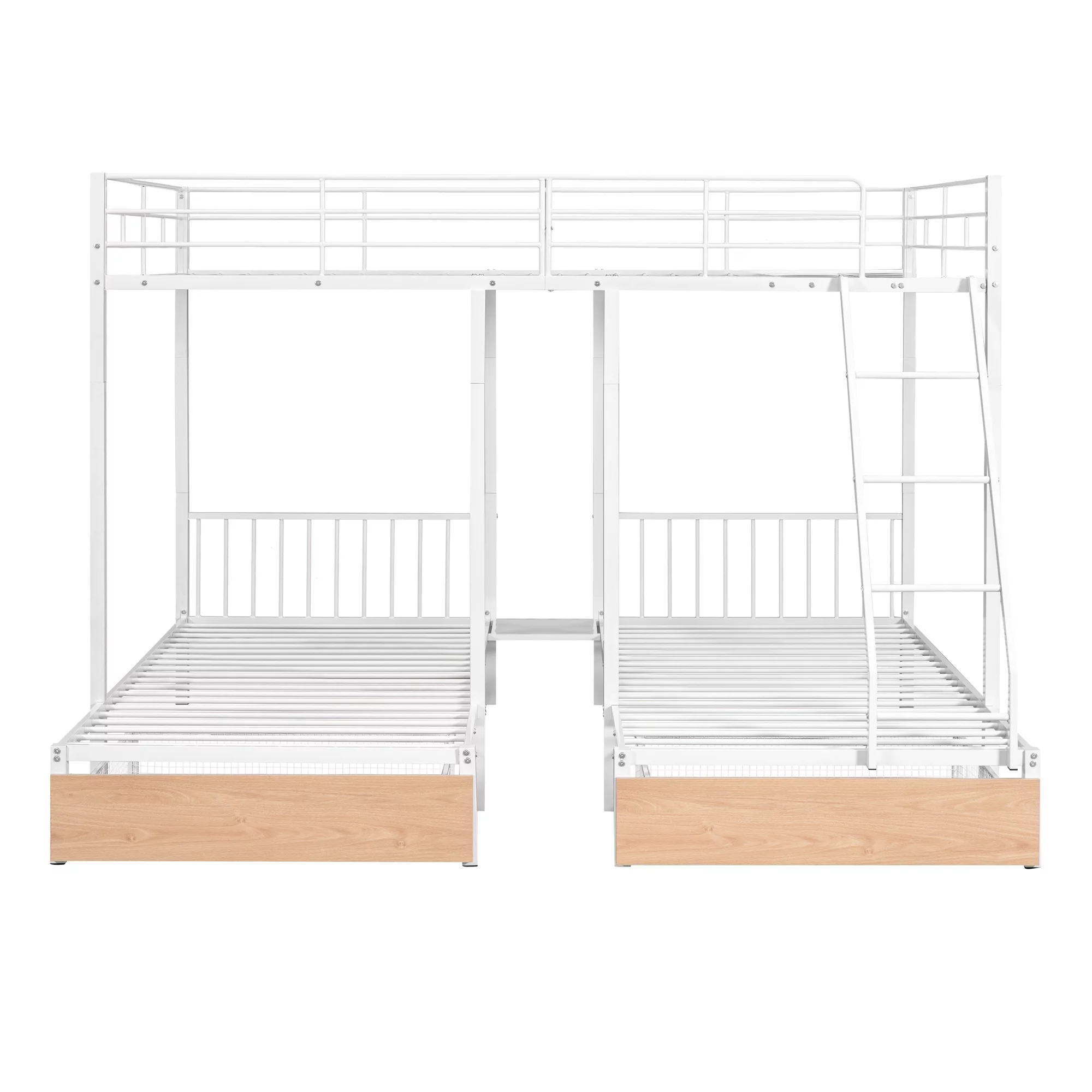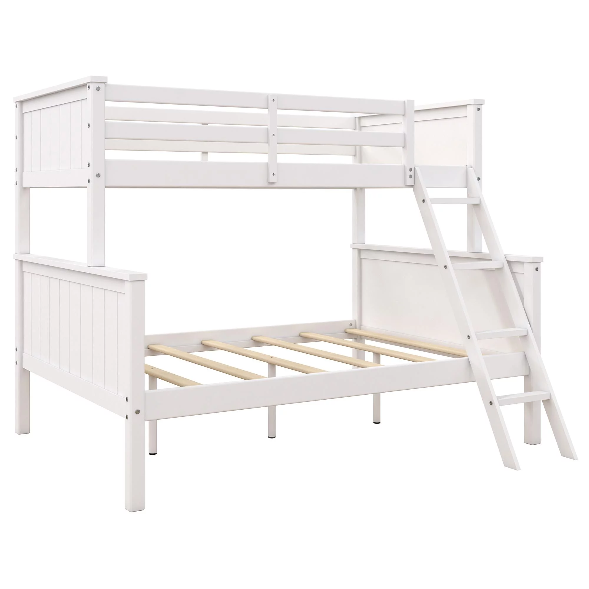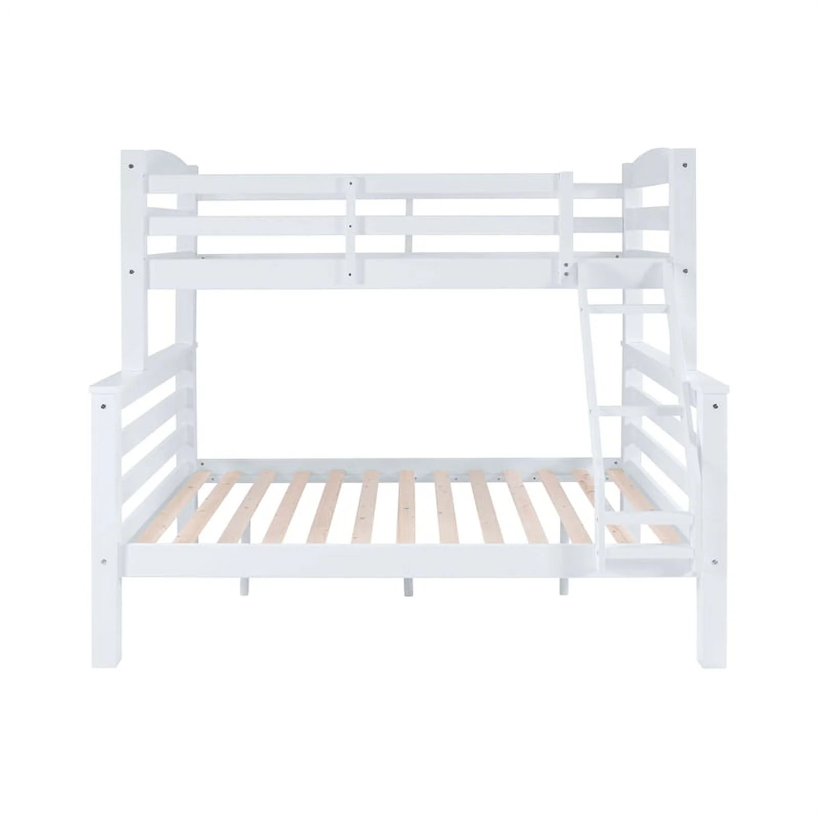 Wood Triple Bunk Bed with Guardrails, Full Over Twin & Twin Bunk Bed White