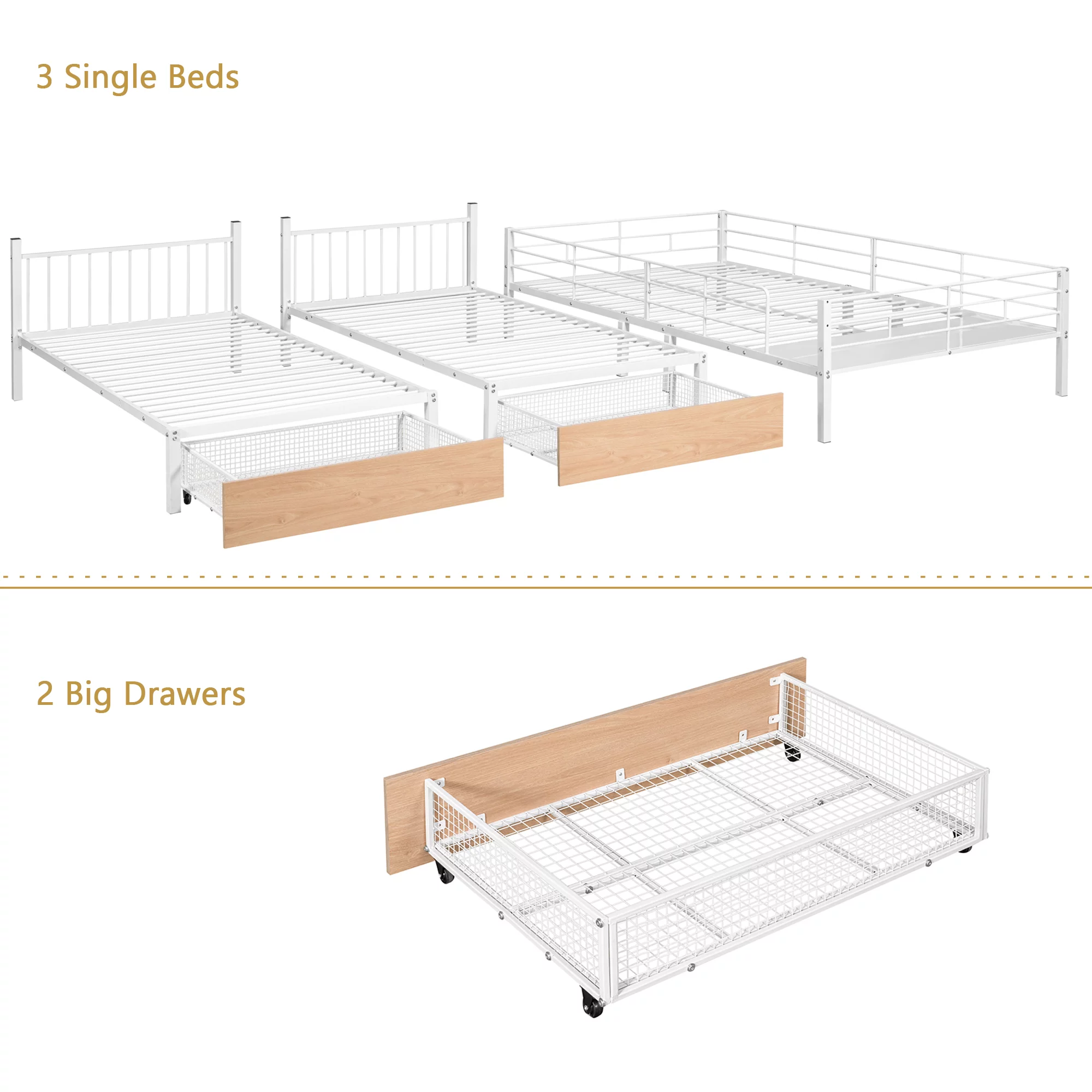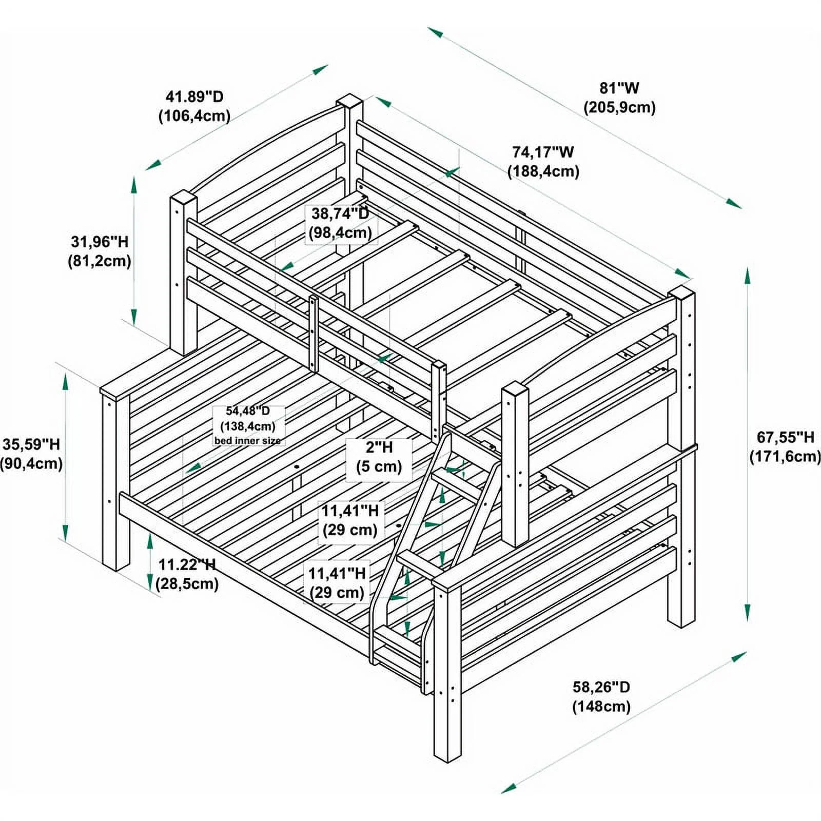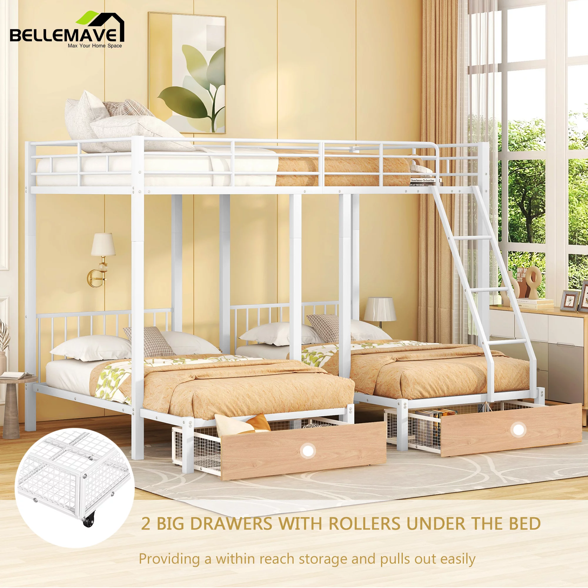 Wood Triple Bunk Bed with Guardrails, Full Over Twin & Twin Bunk Bed White