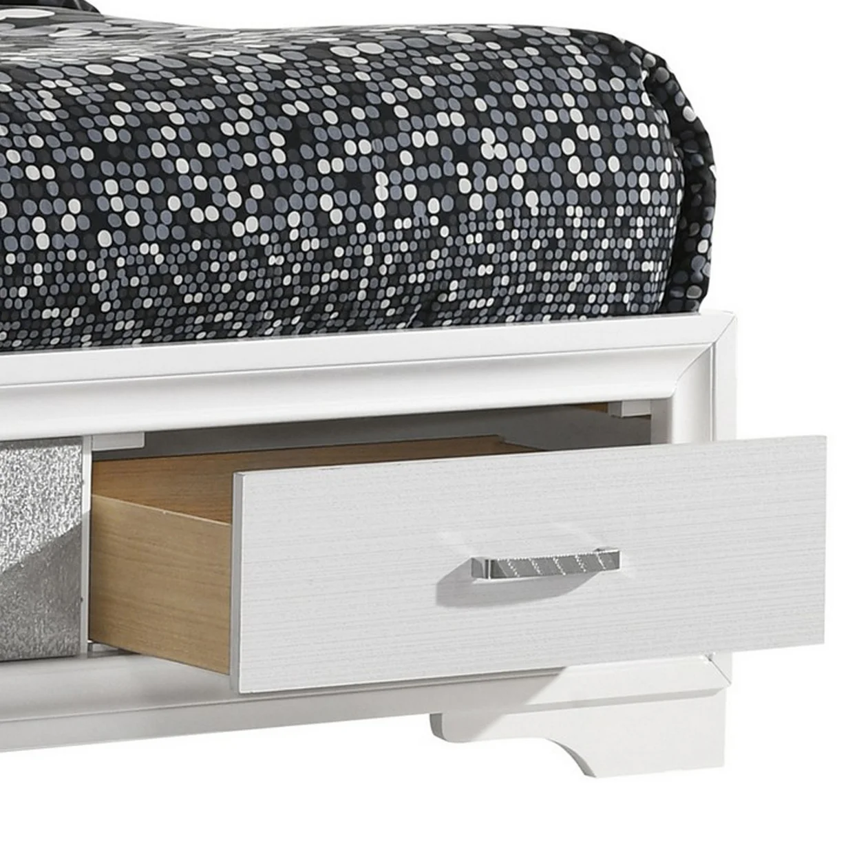Vino Full Size Panel Bed with 2 Storage Drawers Acrylic Glitter White- Saltoro Sherpi