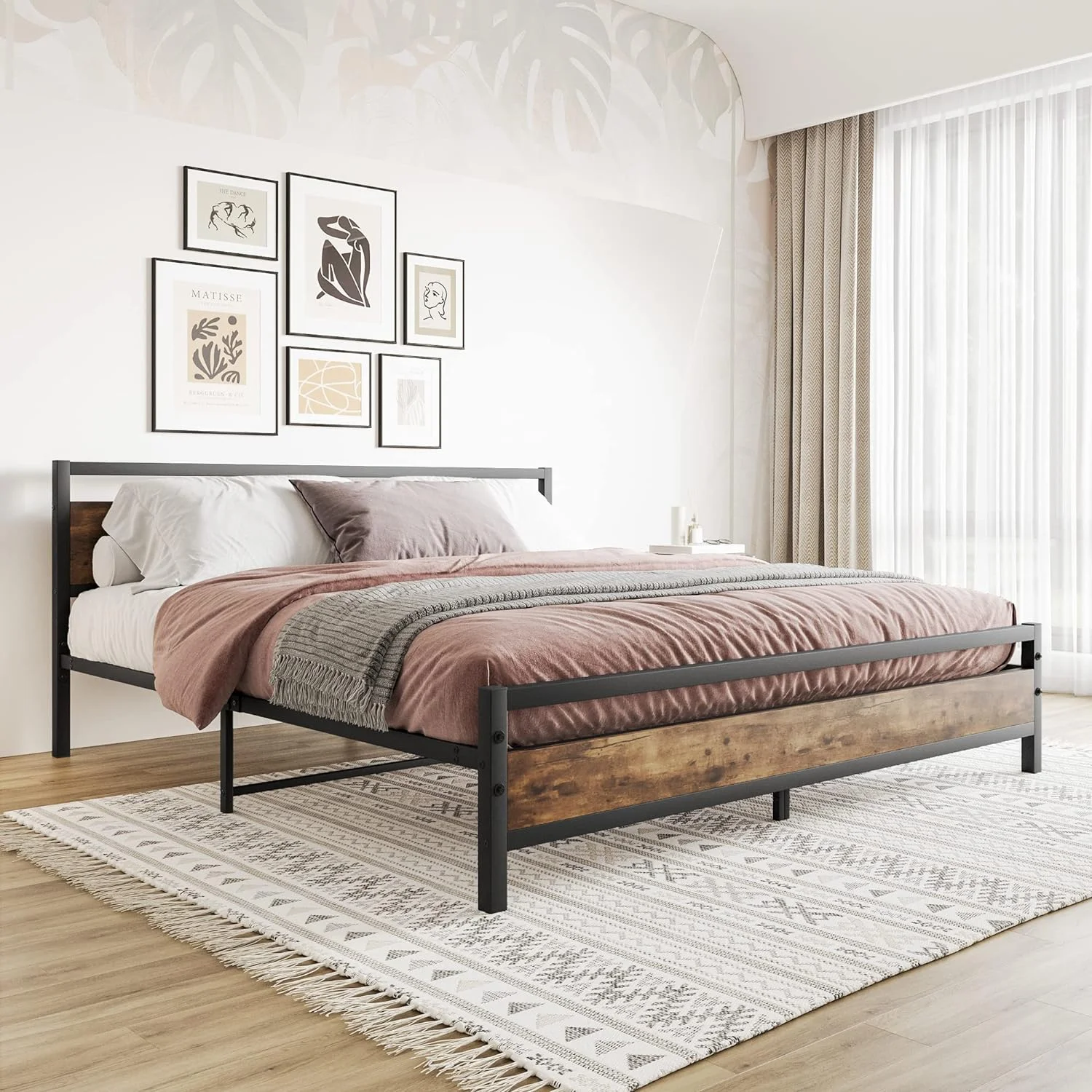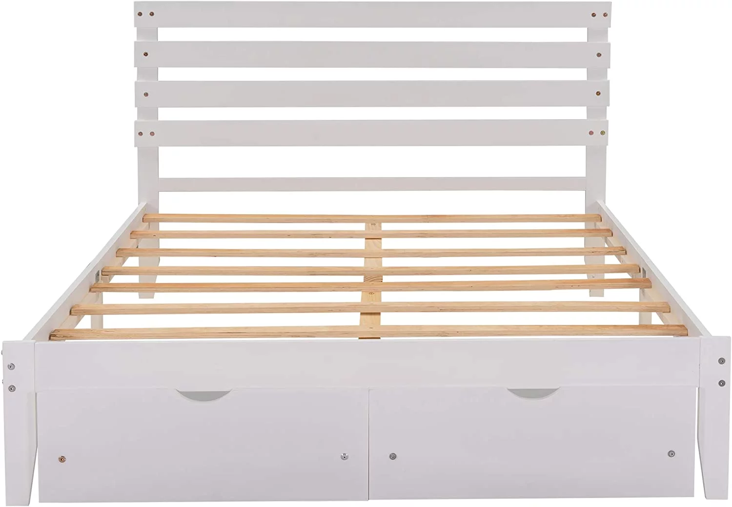 Full Size Platform Bed With Storage Drawer, Wooden Bed Frame With Headboard (White, )