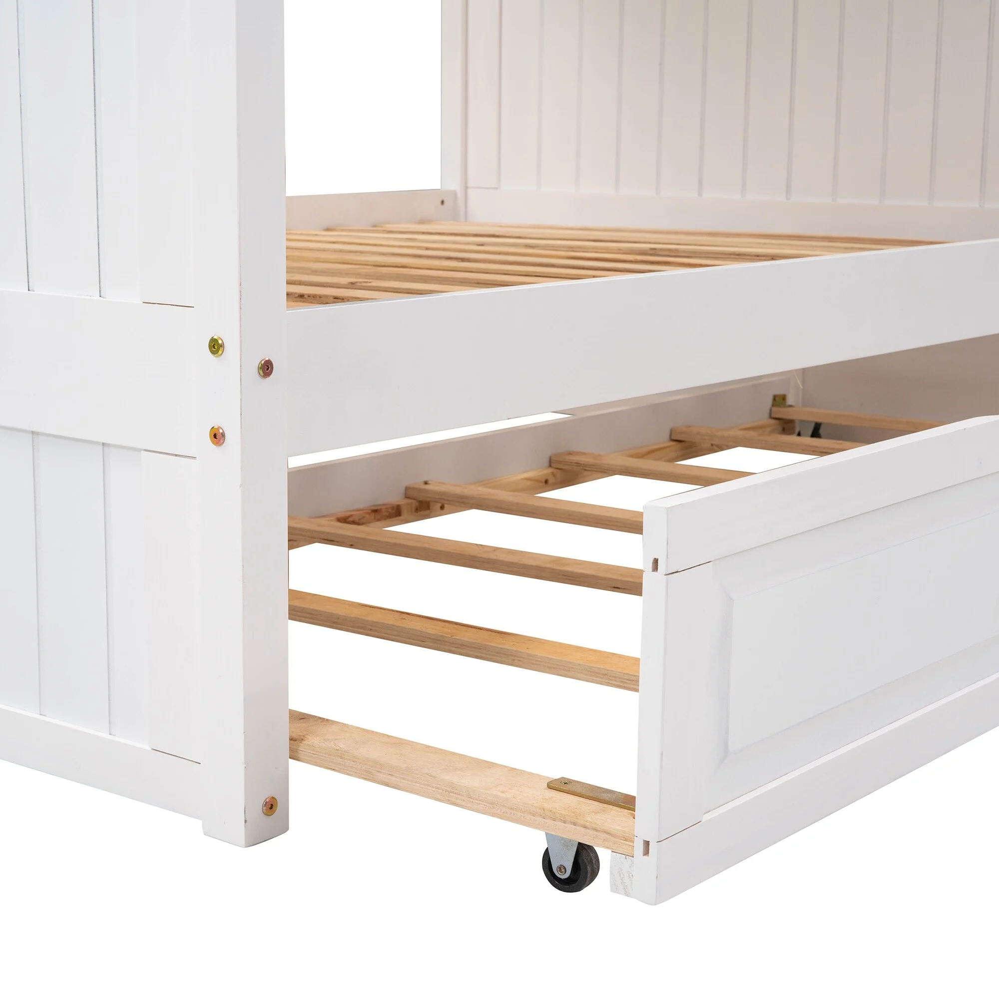 Home Adores Yzel Full Over Full Bunk Bed with Twin Size Trundle White