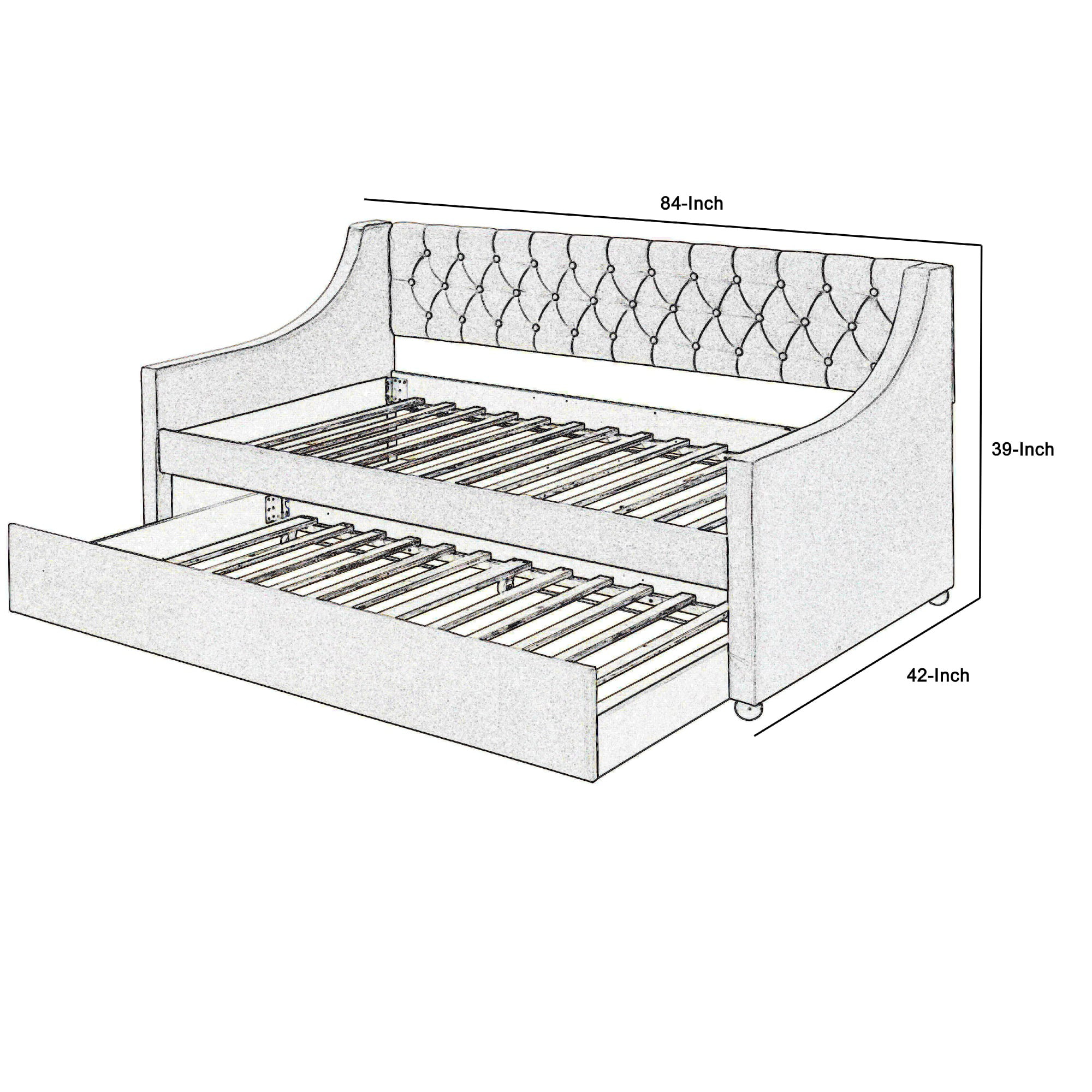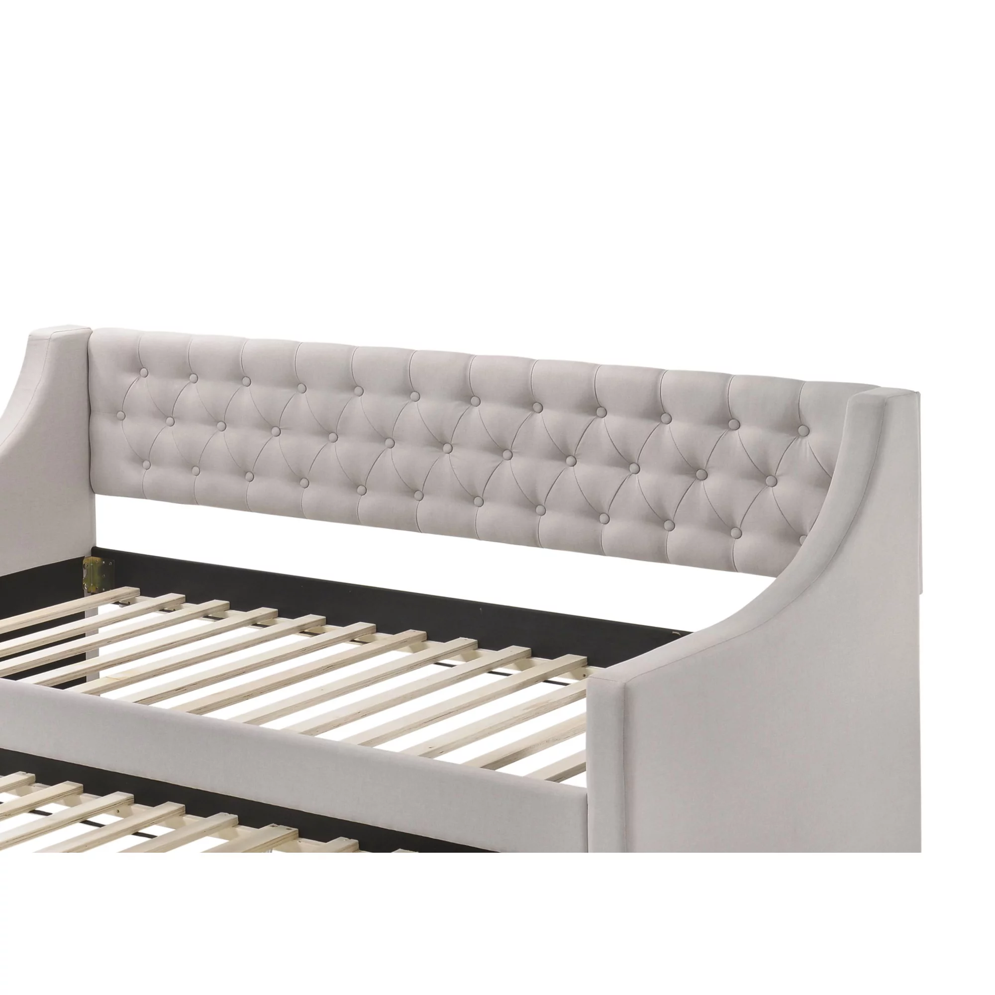 Fabric Twin Size Daybed with Button Tufted Back and Sloped Arms,Light Gray