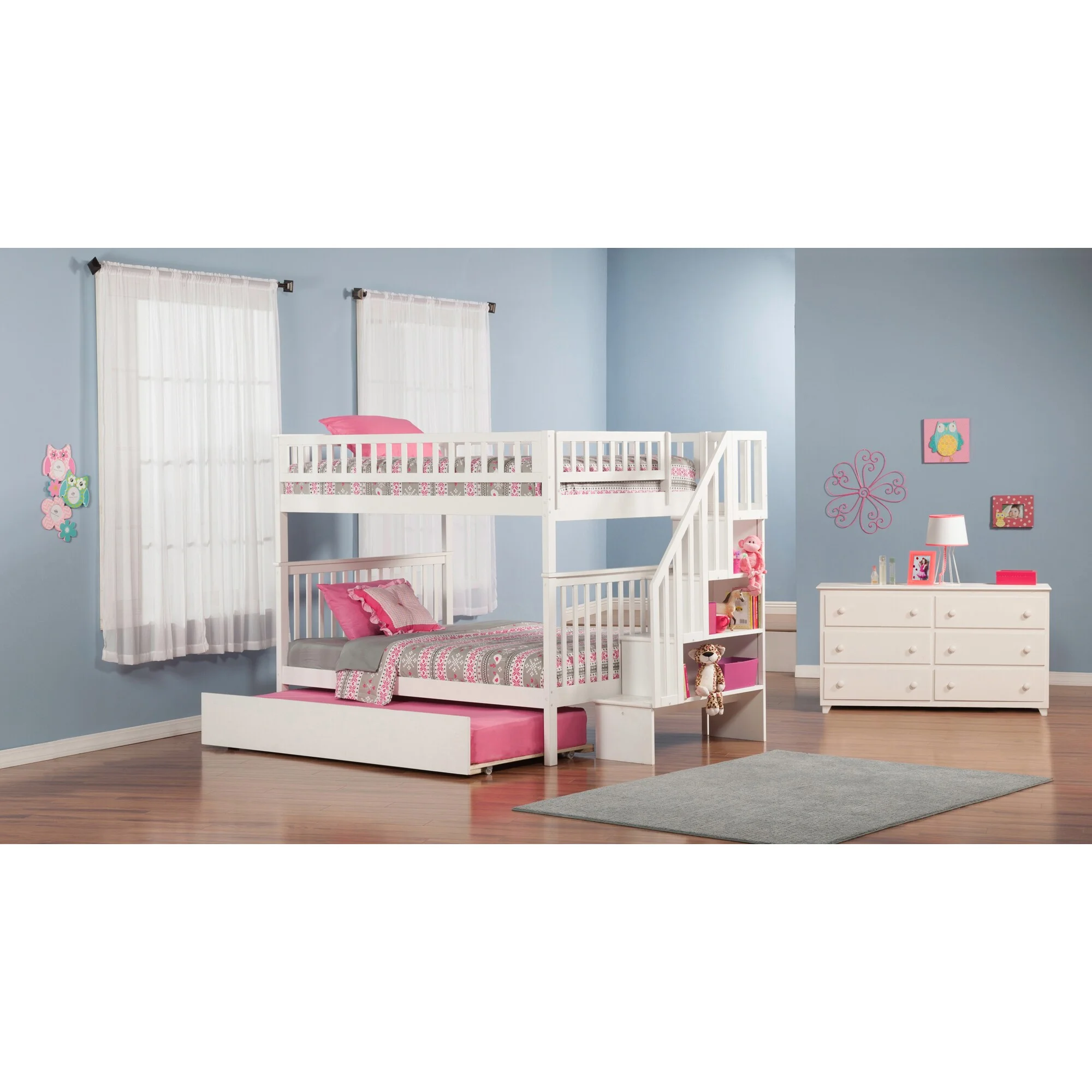 AFI Woodland Staircase Bunk Bed Full over Full with Twin Trundle in White