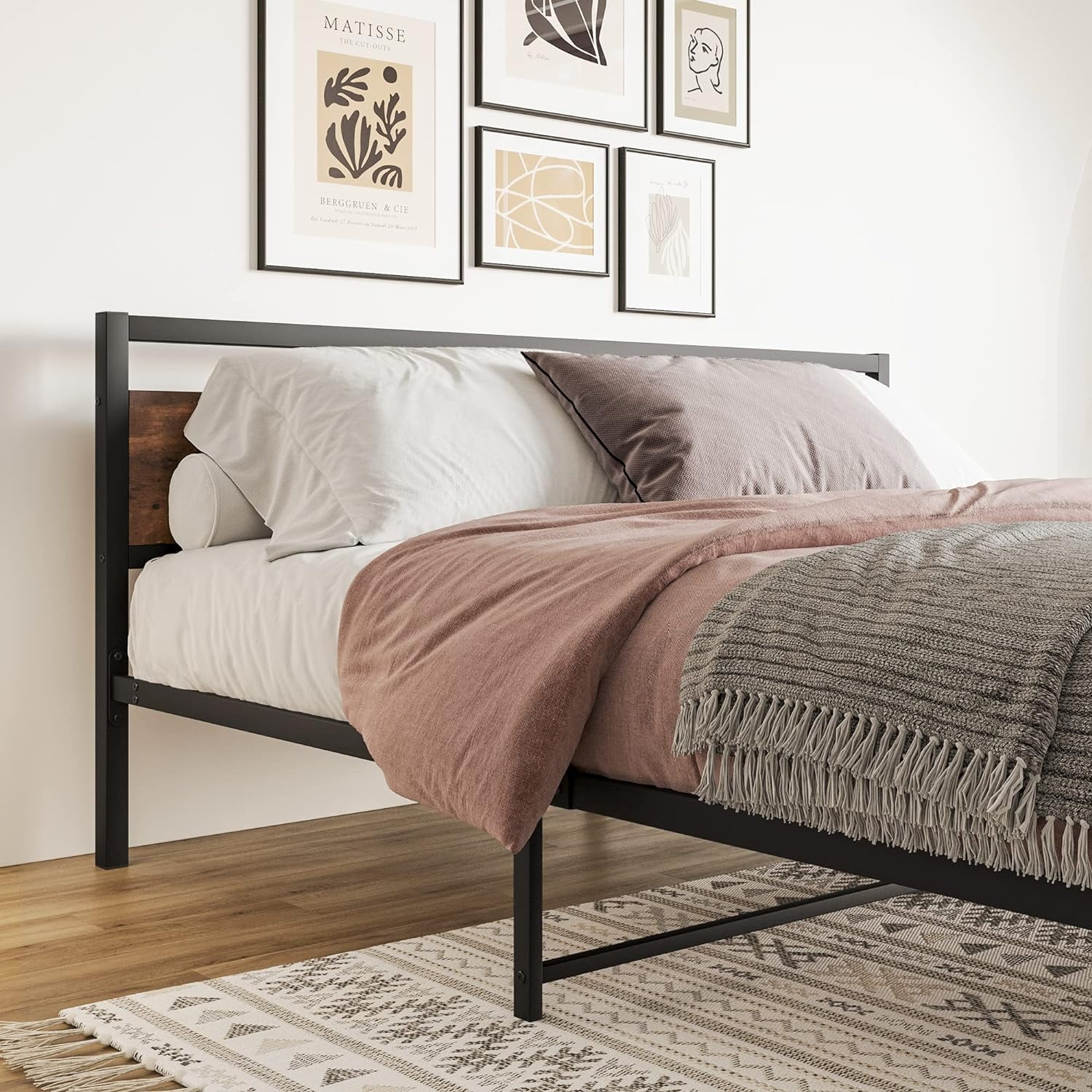 Full Size Platform Bed With Storage Drawer, Wooden Bed Frame With Headboard (White, Twin)