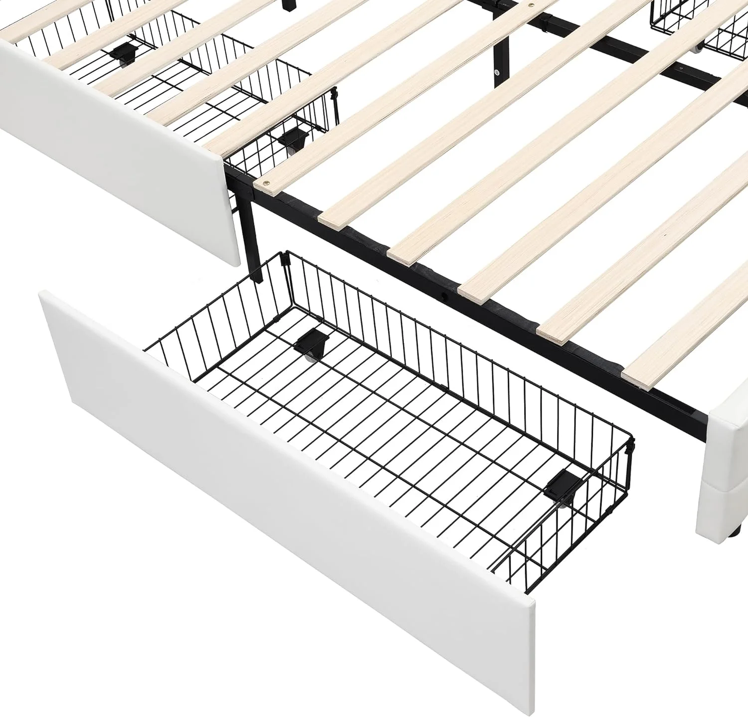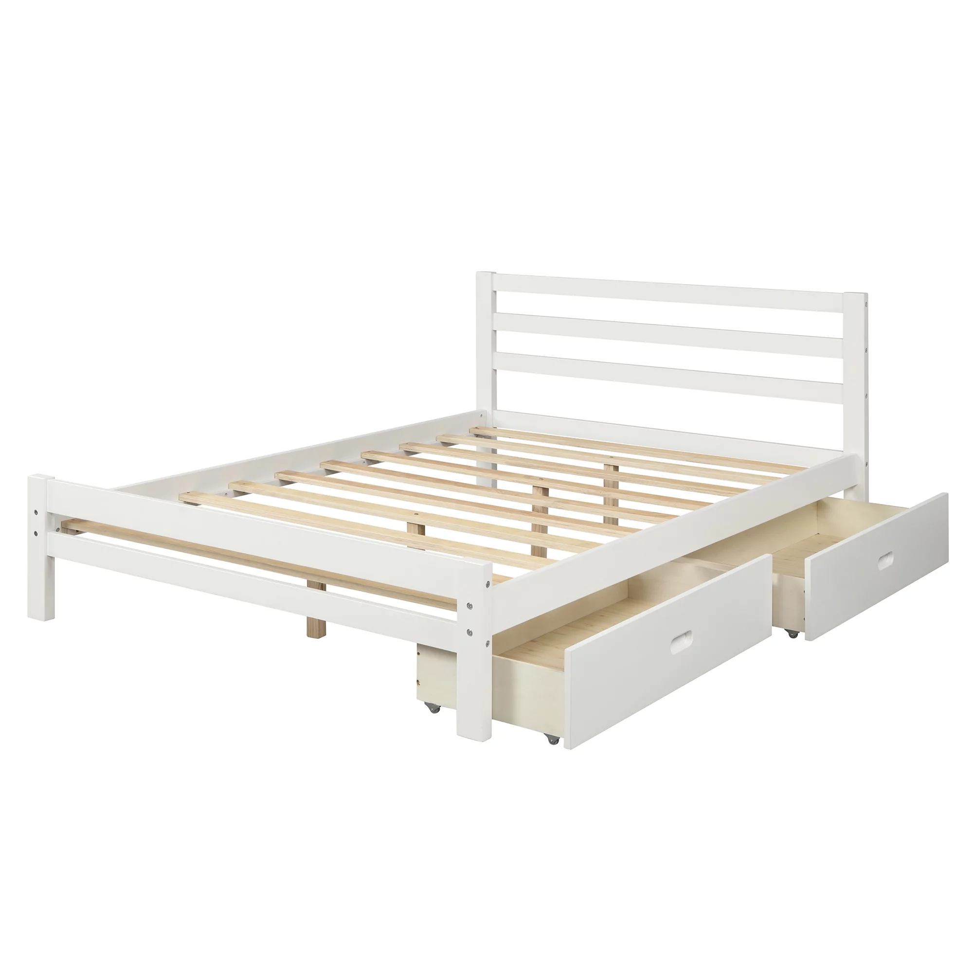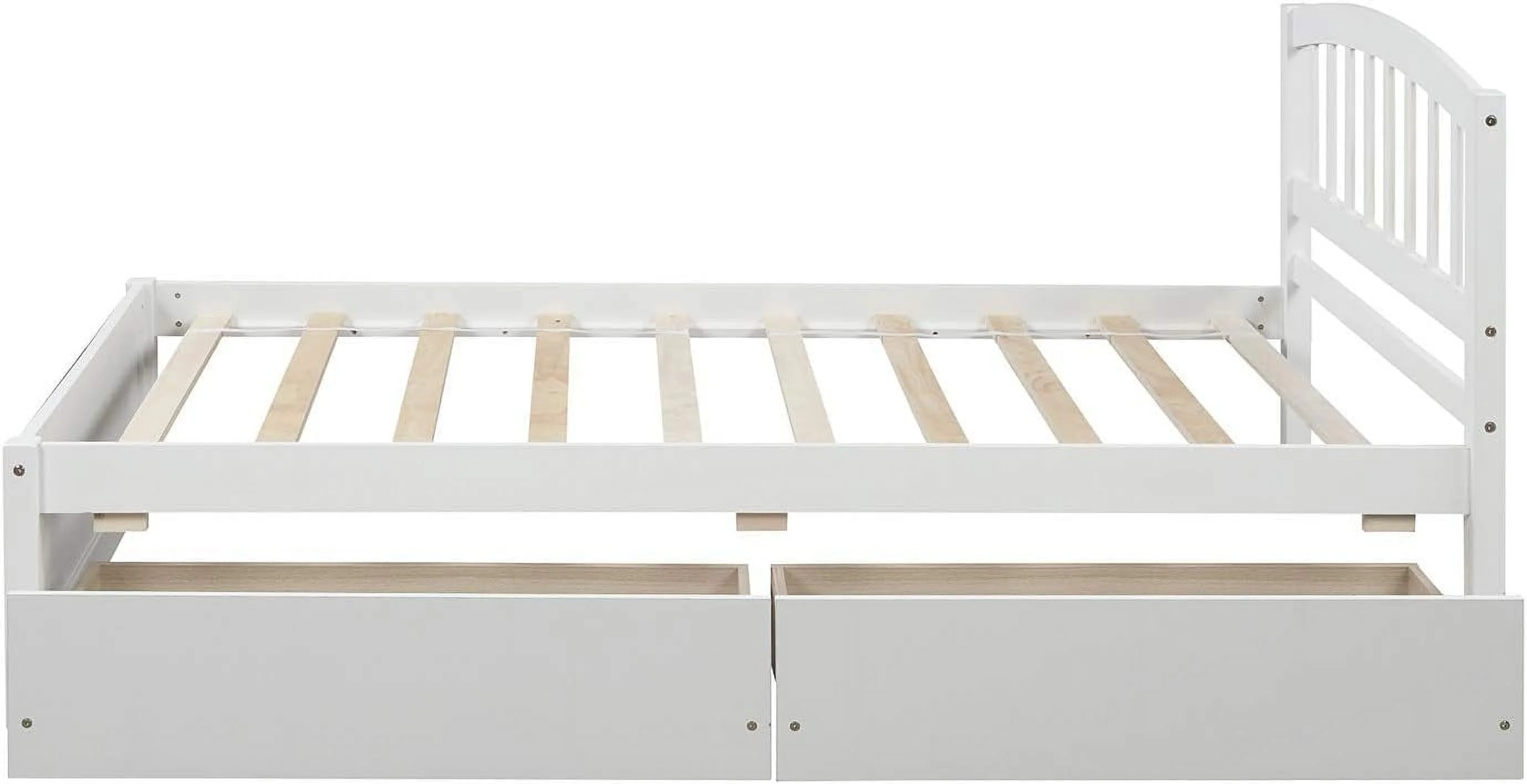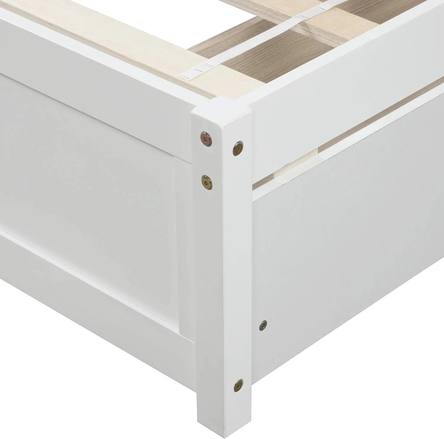 Platform Storage Bed Wood Bed Frame With Two Drawers And Headboard, White