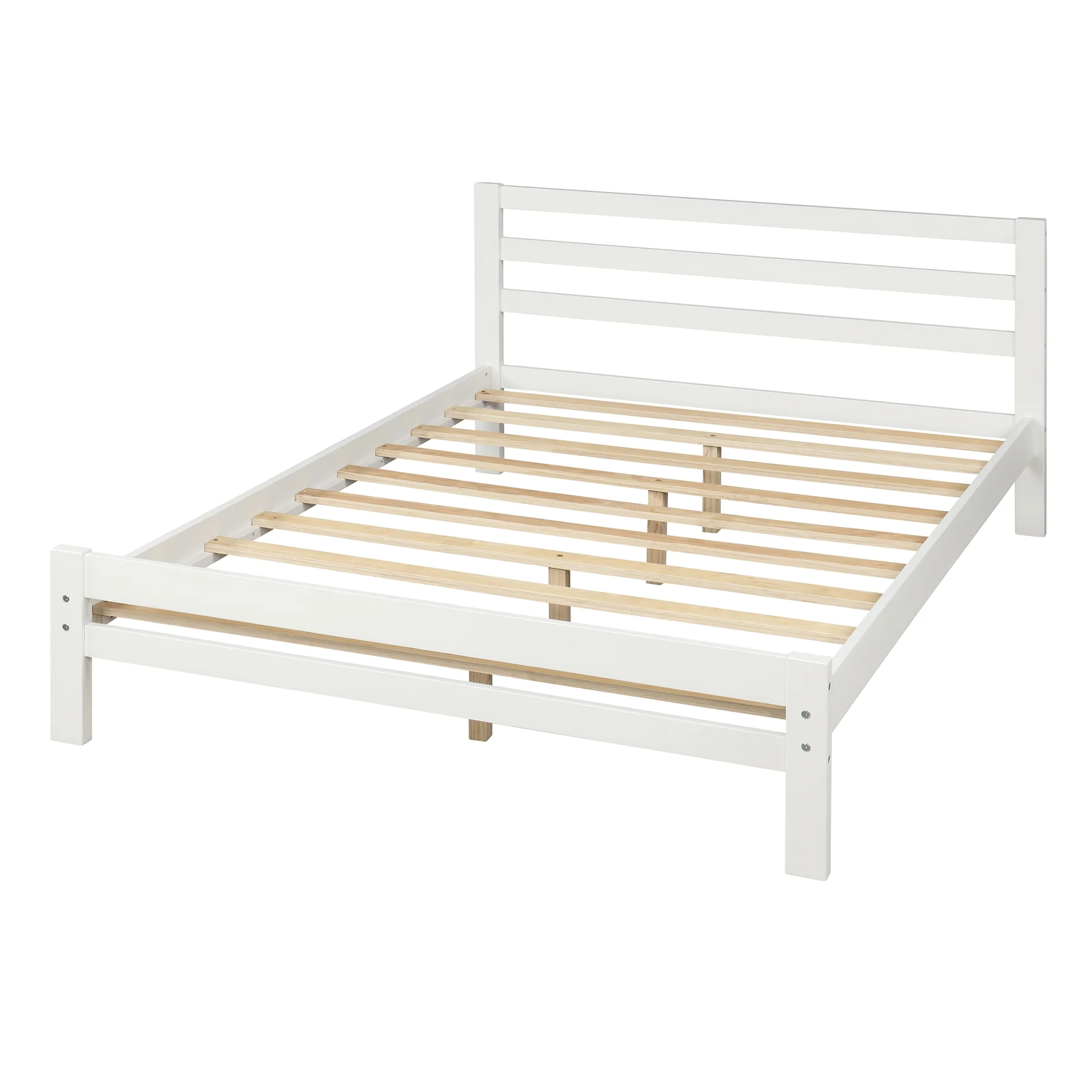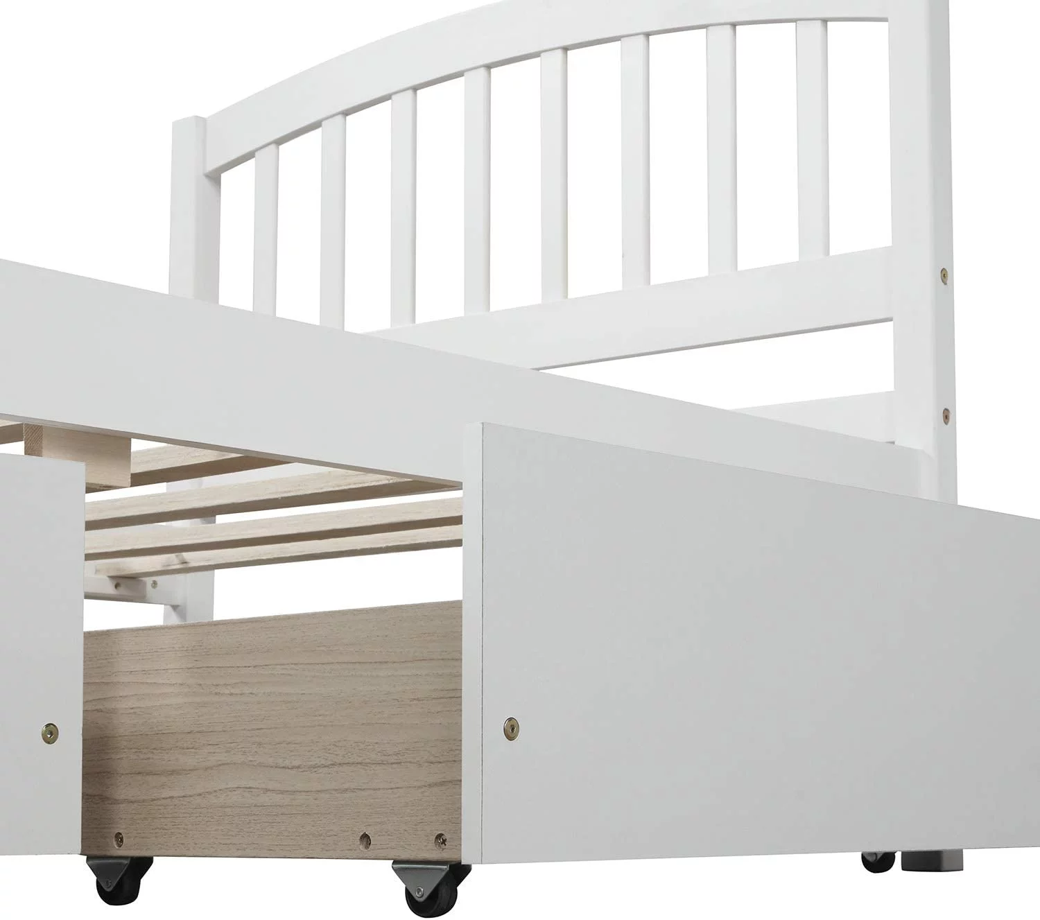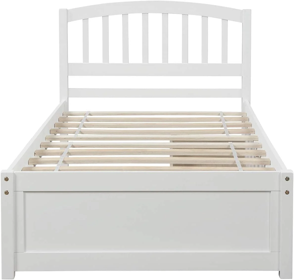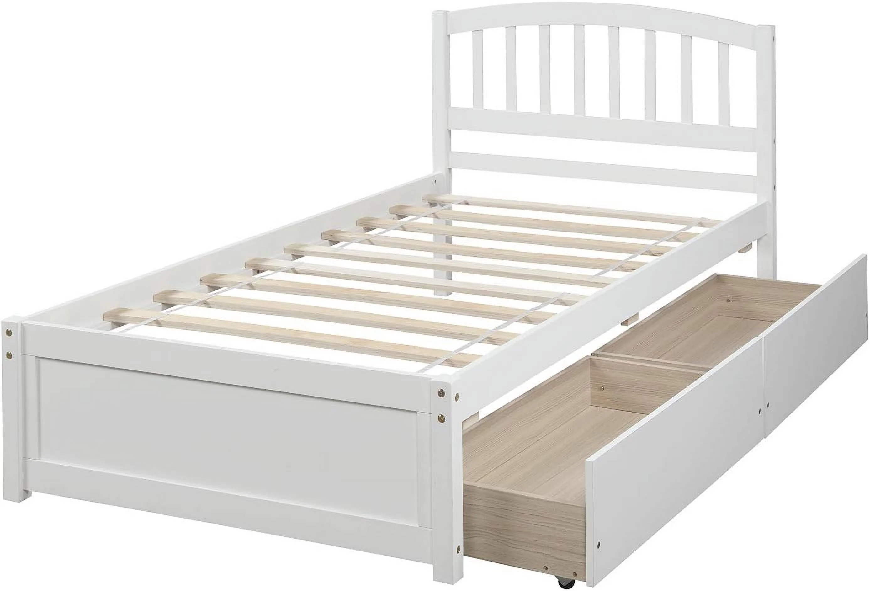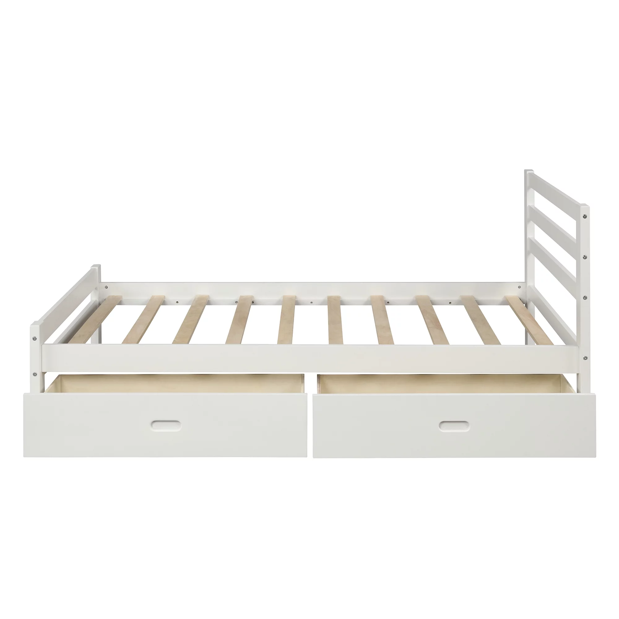 Platform Storage Bed Wood Bed Frame With Two Drawers And Headboard, White