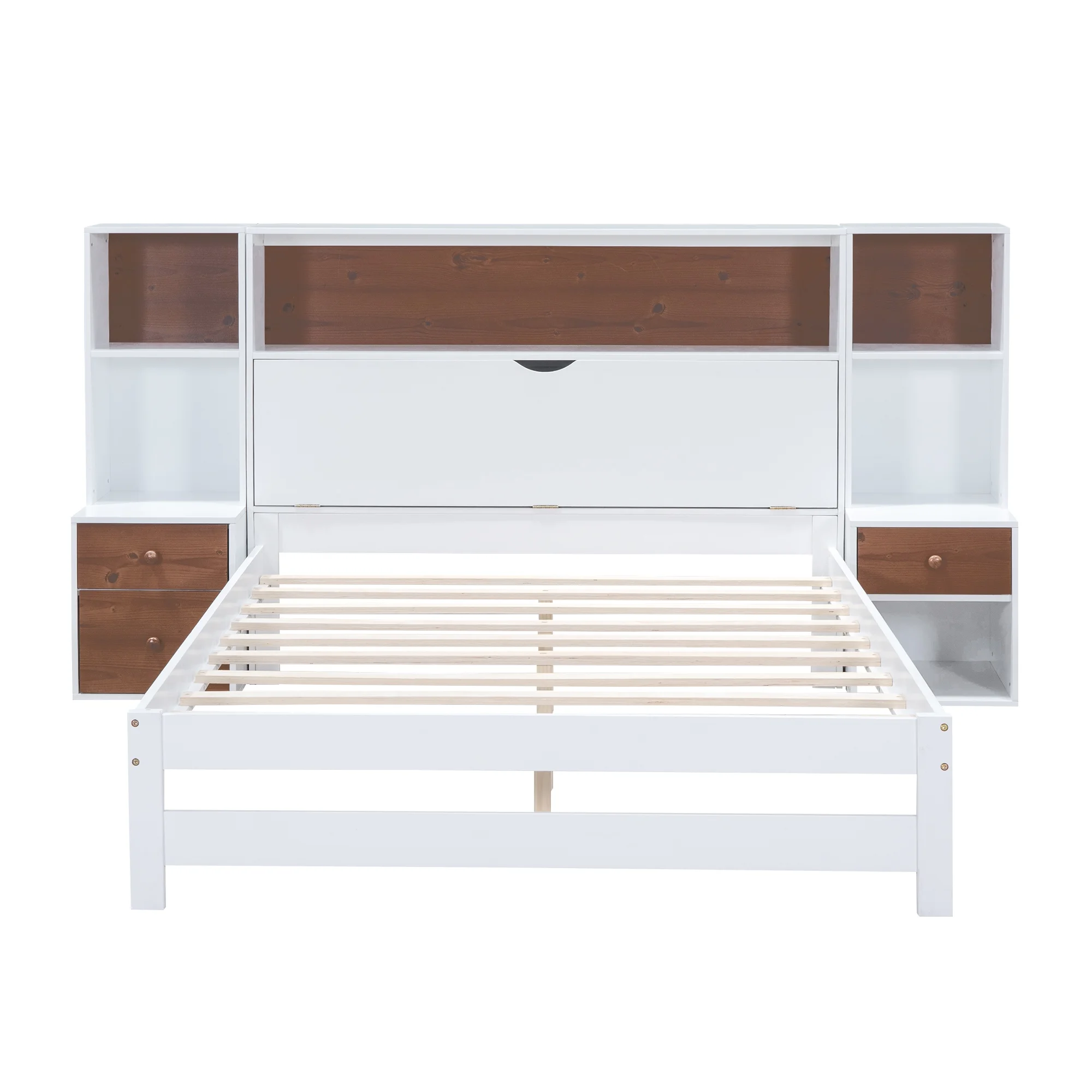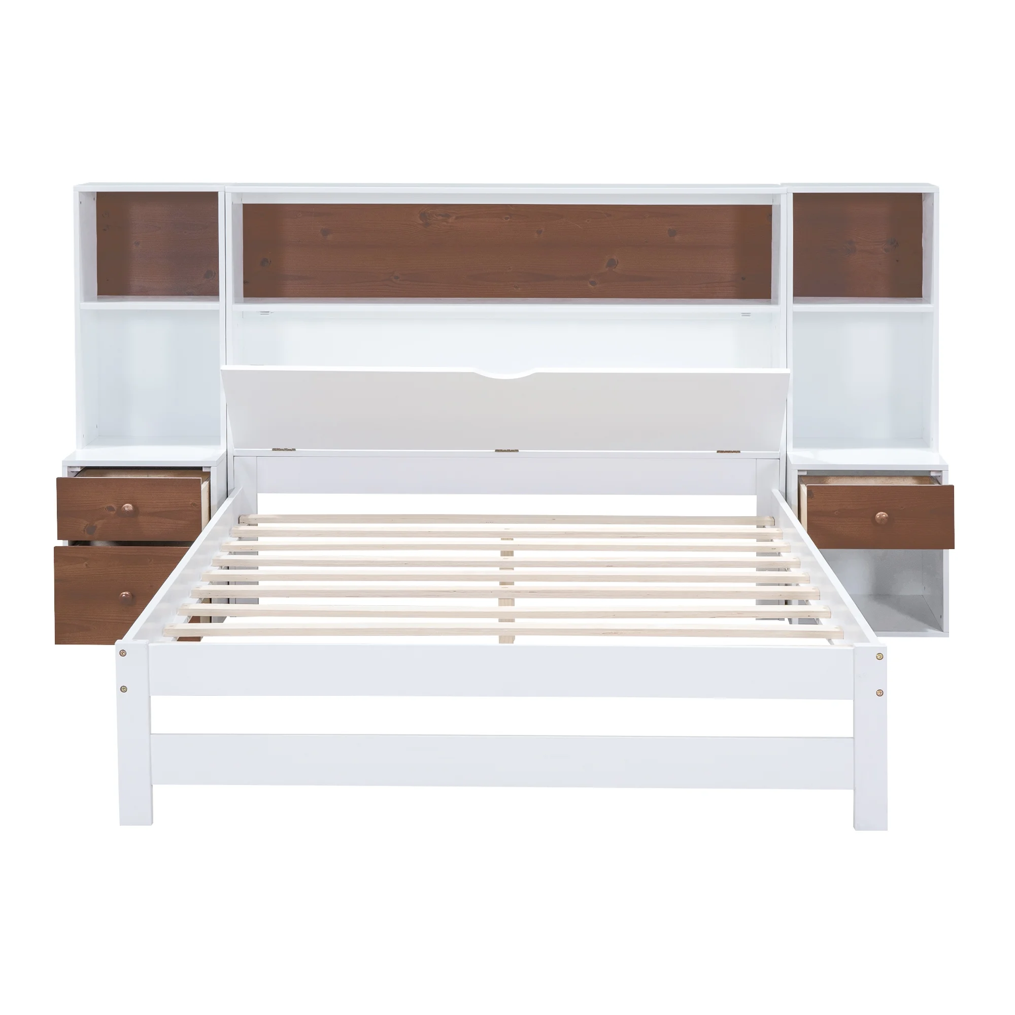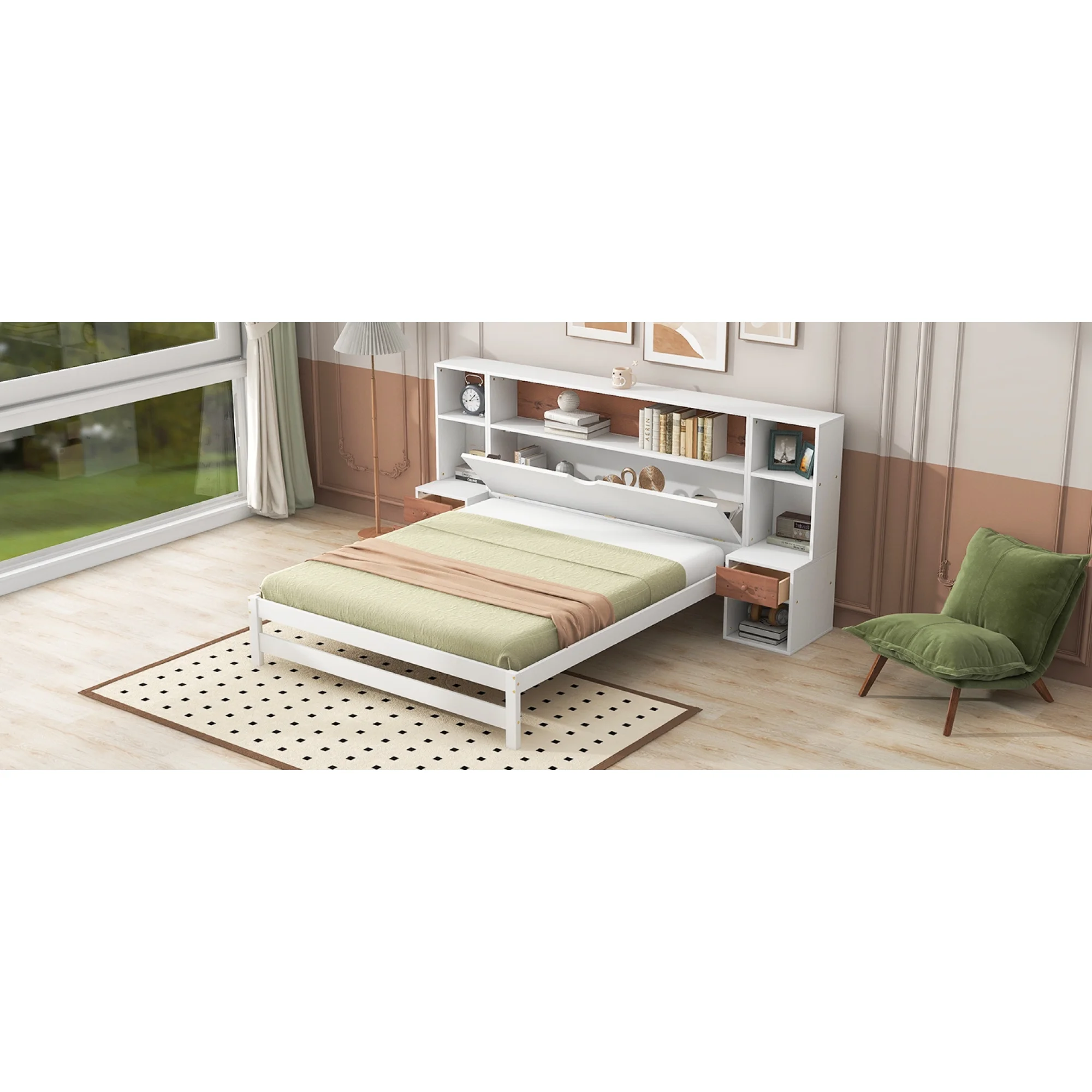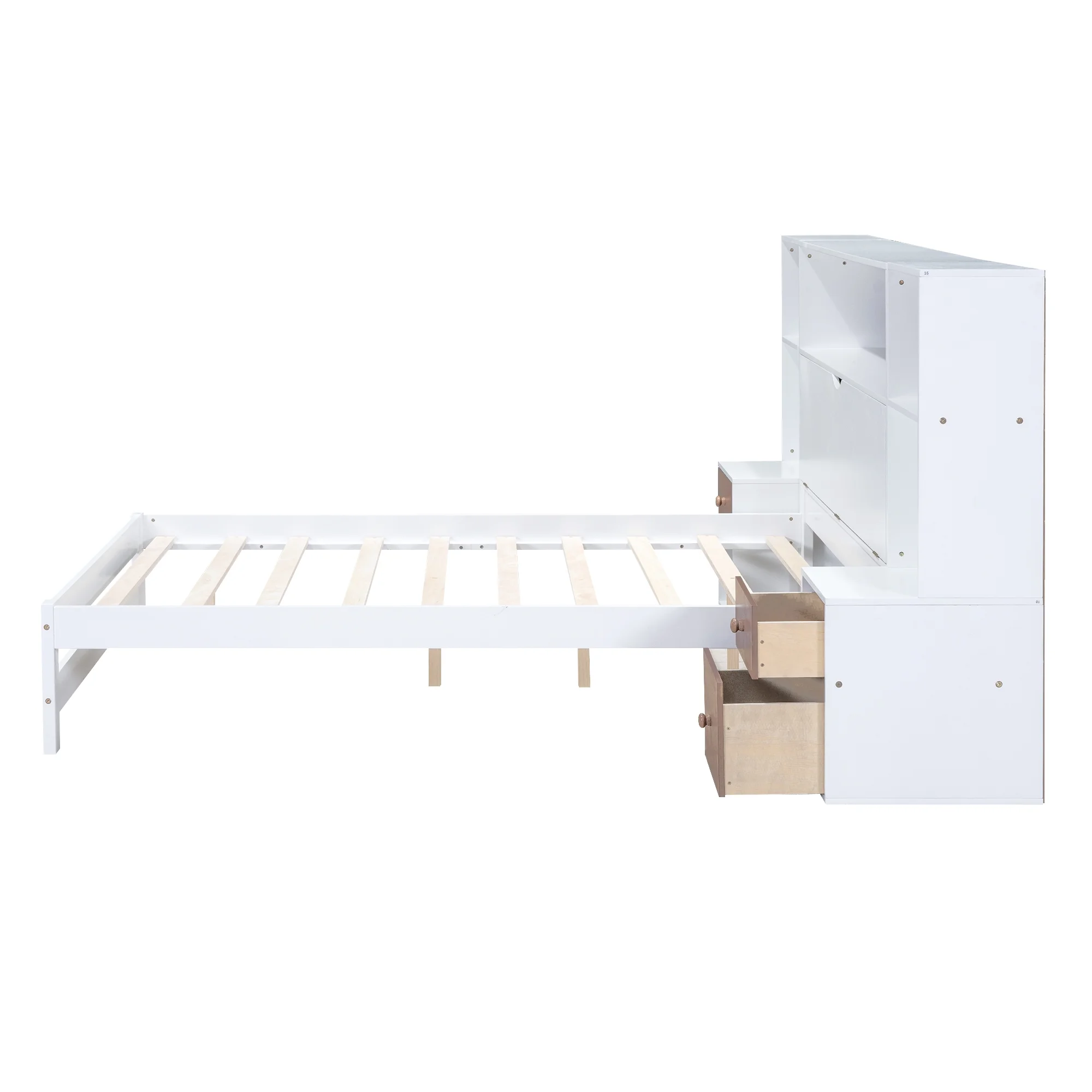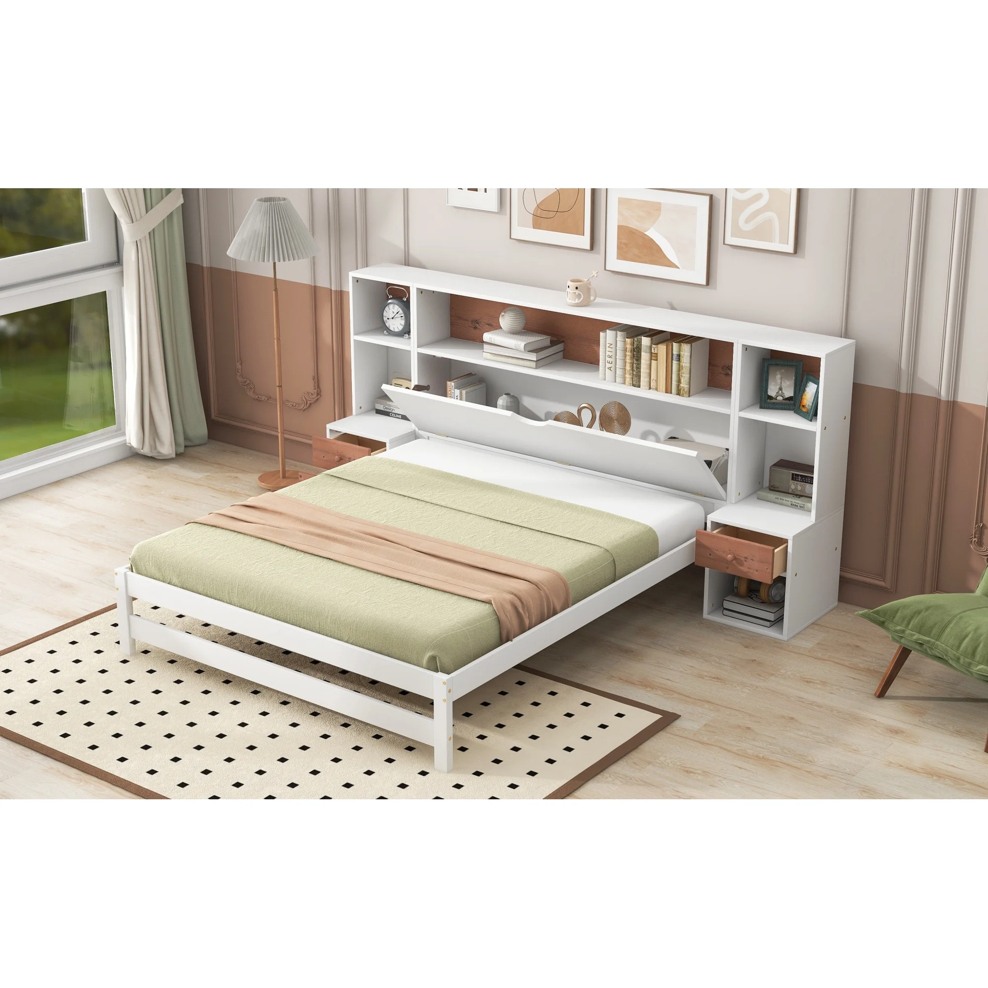 Dawn Whisper Full Size Platform Bed with Storage Headboard and Drawers, White