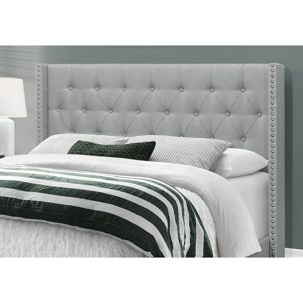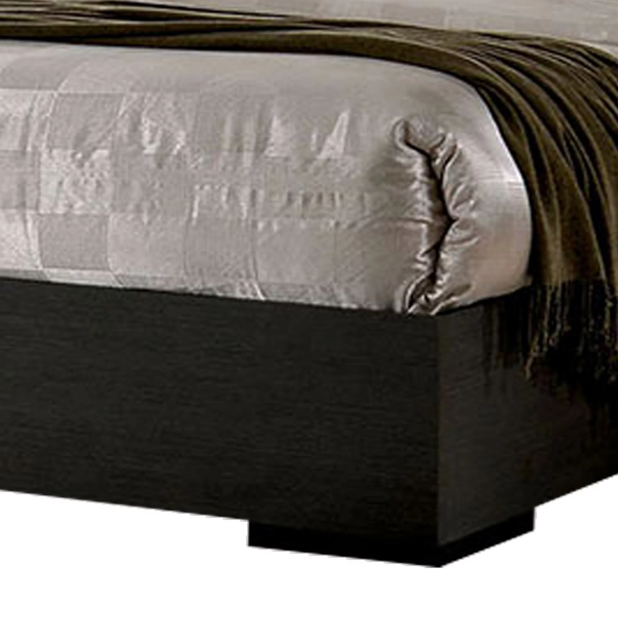 Benjara BM217466 Transitional Wooden Platform Bed with Chrome Trim Accents, Gray - Queen Size