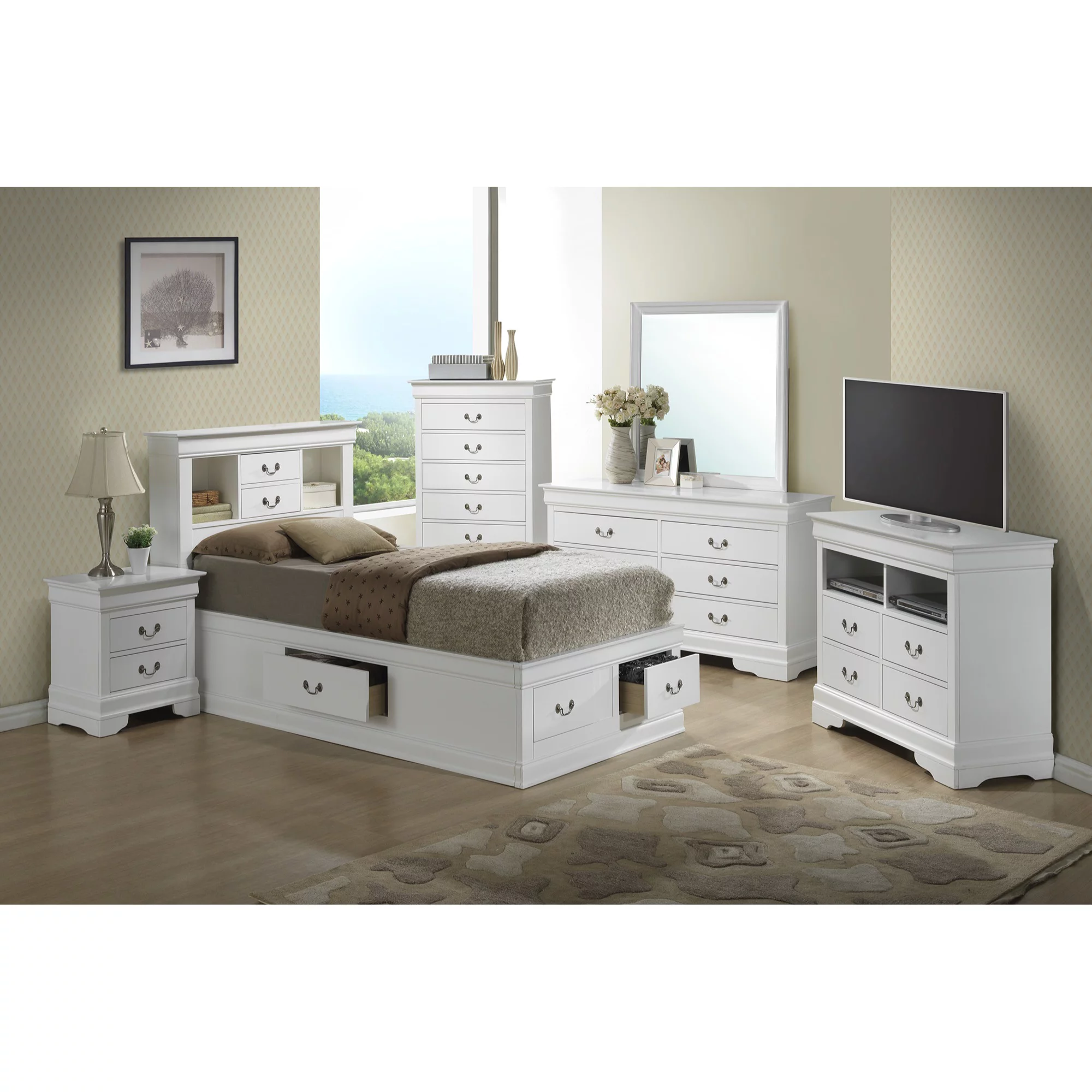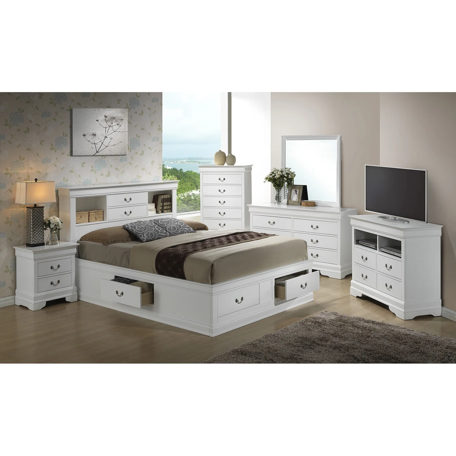 Passion Furniture Louis Philippe White Full Storage Platform Bed with 6 Storage Drawers