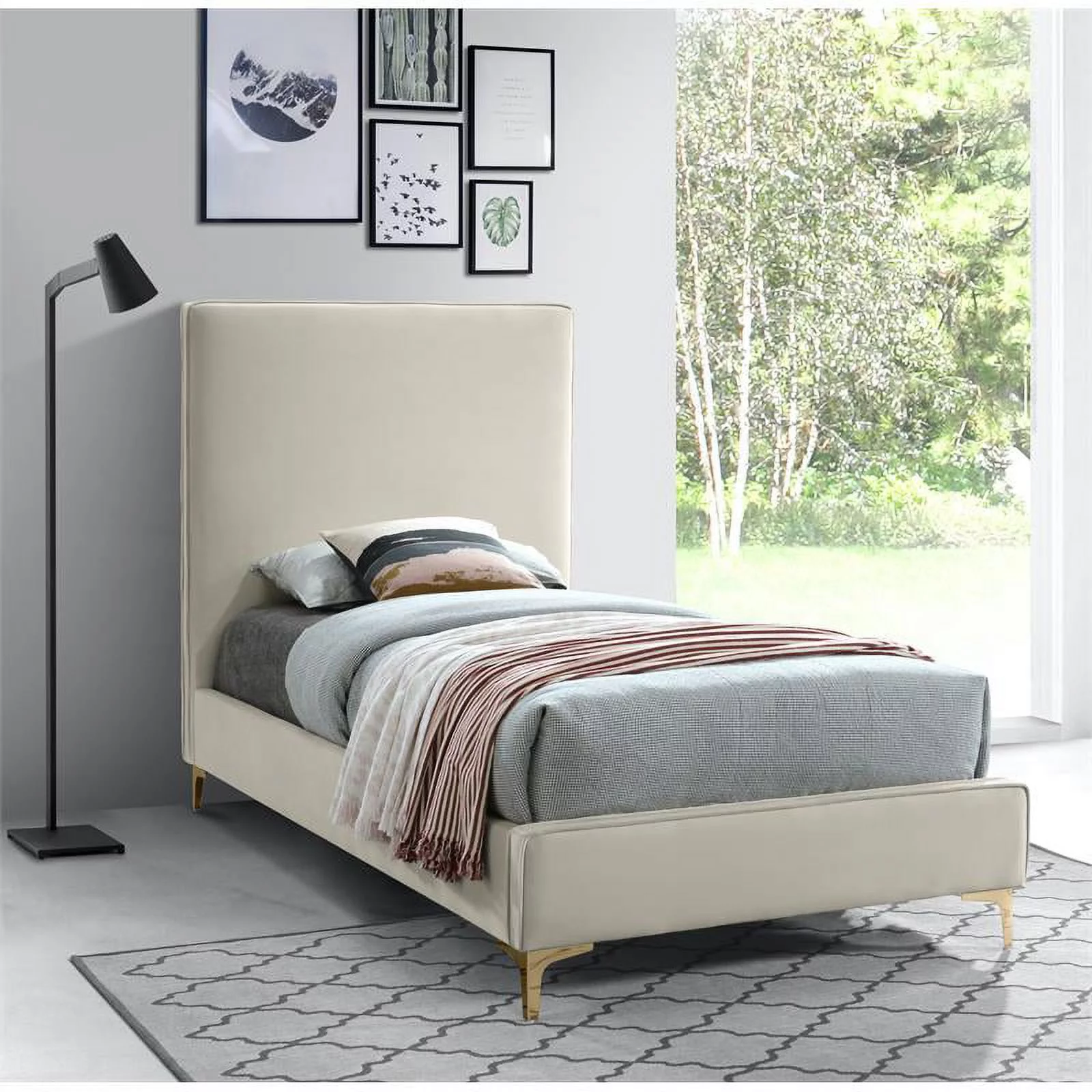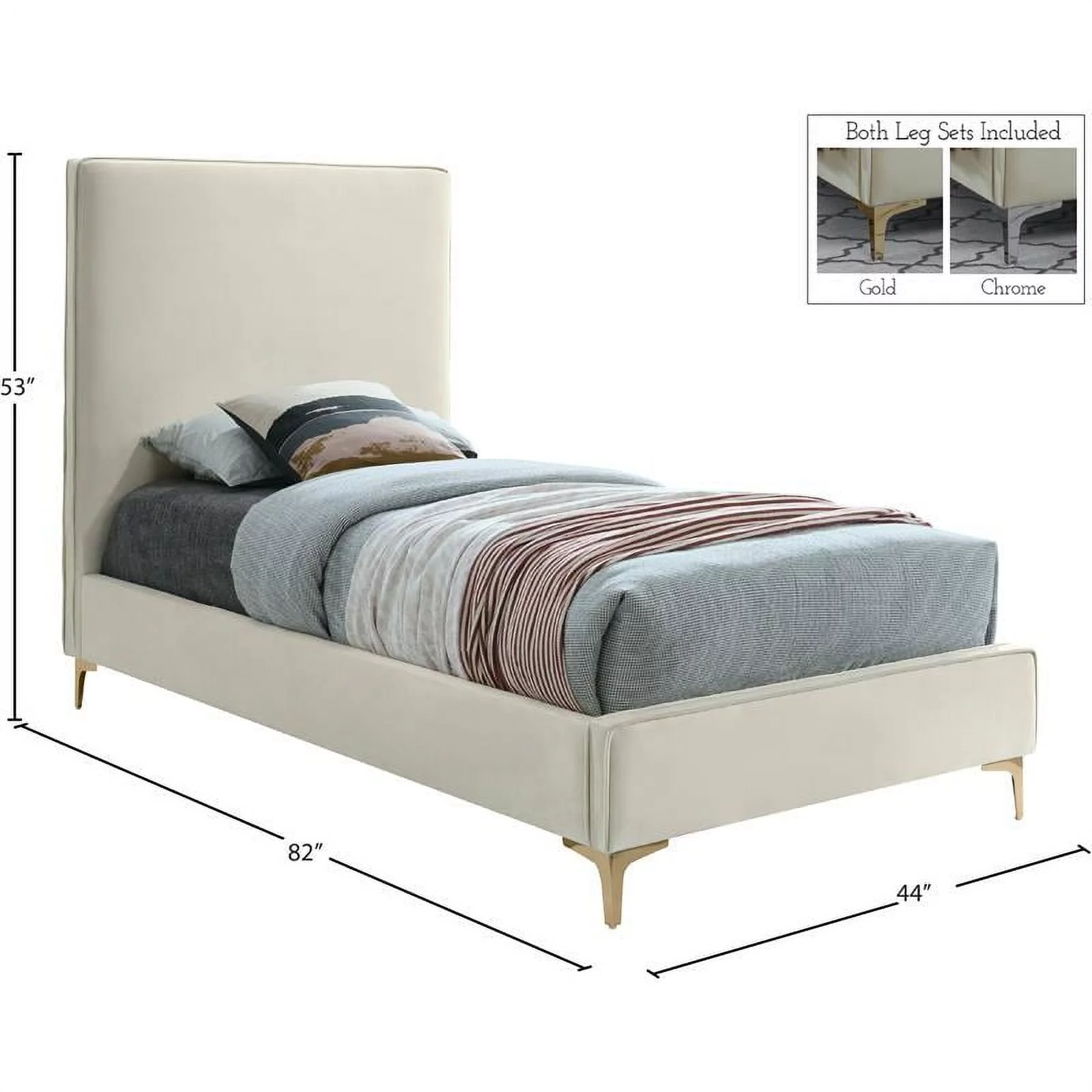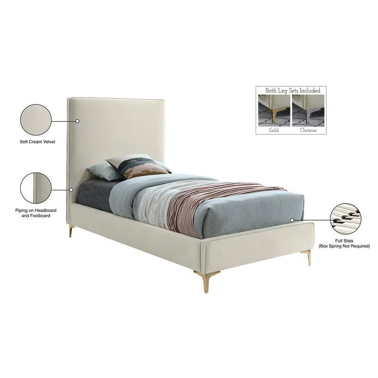Maklaine Contemporary Cream Velvet Twin Bed with Gold and Chrome Legs Included