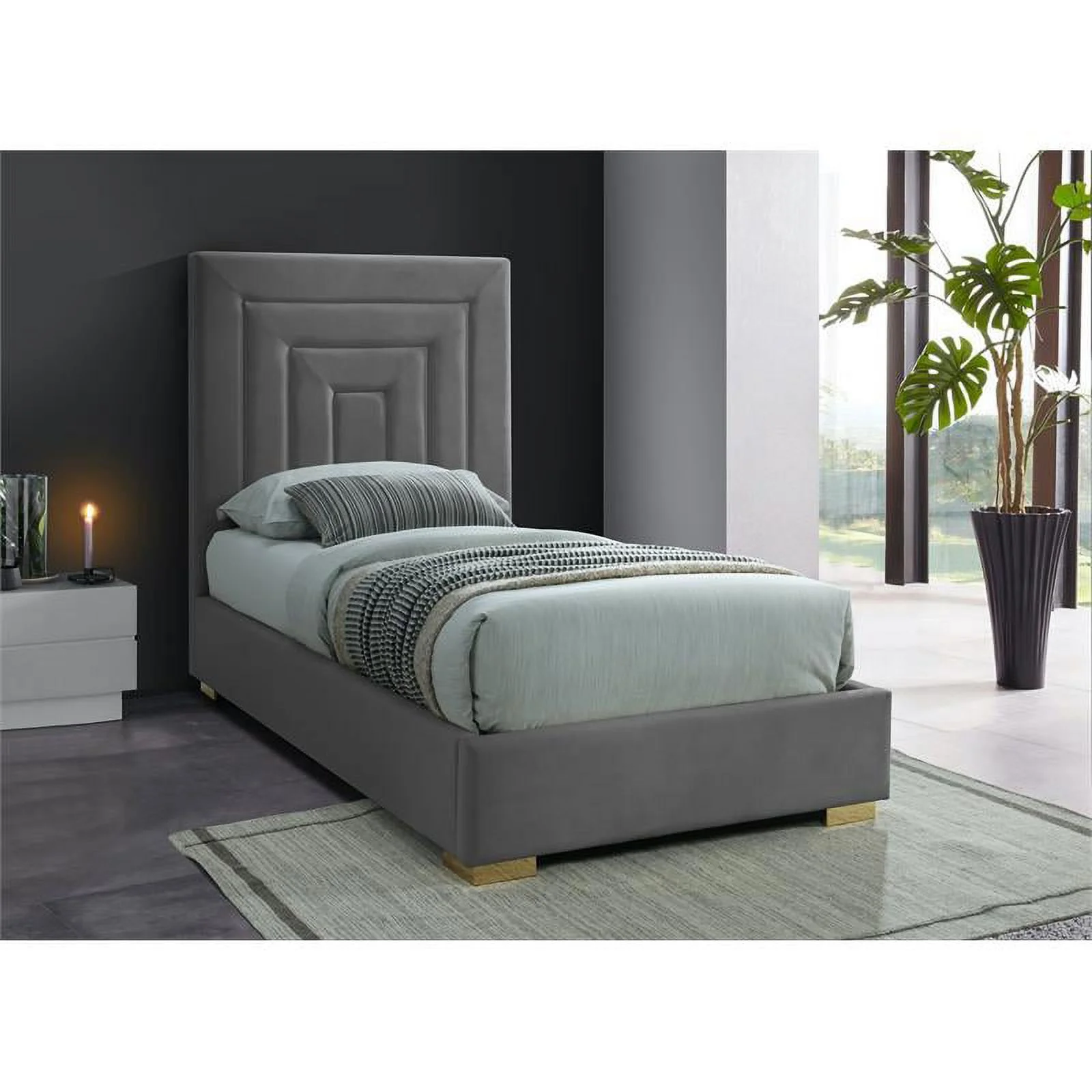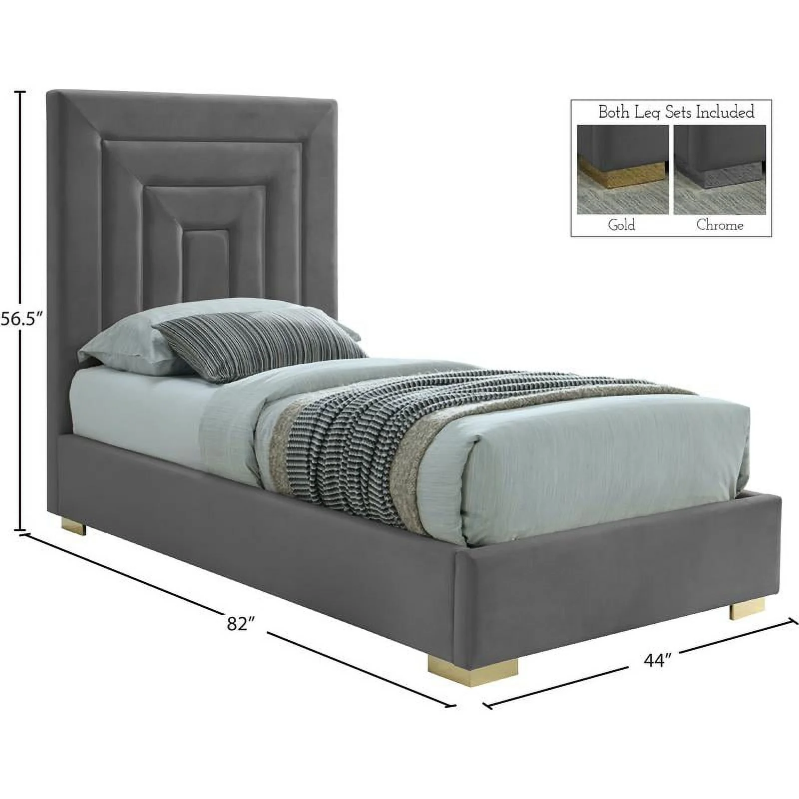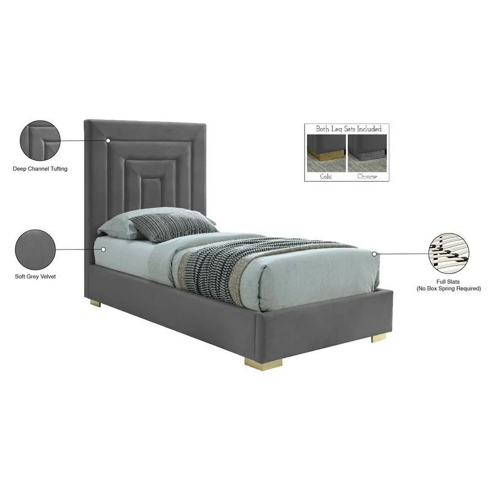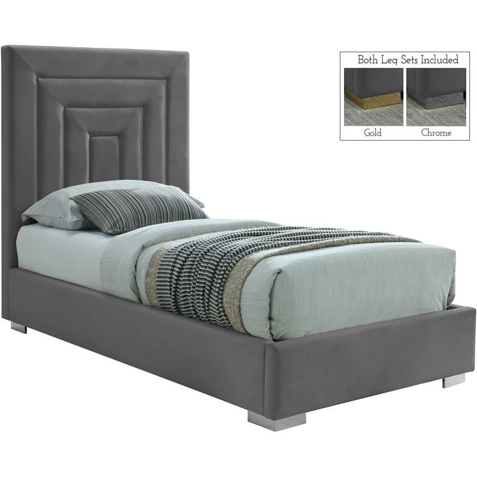Maklaine Contemporary Gray Velvet Twin Bed with Gold/Chrome Legs Included