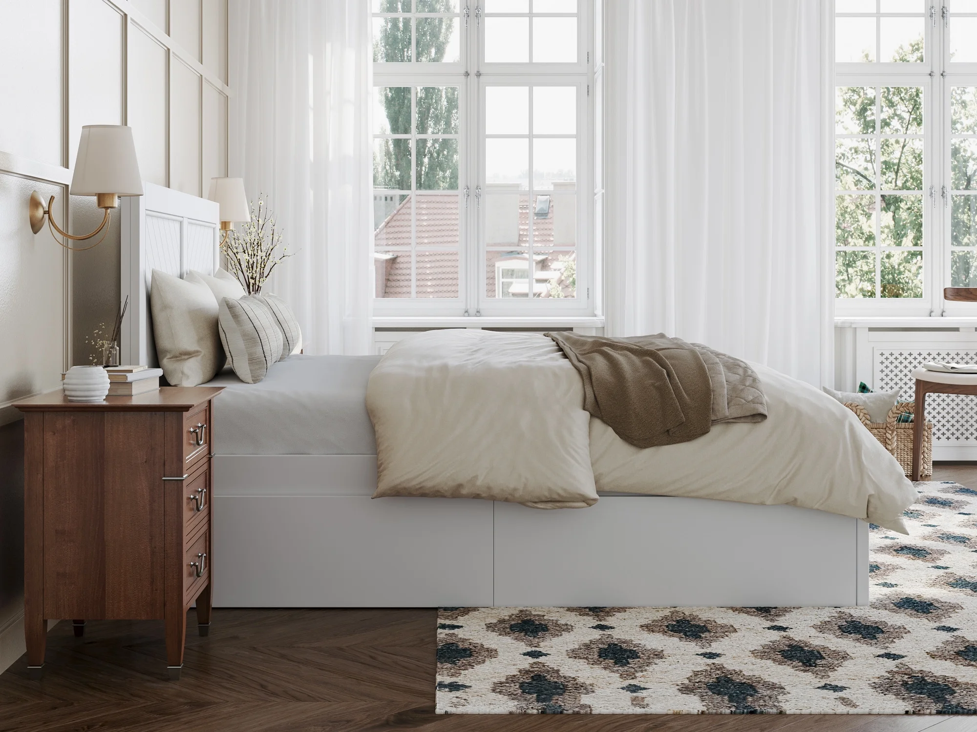 AFI Canyon White Solid Wood Platform Bed with Matching Footboard & Storage Drawers, Full