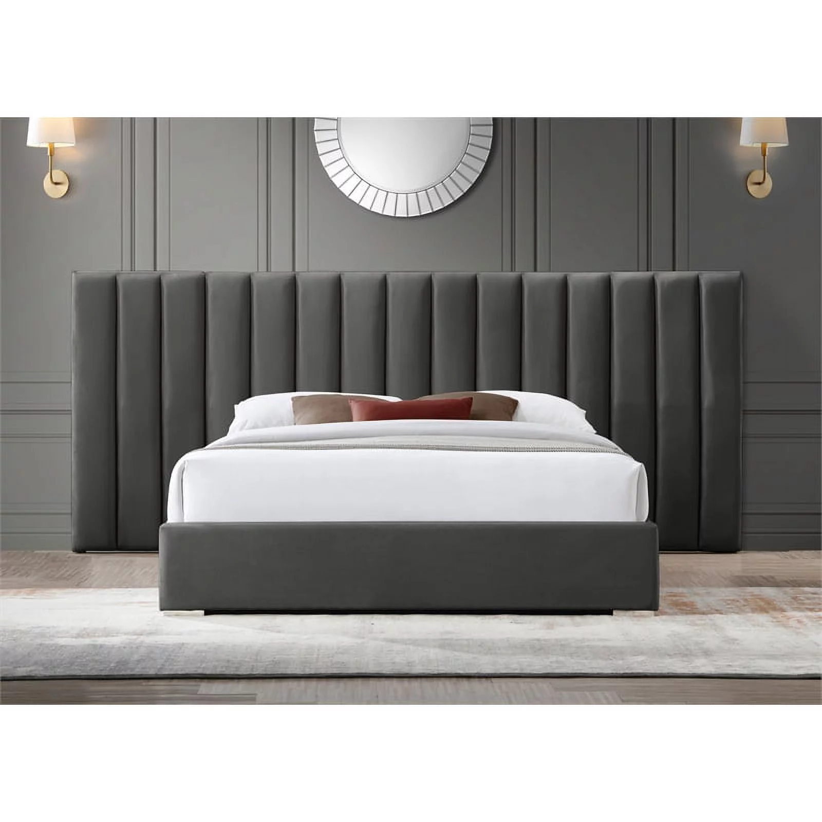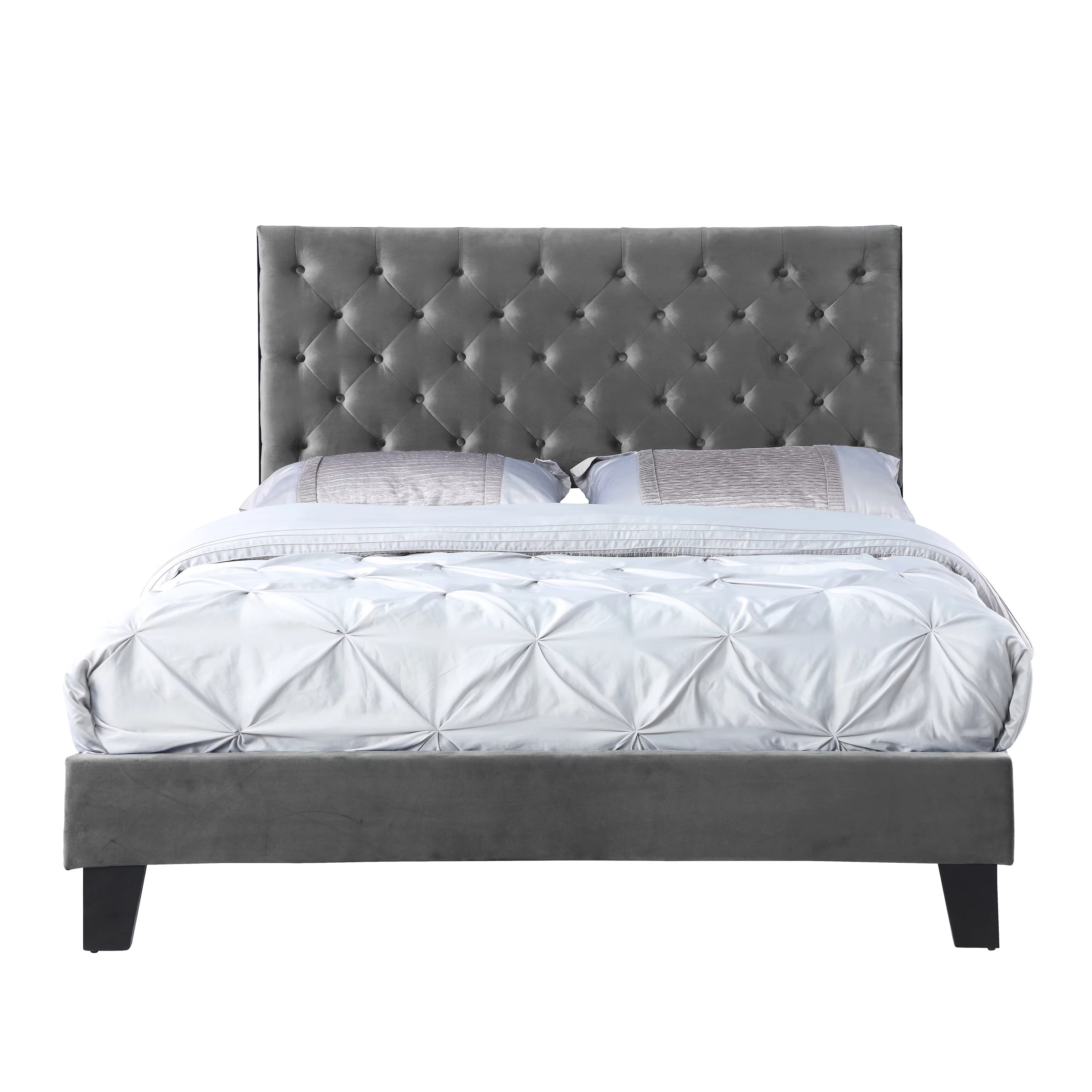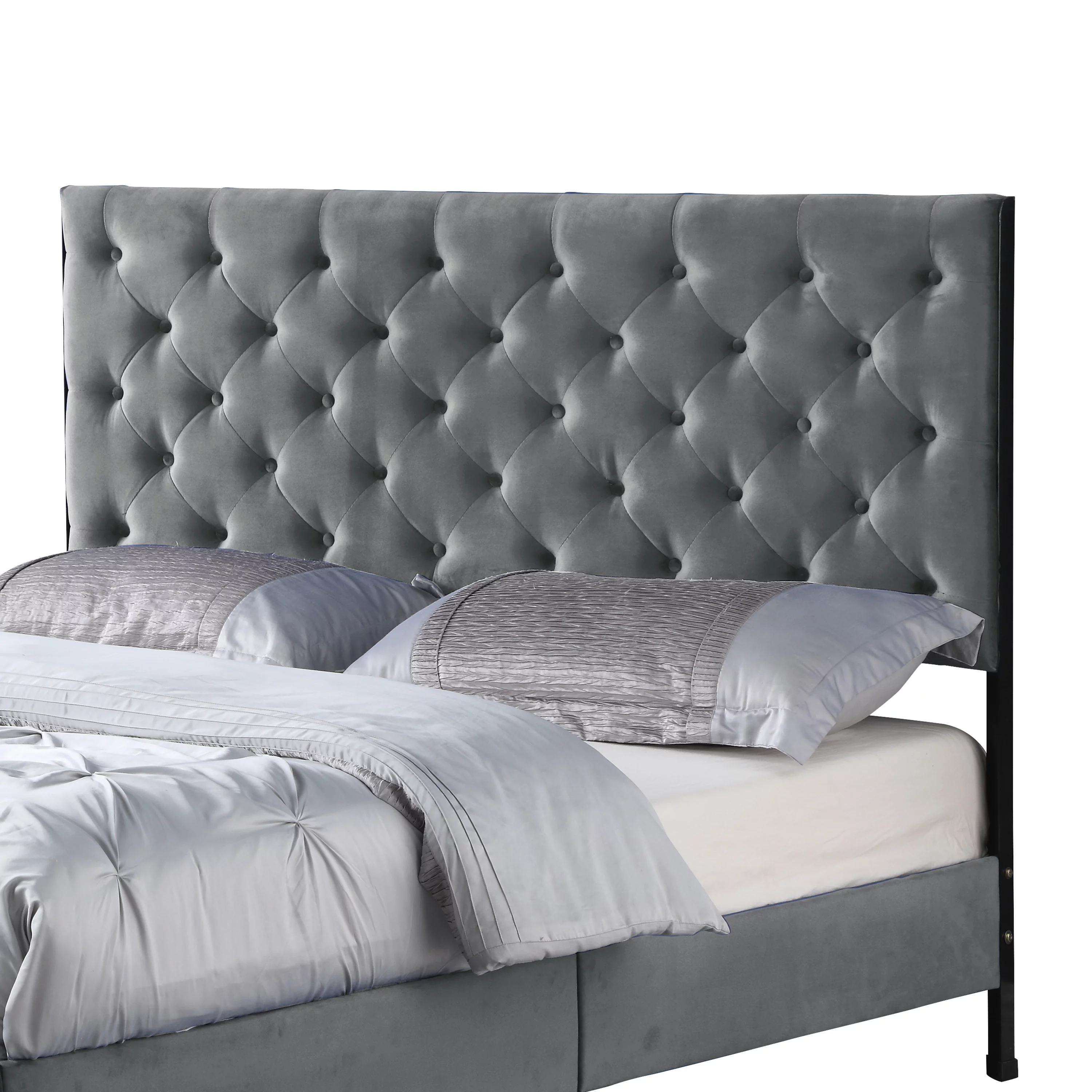 56.5 in. Foam, MDF, Solid Wood, Velvet Queen Size Bed with a Chrome Trim