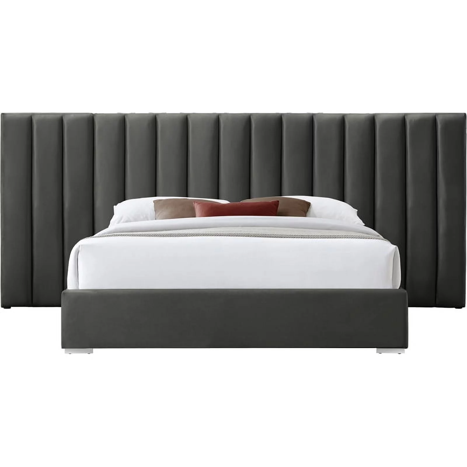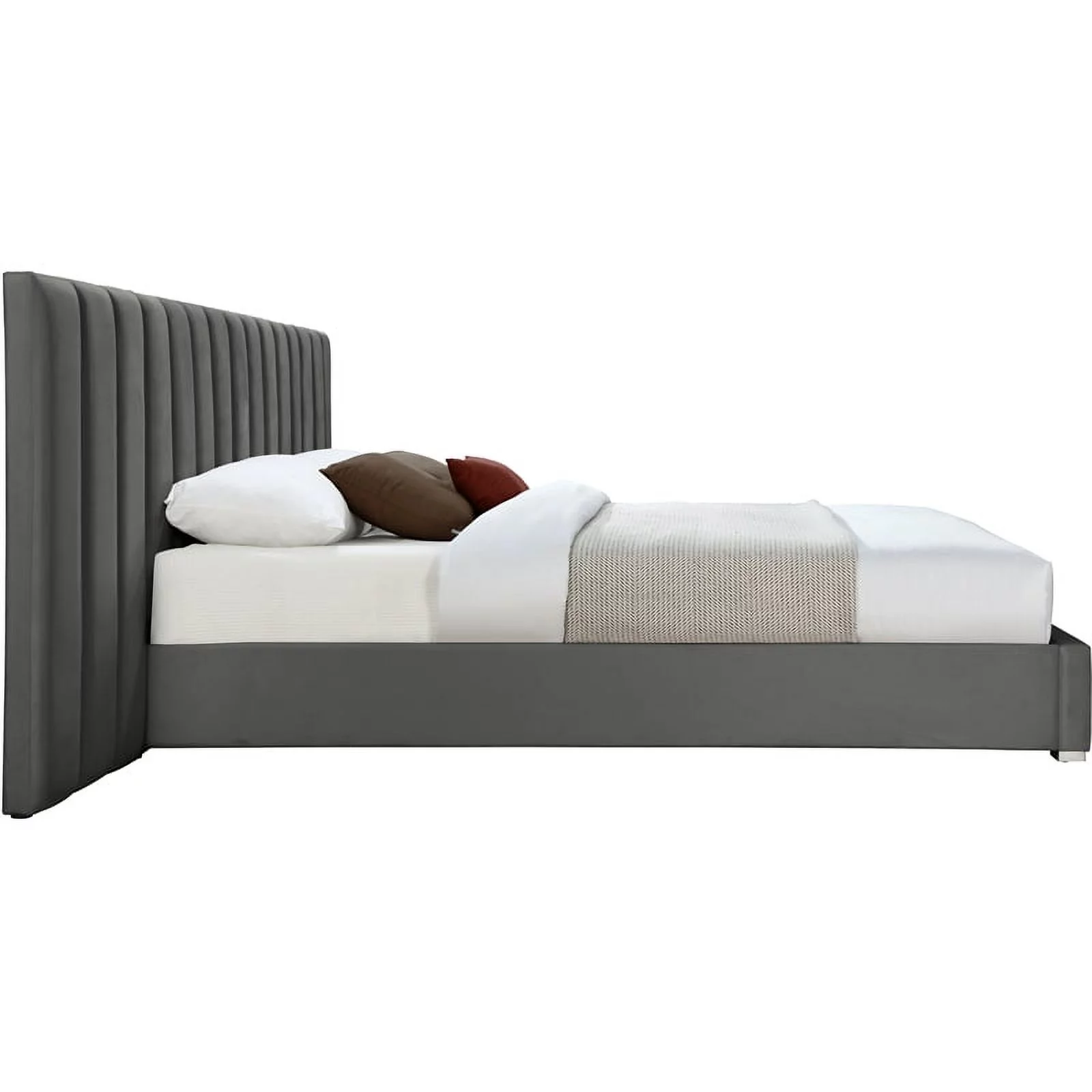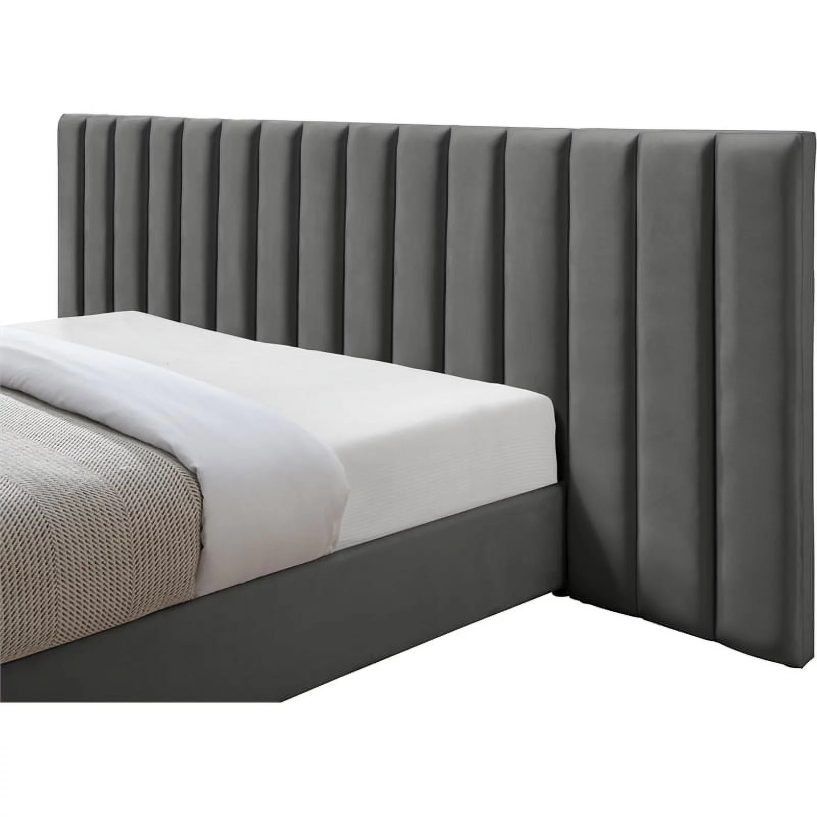 56.5 in. Foam, MDF, Solid Wood, Velvet Queen Size Bed with a Chrome Trim