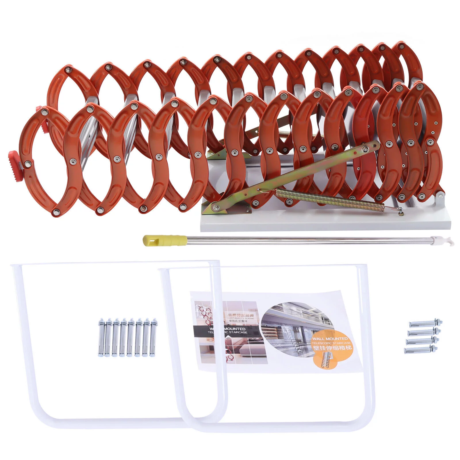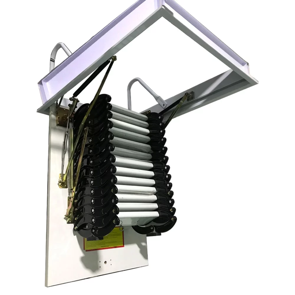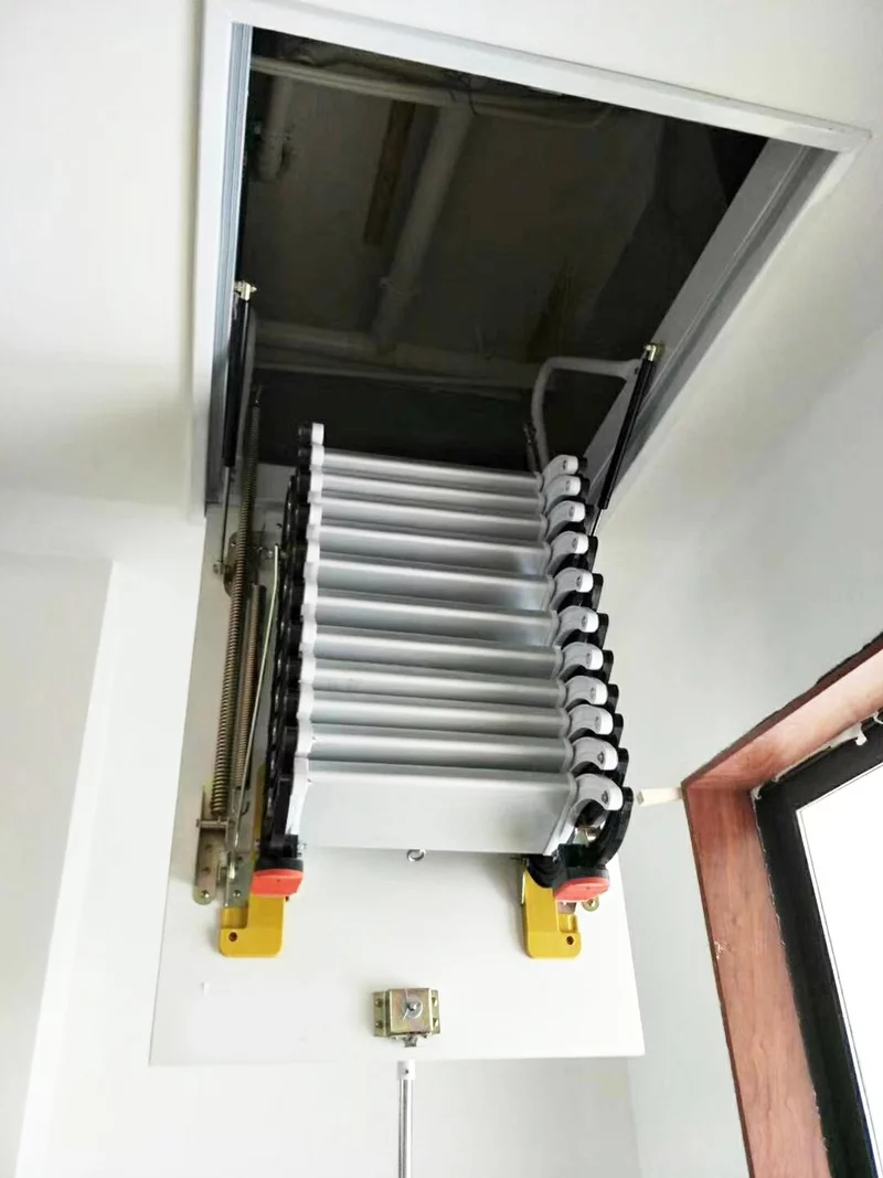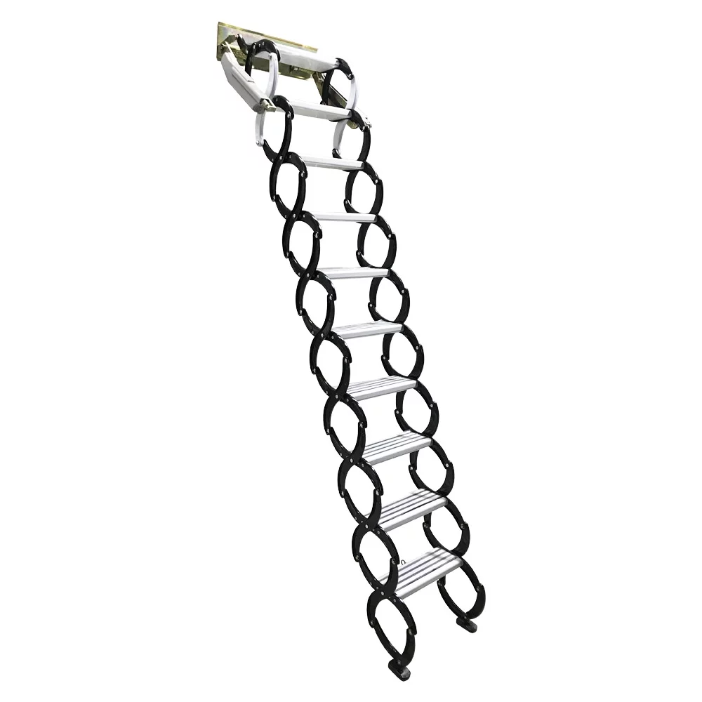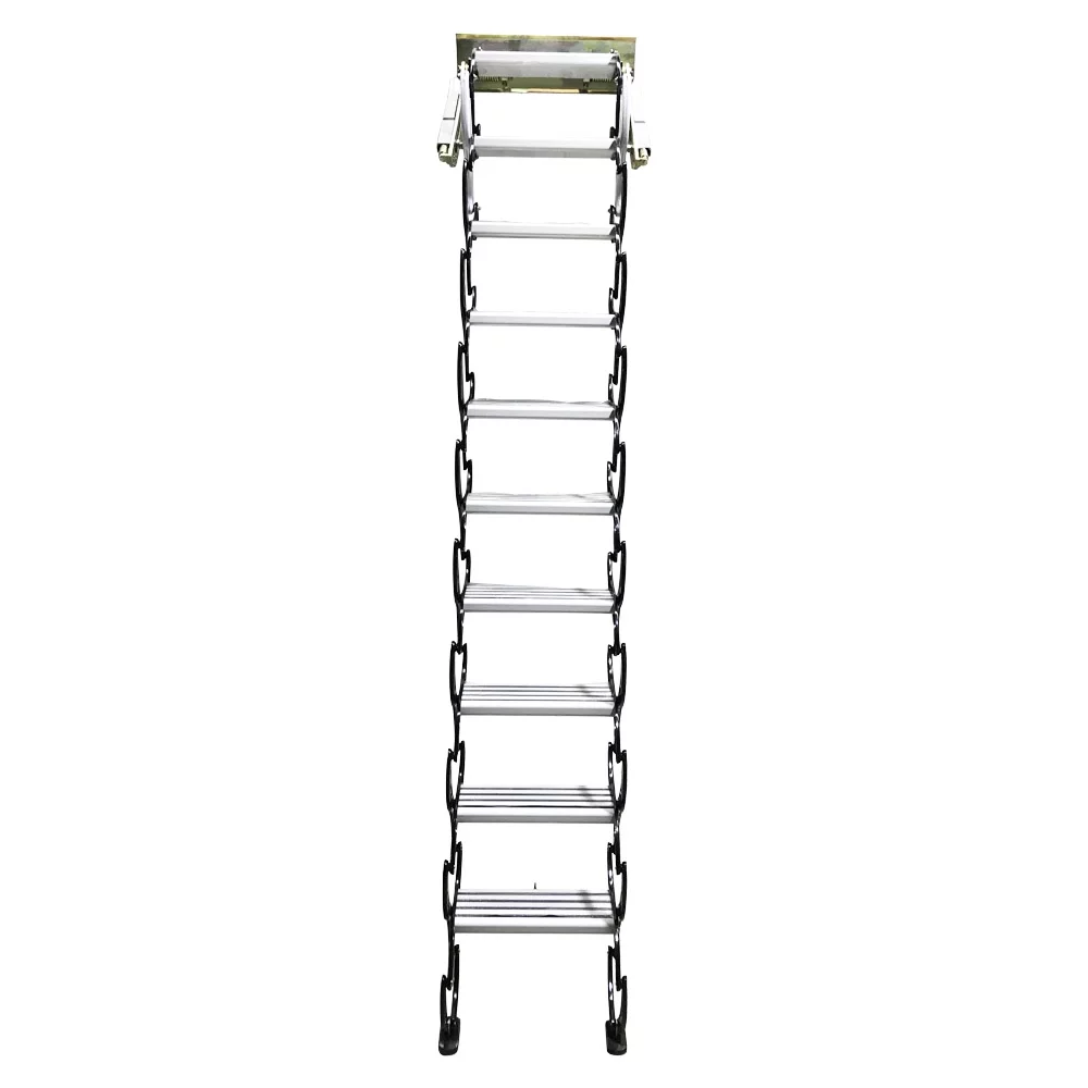 Techtongda Black and White Loft Wall Ladder Stairs Attic Ceiling Ladder Telescopic Folding Ladder 13 Steps Al-Mg Alloy