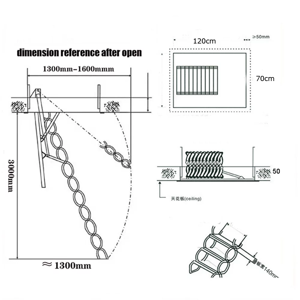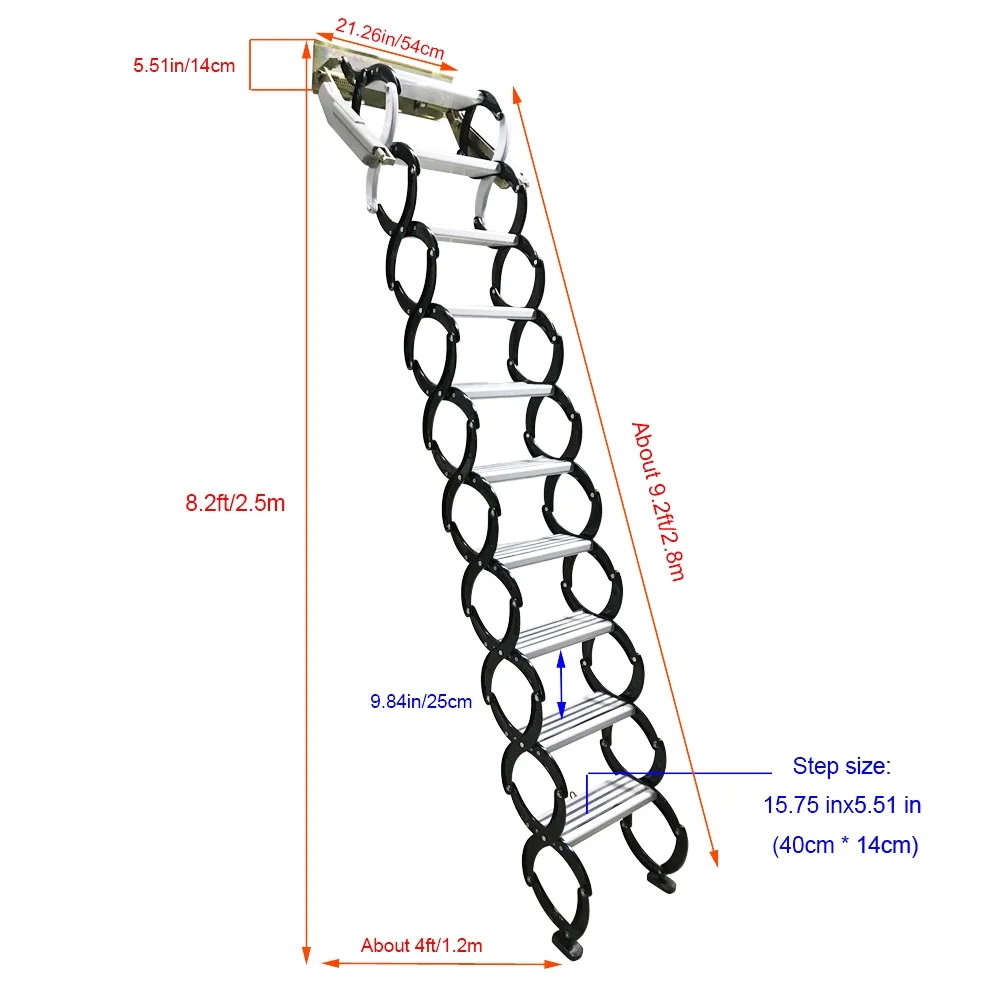 INTSUPERMAI Ceiling Pull Down Folding Loft Stairs Attic Telescoping Ladder Carbon Steel