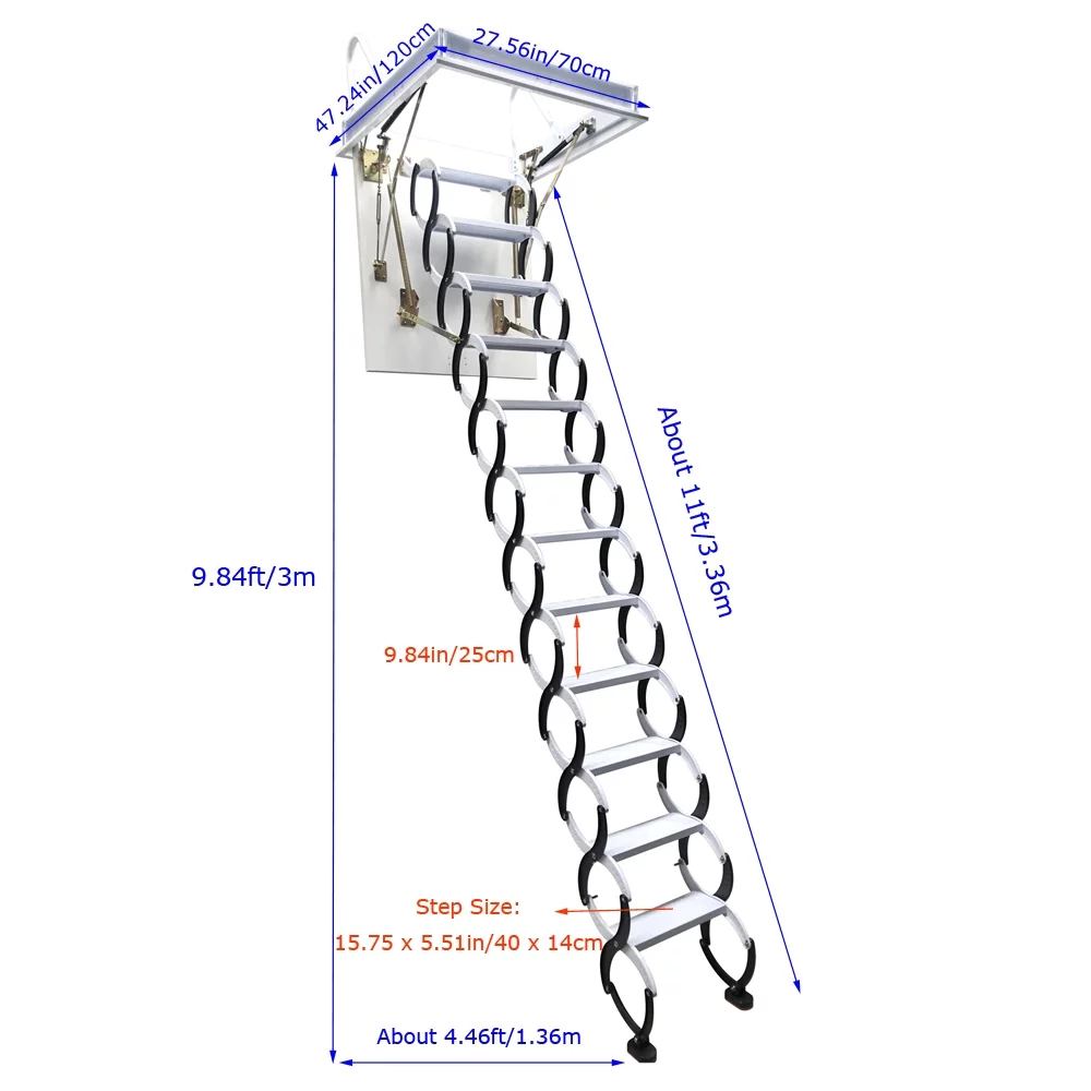 TFCFL Attic Ladder Loft Stairs Steps Ladder Folding Pull Down Stairs Height 12.5 ft