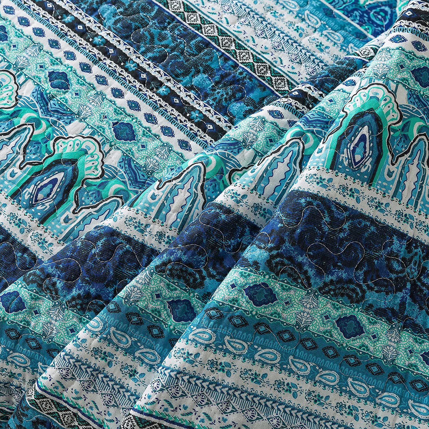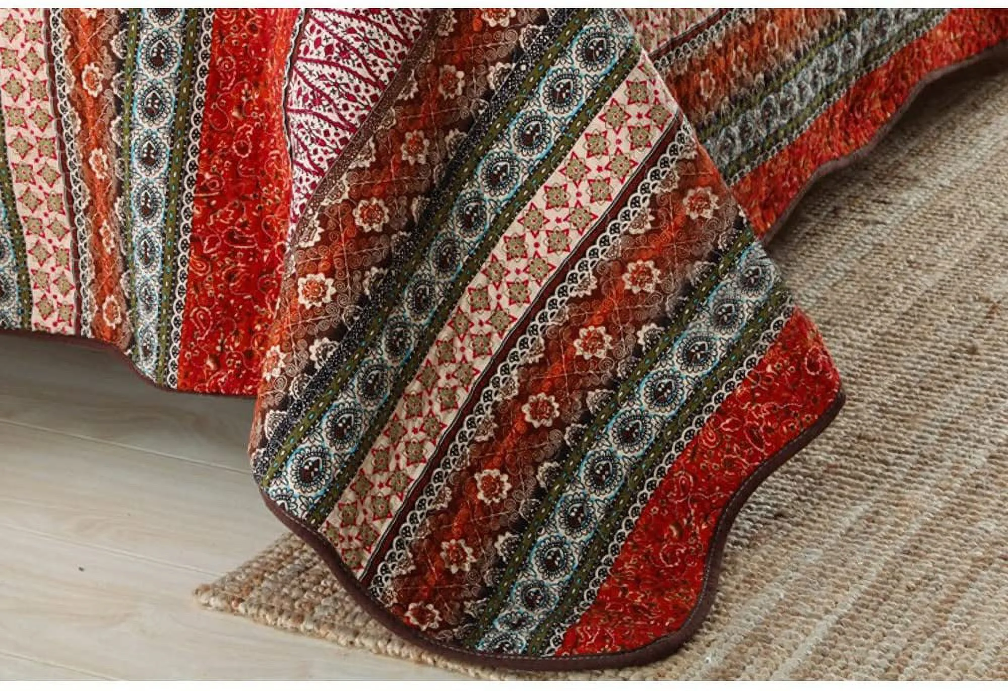NEWLAKE Striped Jacquard Style Cotton 3-Piece Patchwork Bedspread Quilt Sets King Size