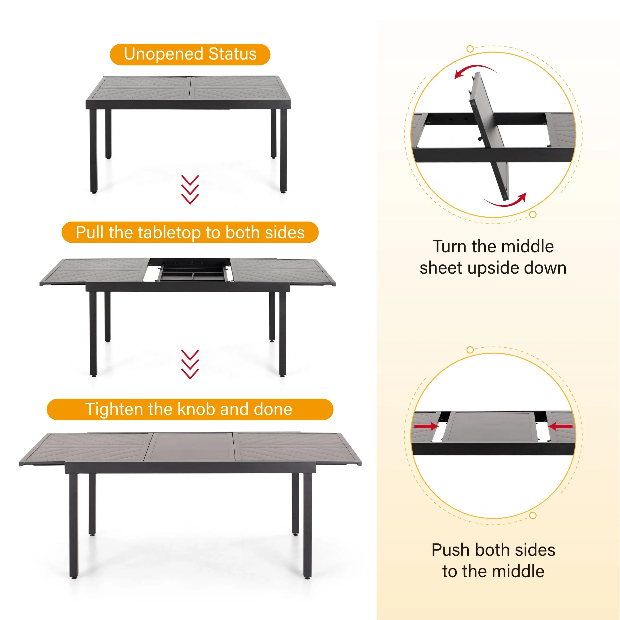 Sophia & William 9 Pieces Metal Outdoor Patio Dining Set with Extendable Table - Black